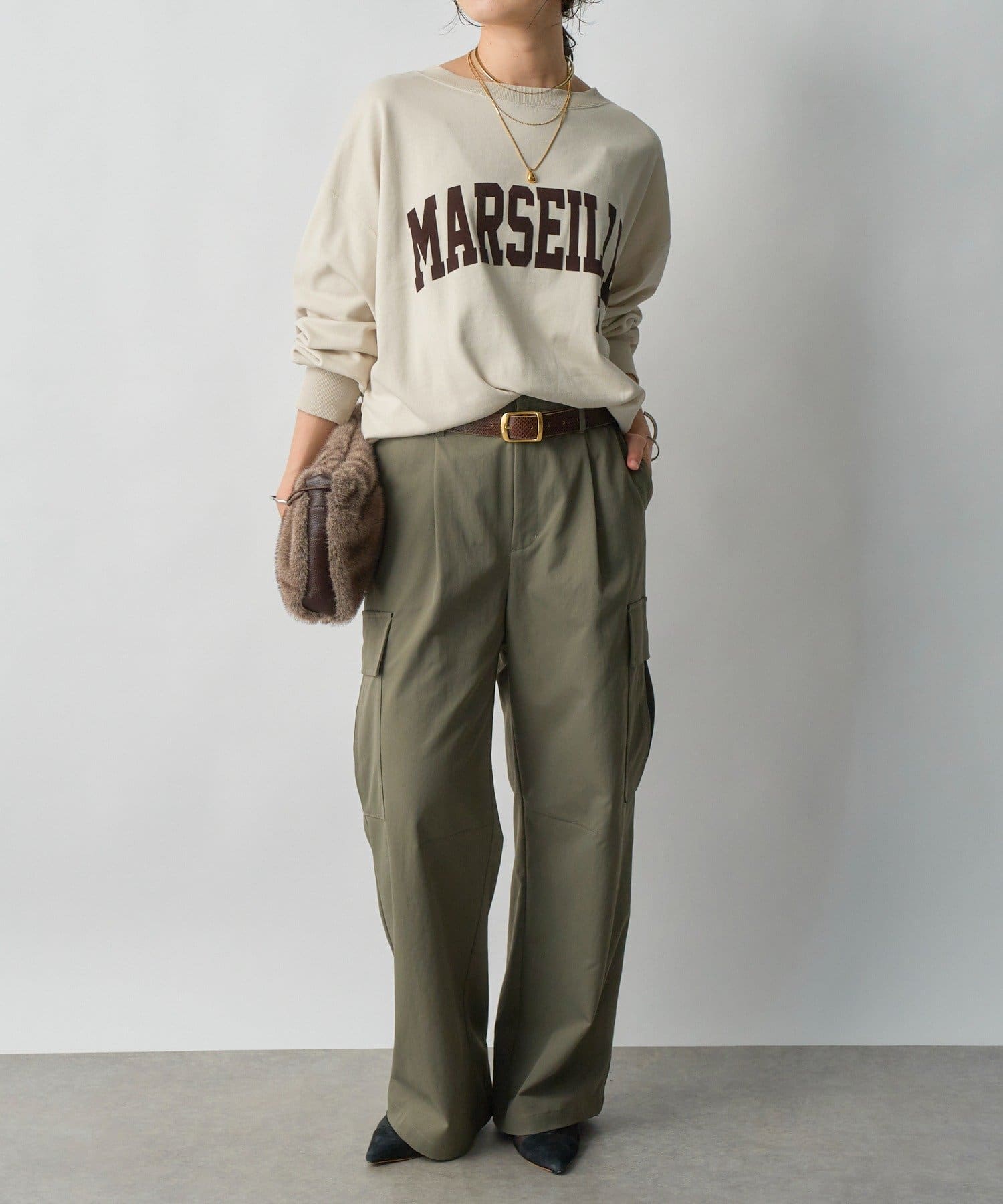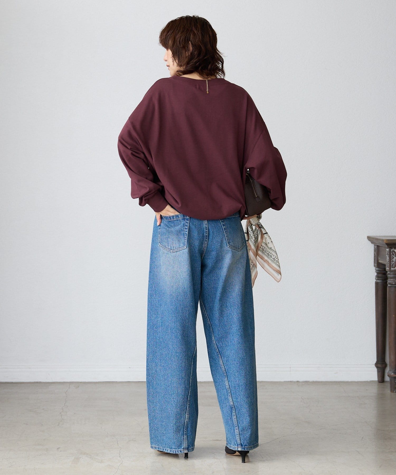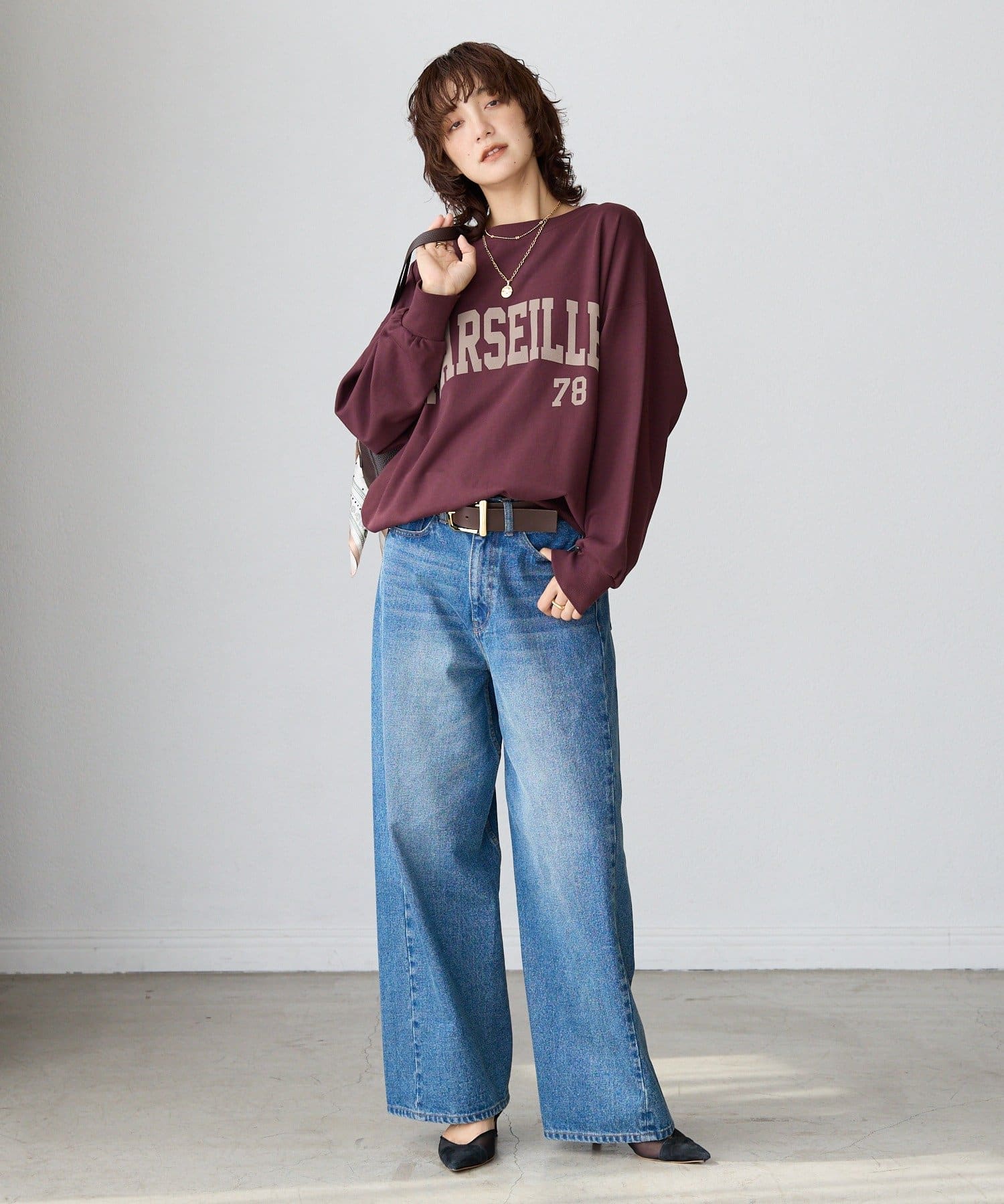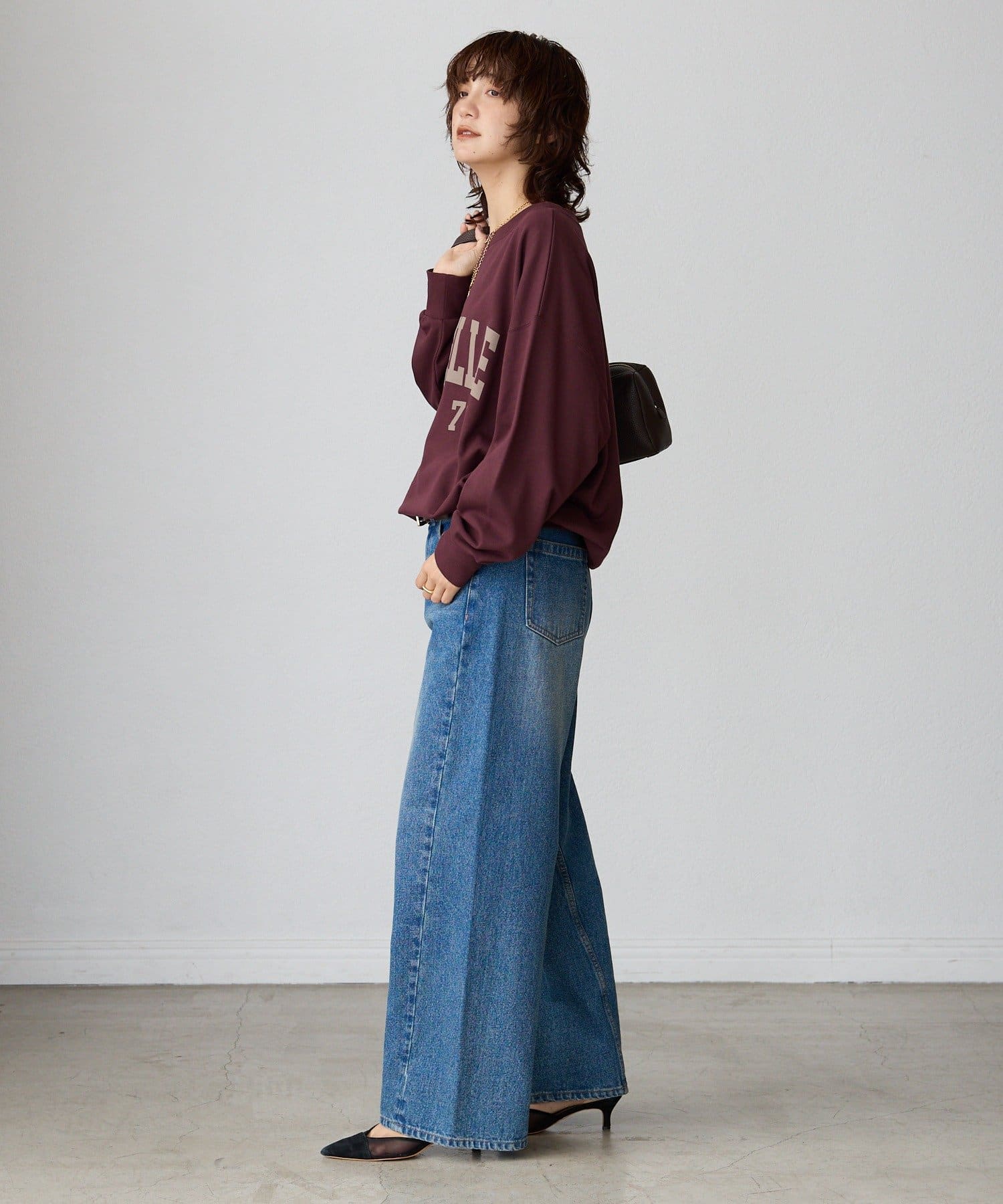 ・フロッキープリントの風合いが装いに秋らしさをプラスしてくれるワイドスエット。
