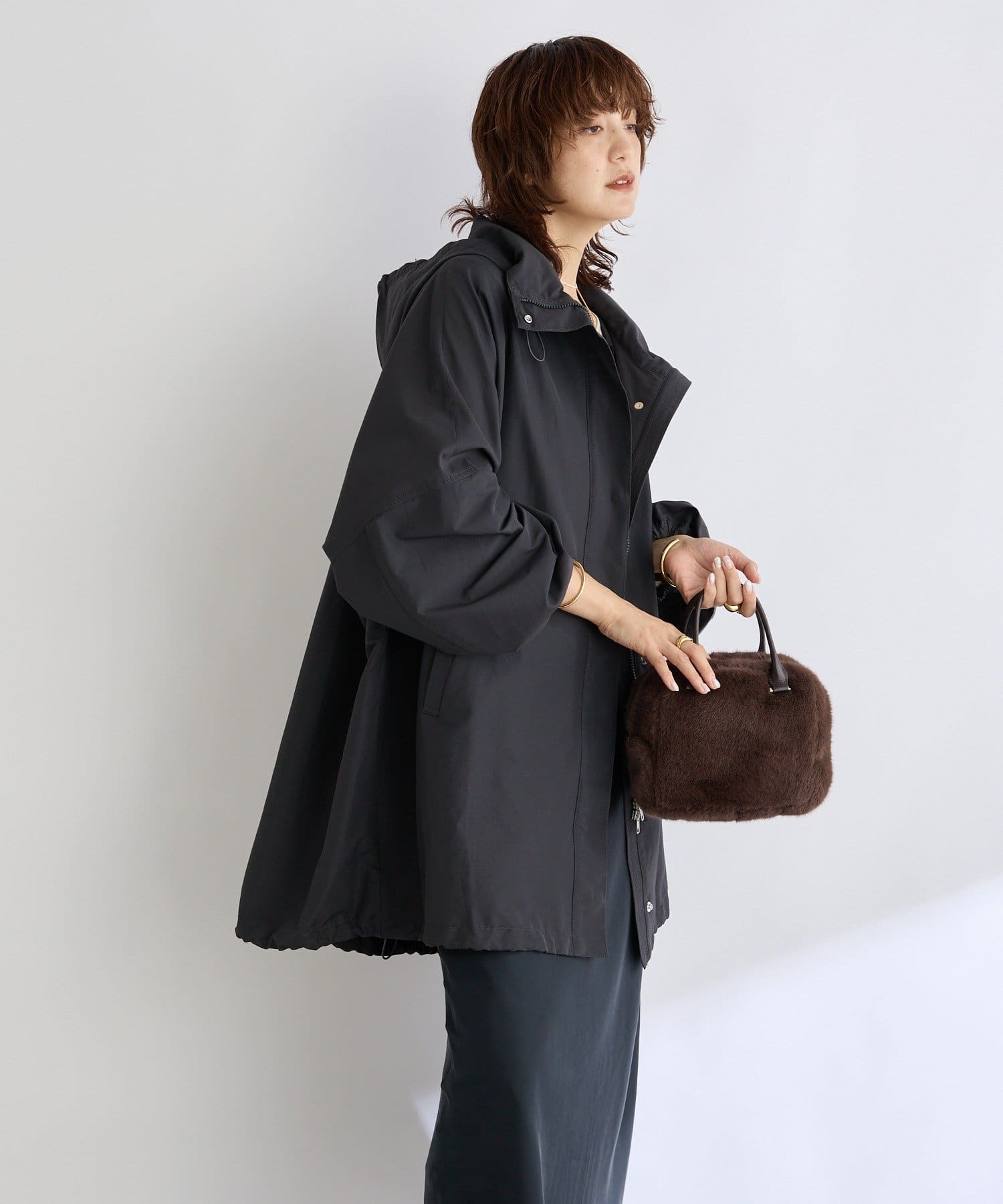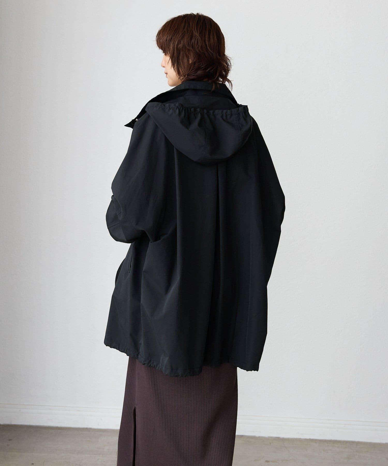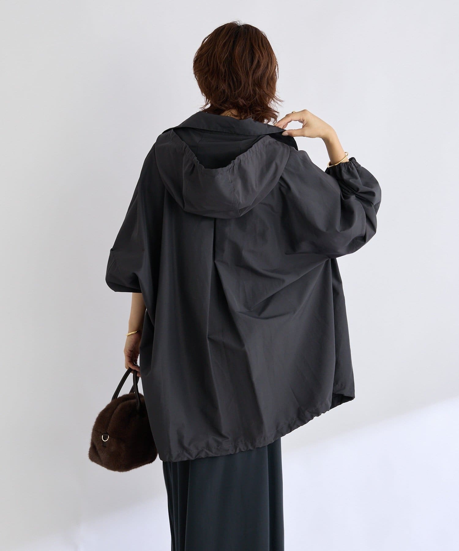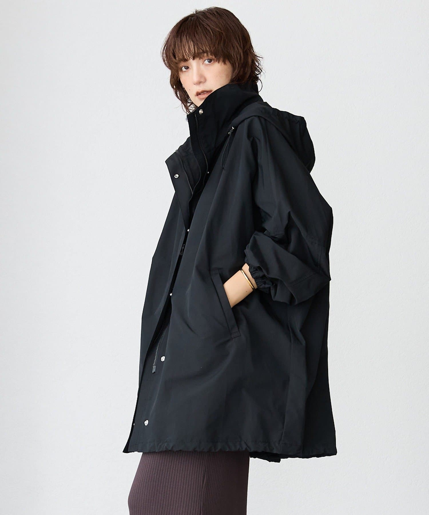 抜け感あるドルマンシルエットが女性らしく羽織れる撥水アウター