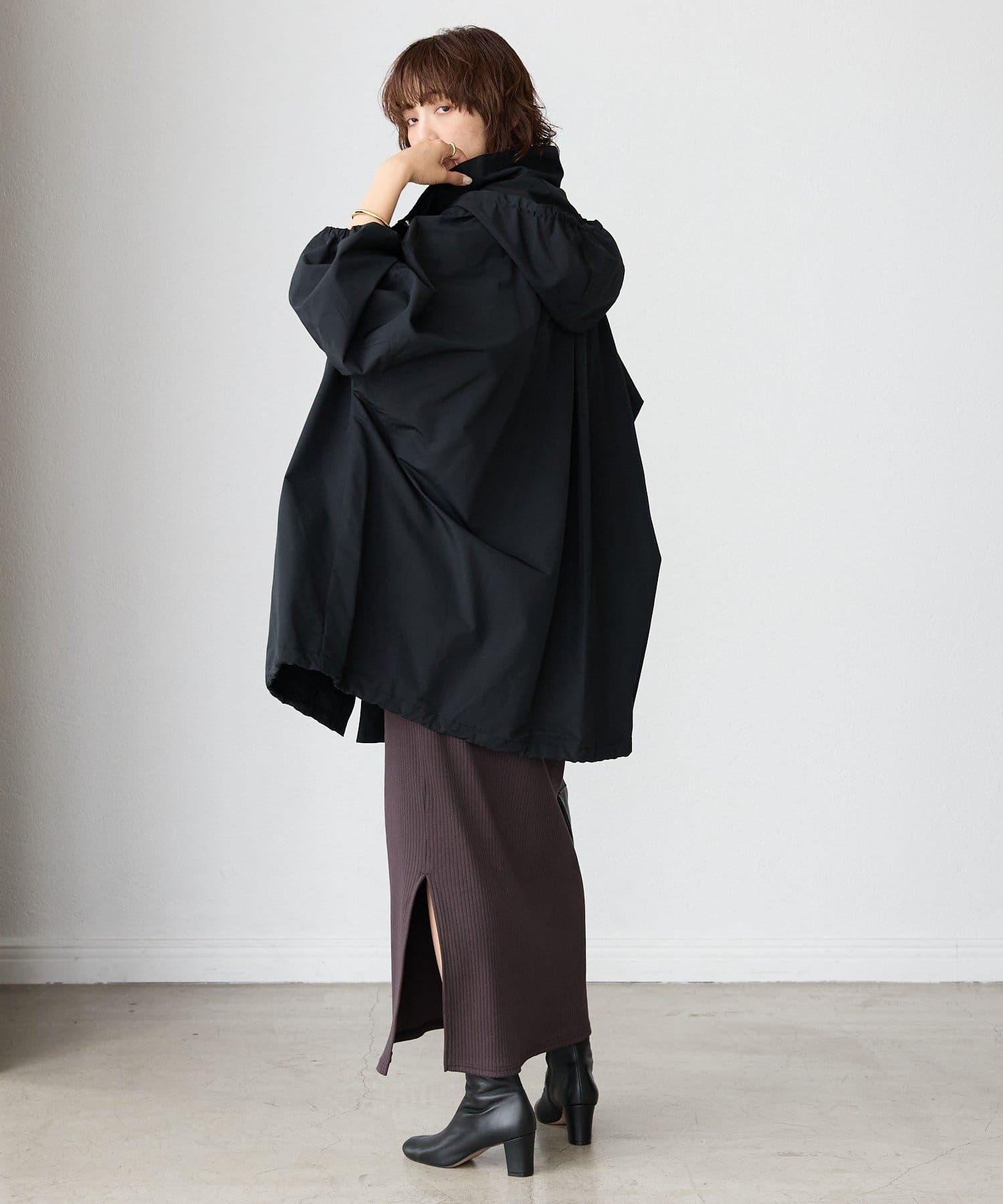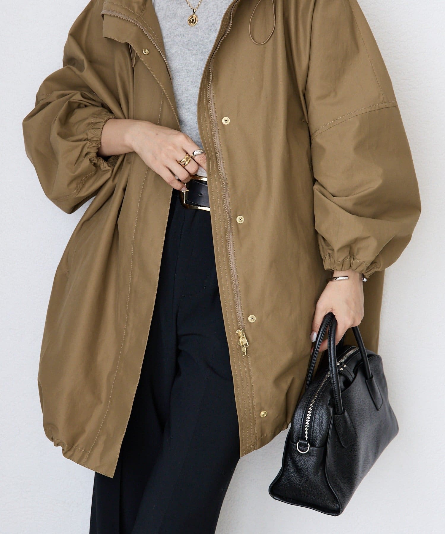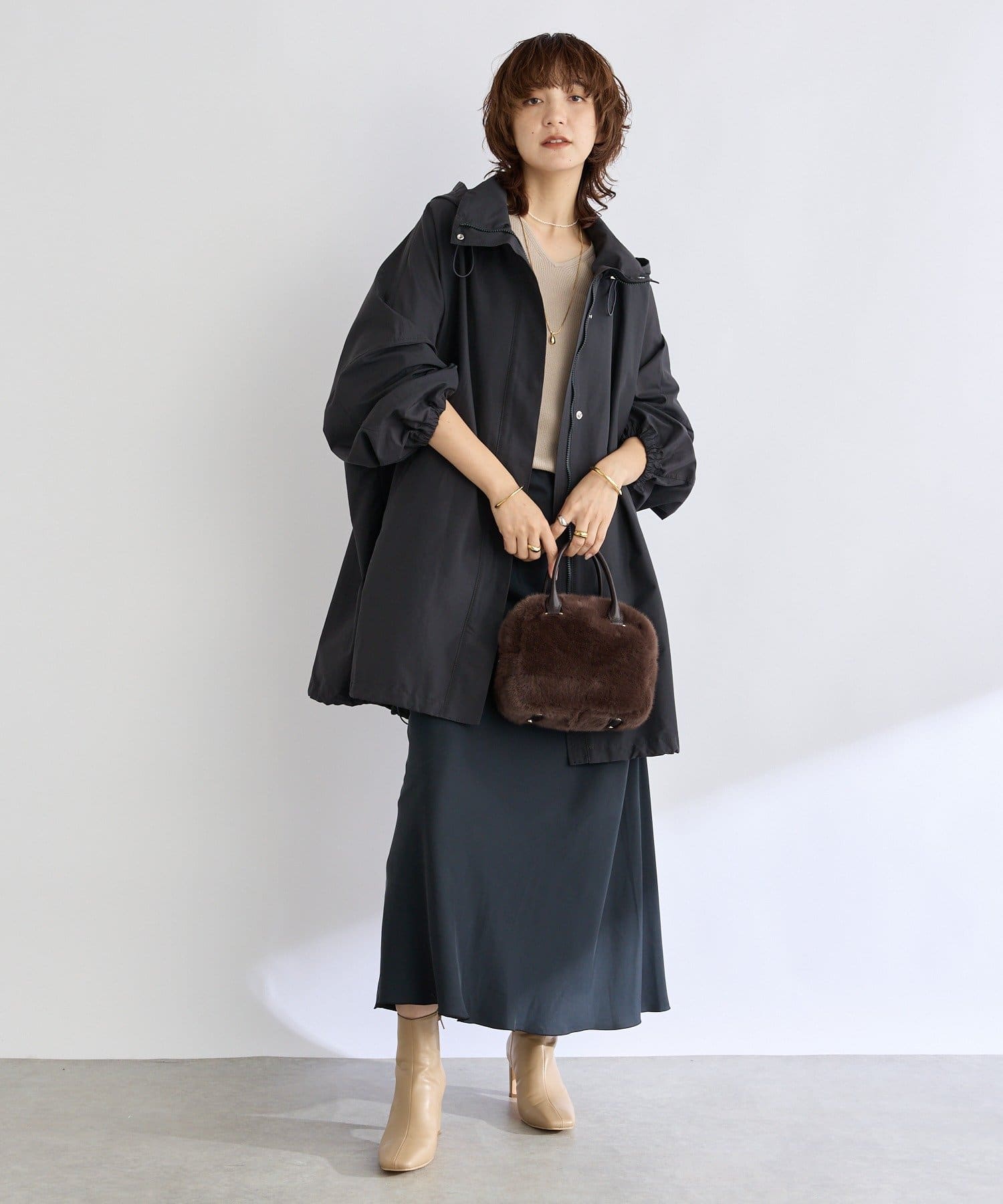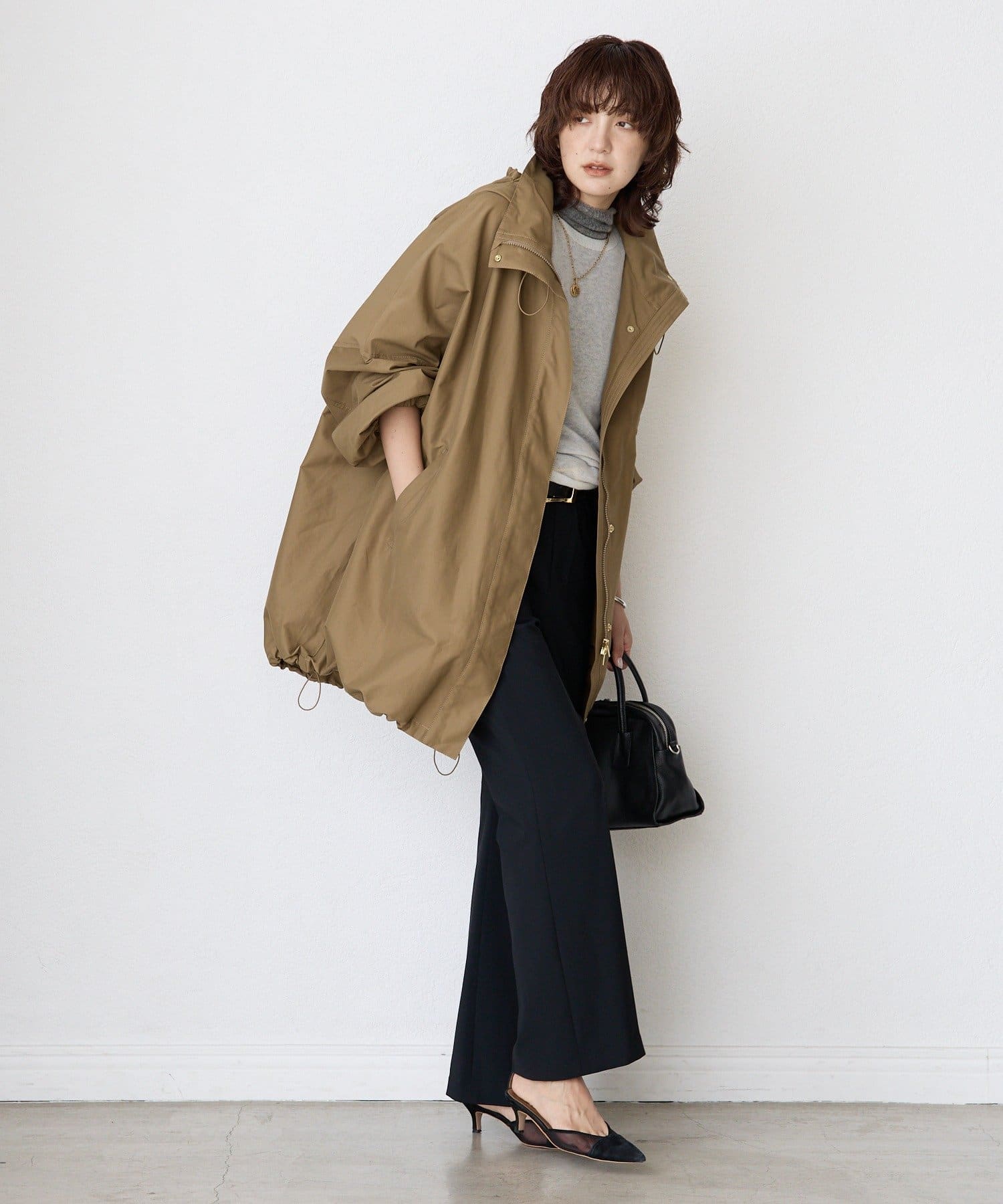 抜け感あるドルマンシルエットが女性らしく羽織れる撥水アウター