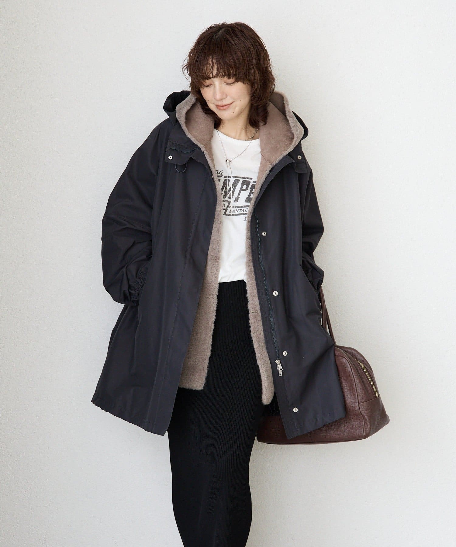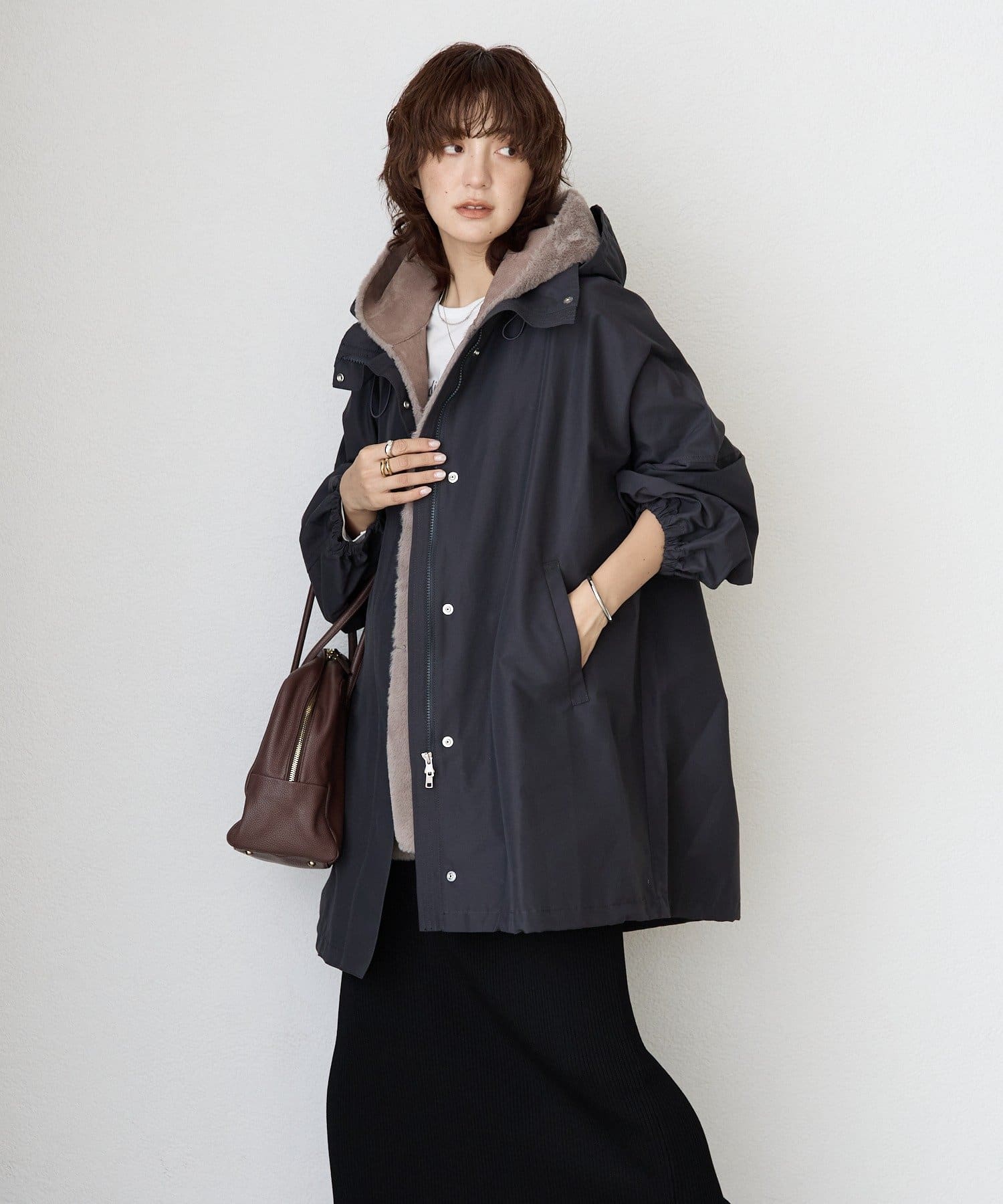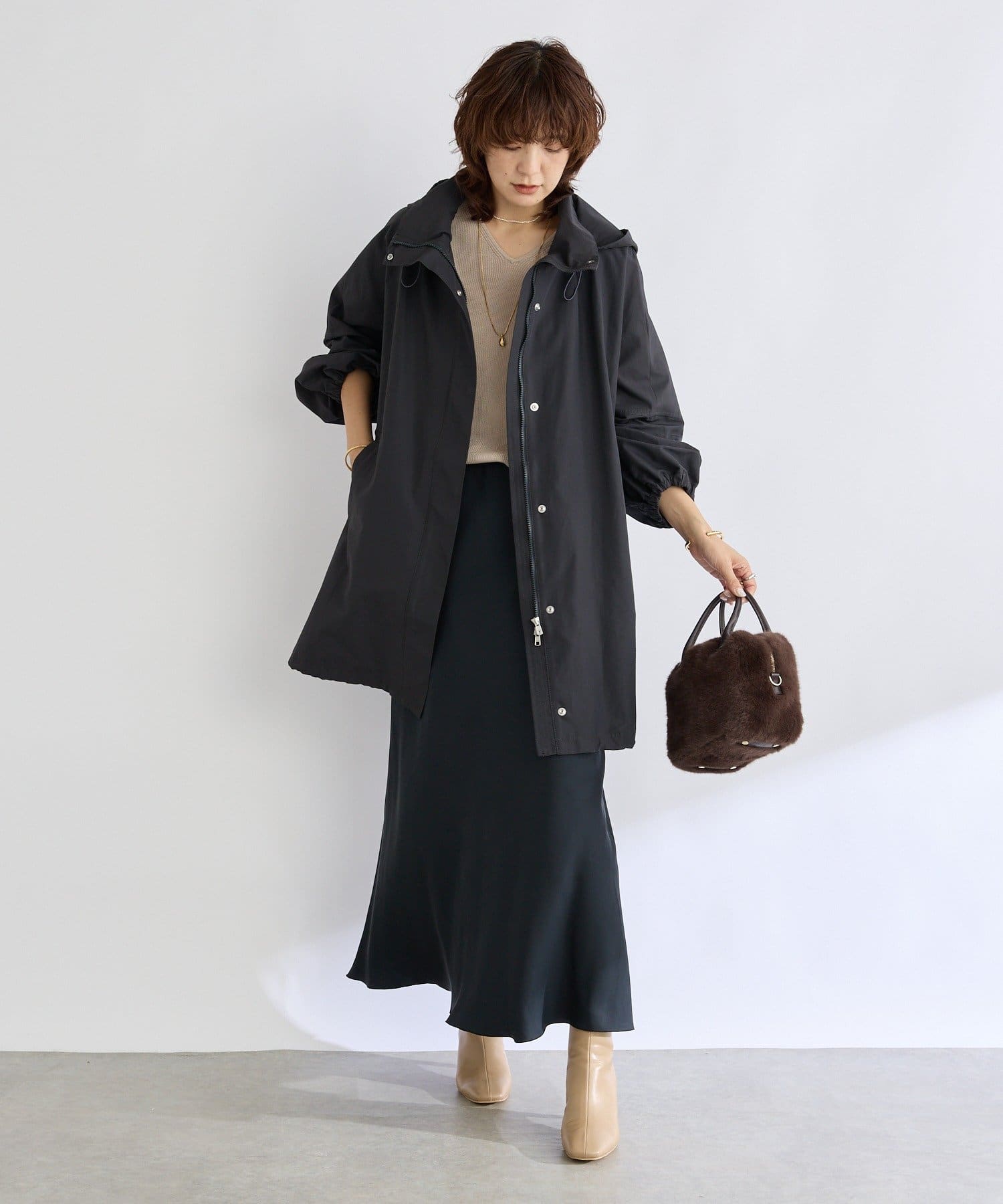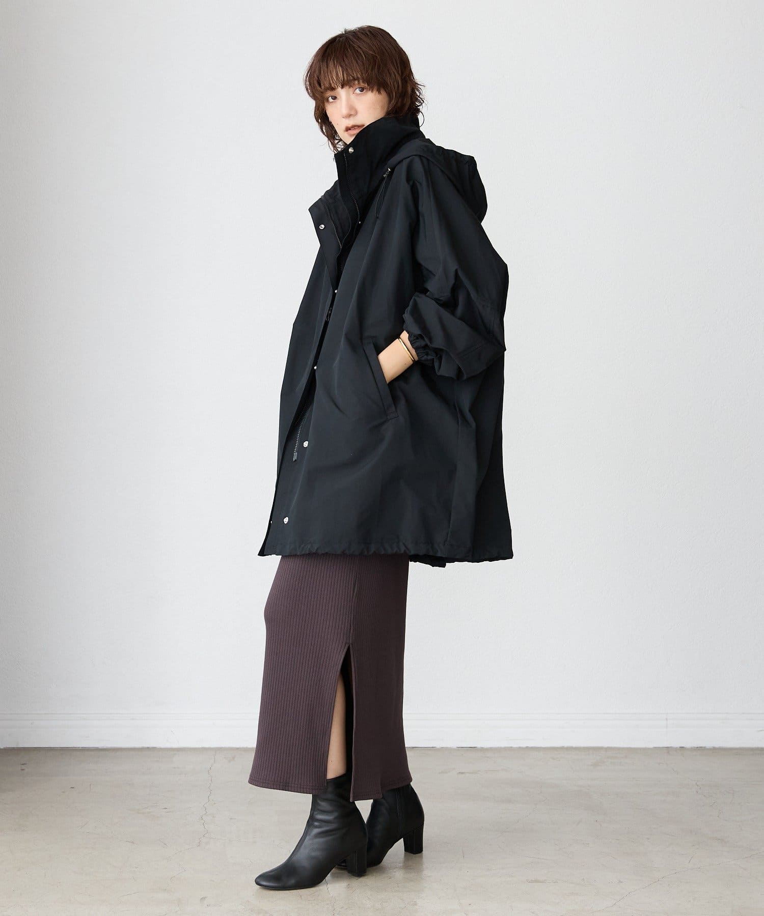 抜け感あるドルマンシルエットが女性らしく羽織れる撥水アウター