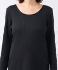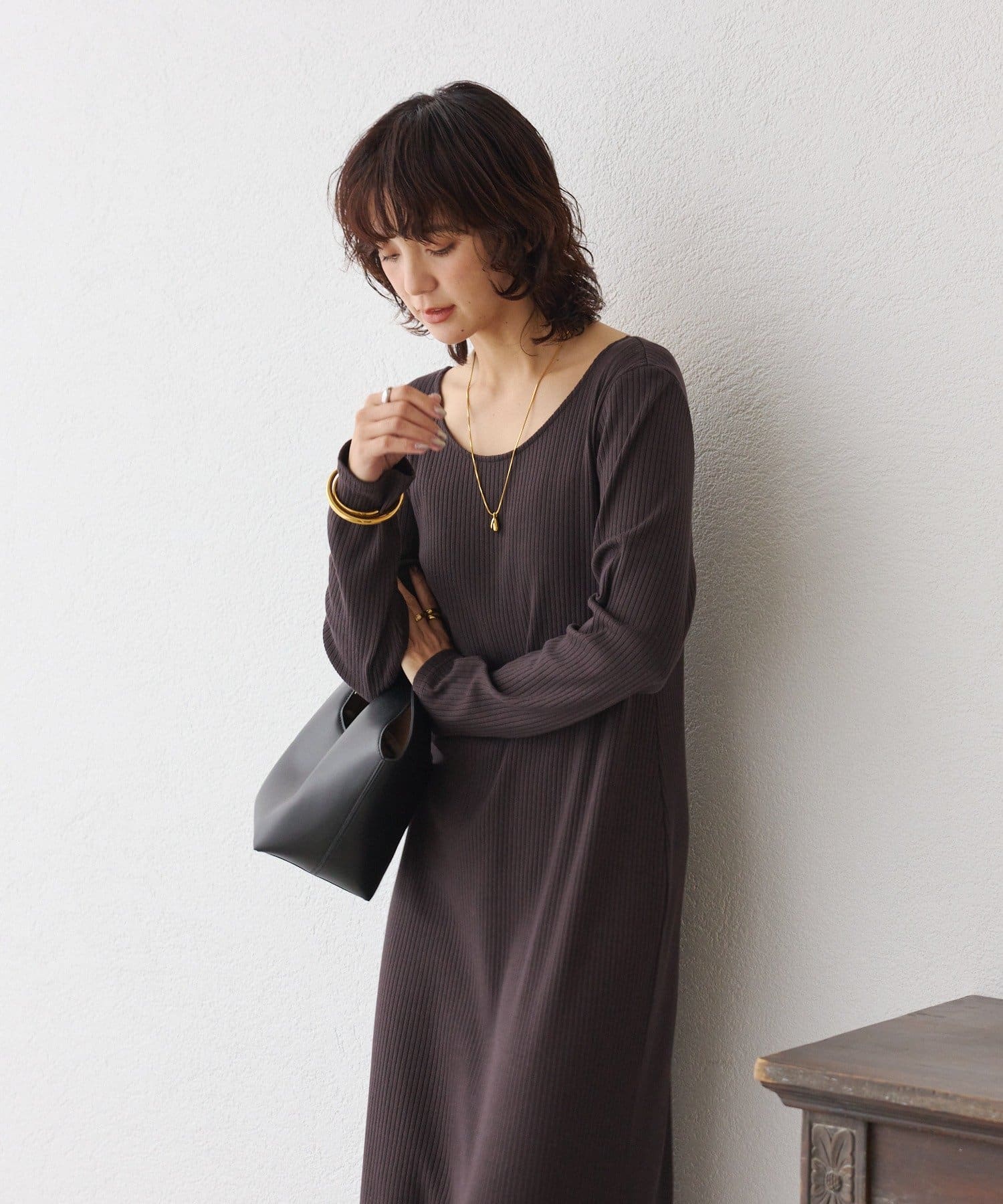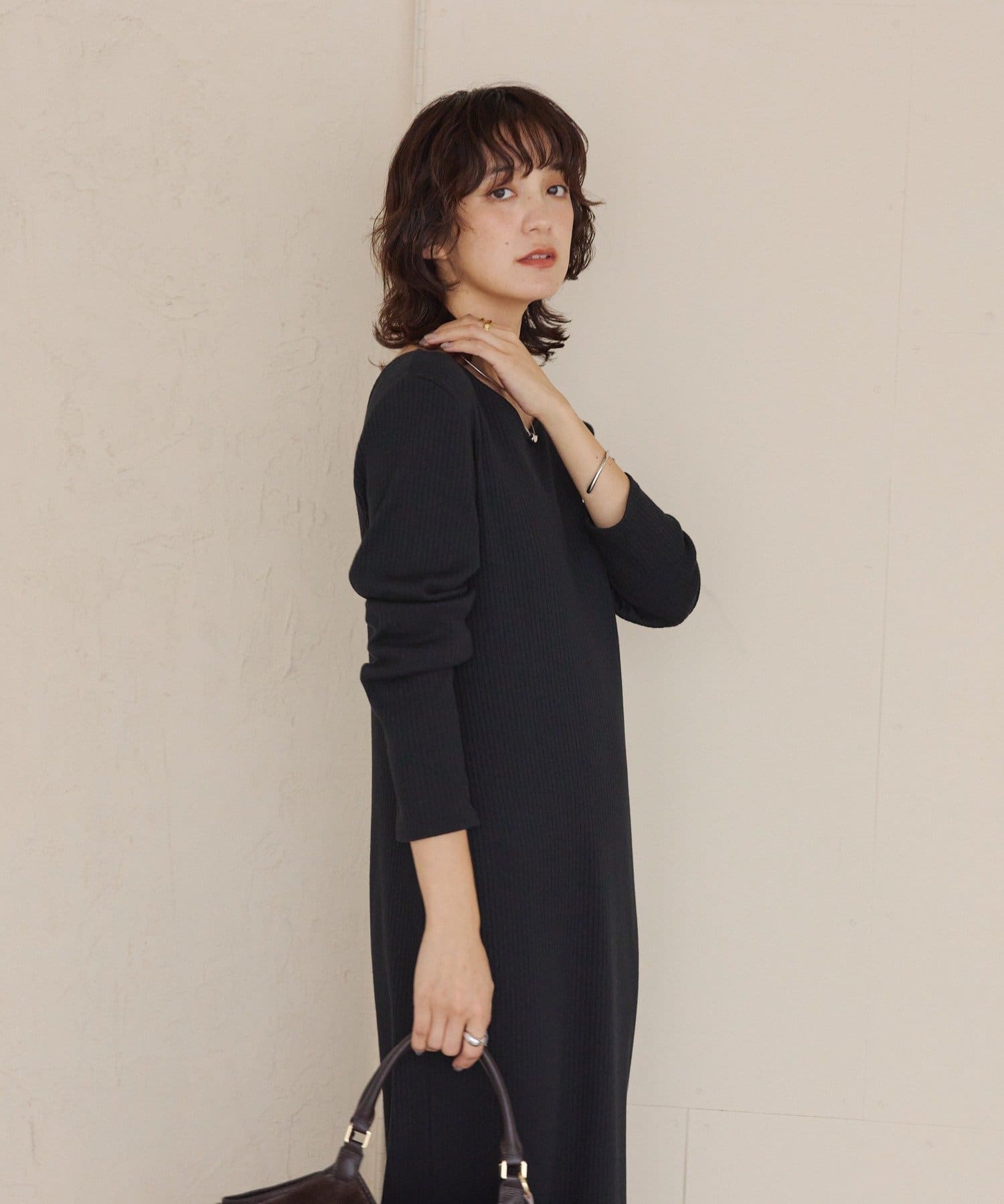 ※2WAYロングリブワンピースよりも横に抜け感のあるラウンドネックになっています。