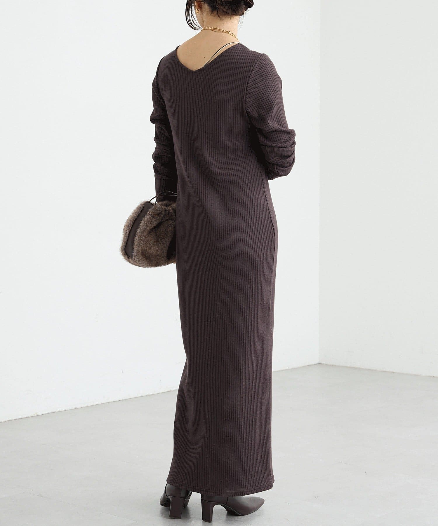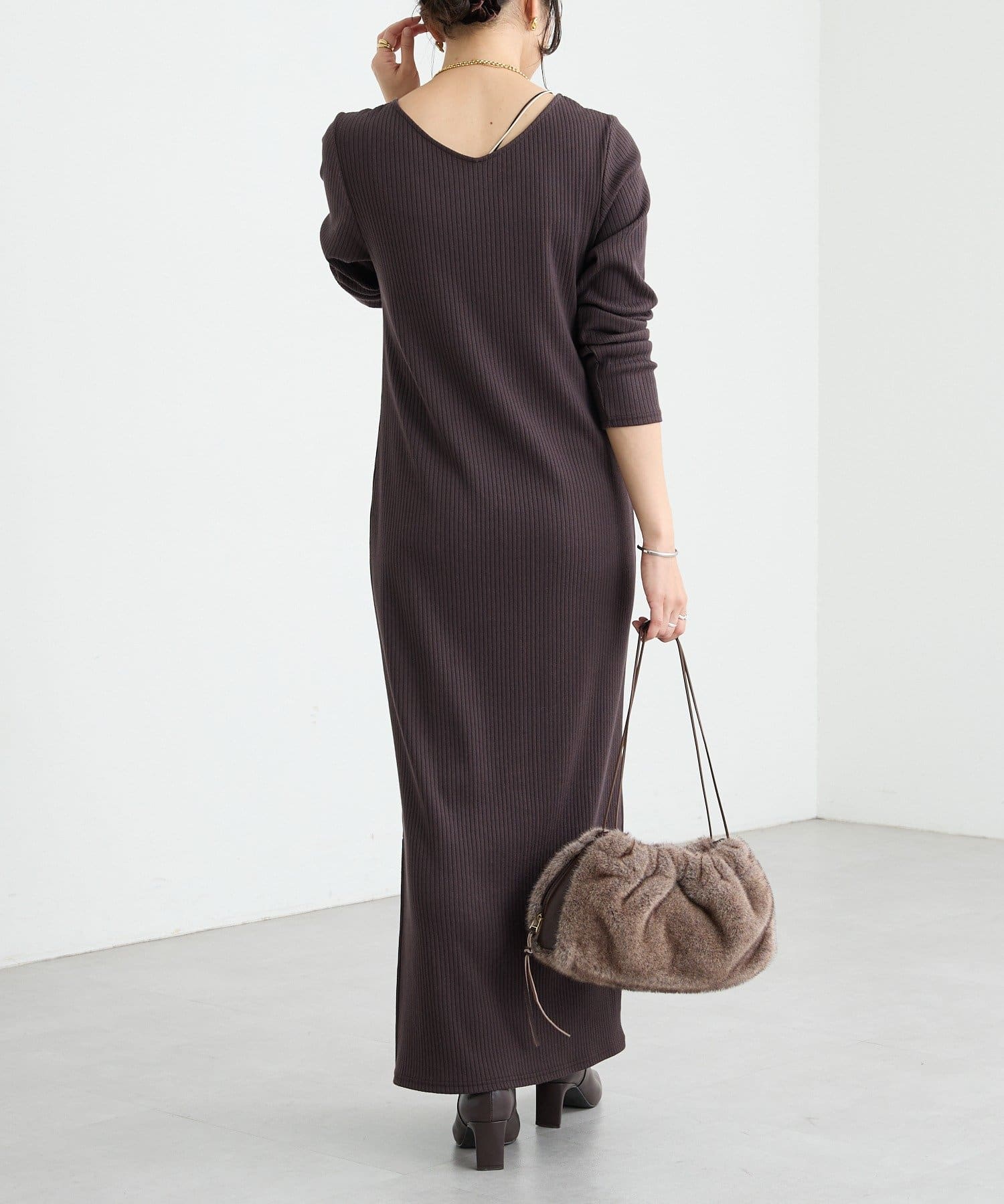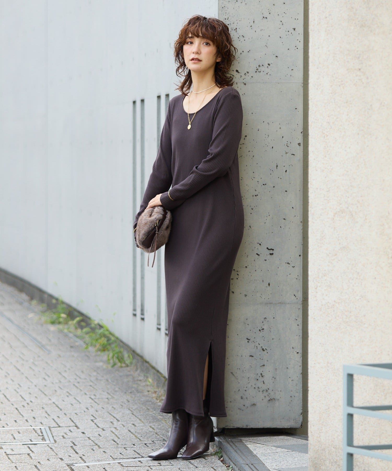 予約【新色追加】【全骨格細見え】NEW2WAYロングリブワンピース