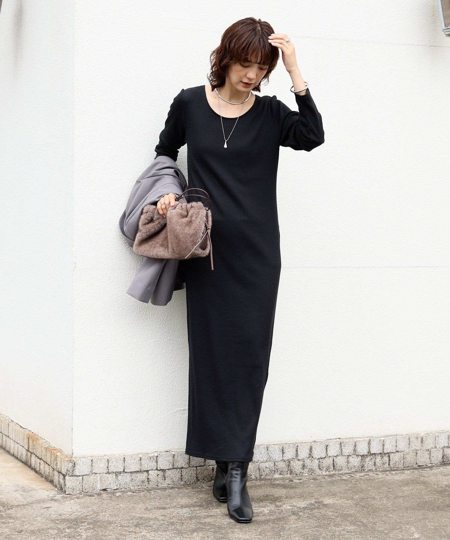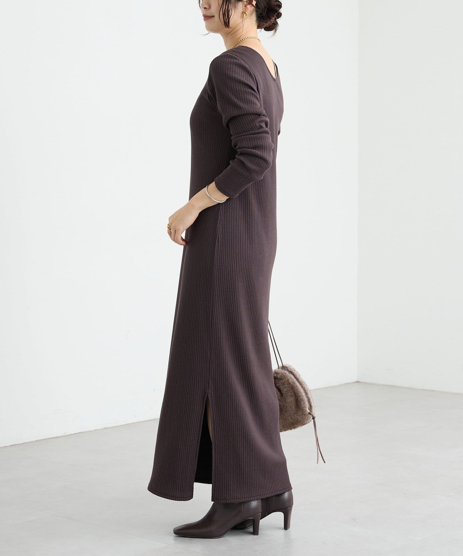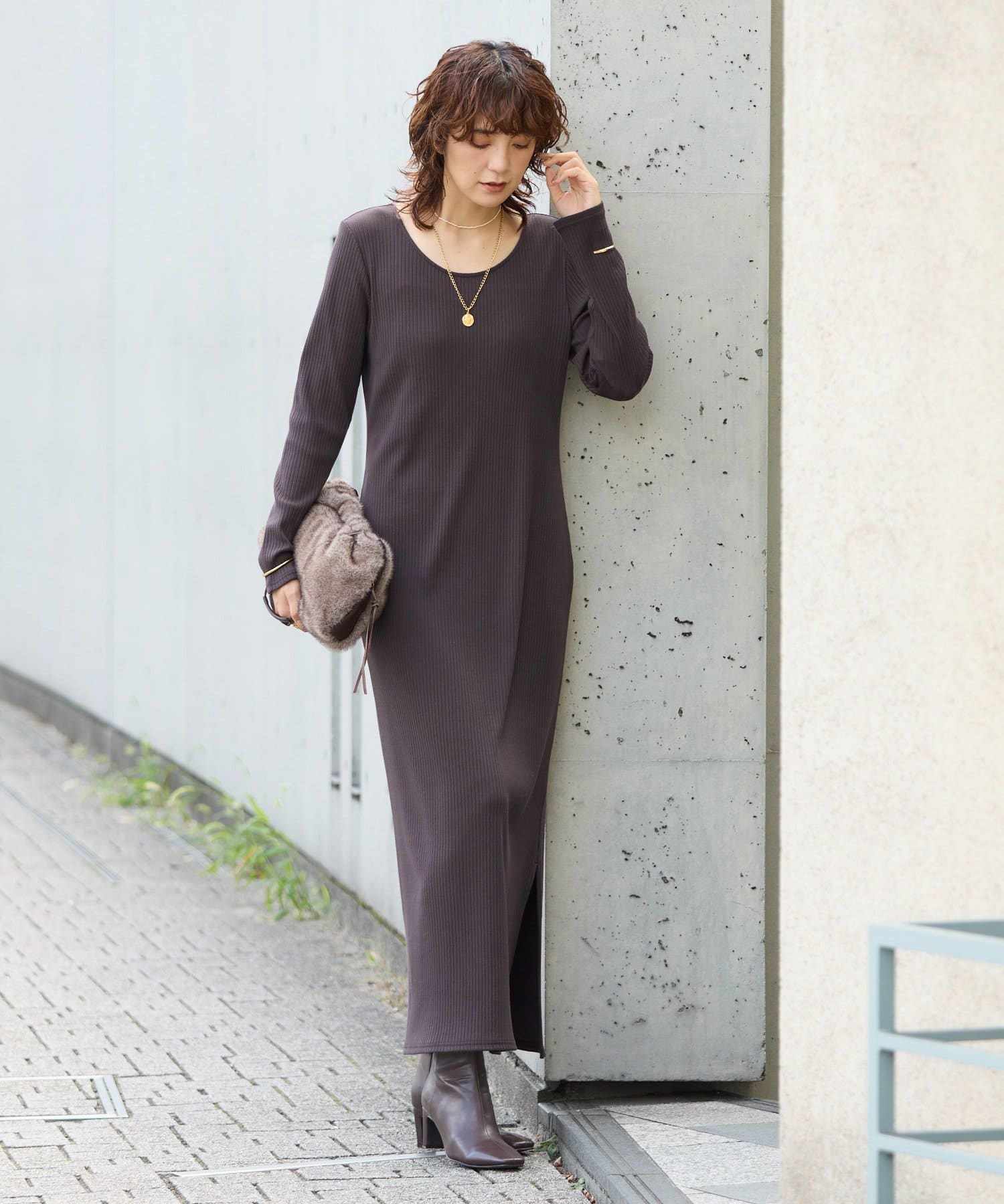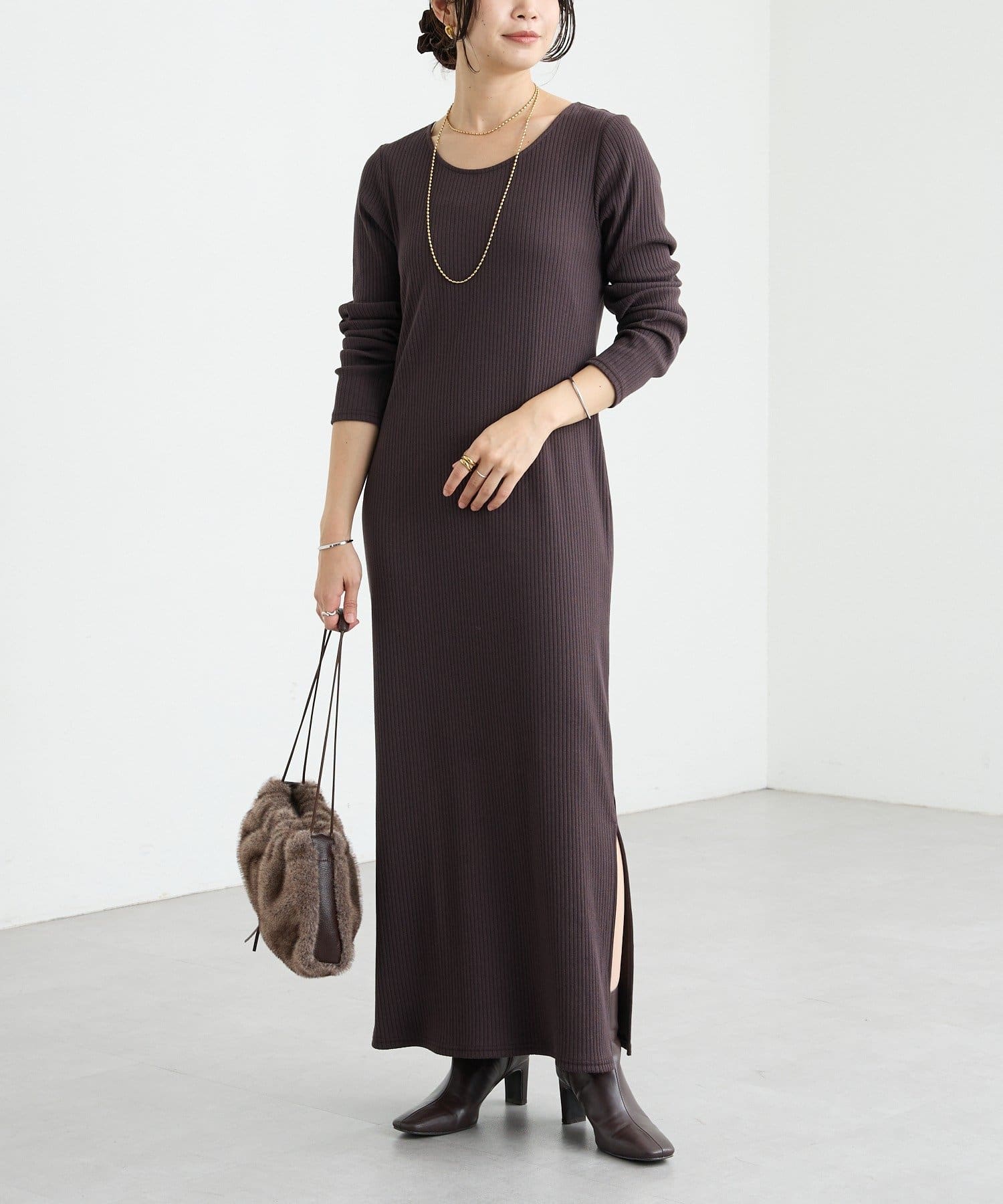 予約【新色追加】【全骨格細見え】NEW2WAYロングリブワンピース