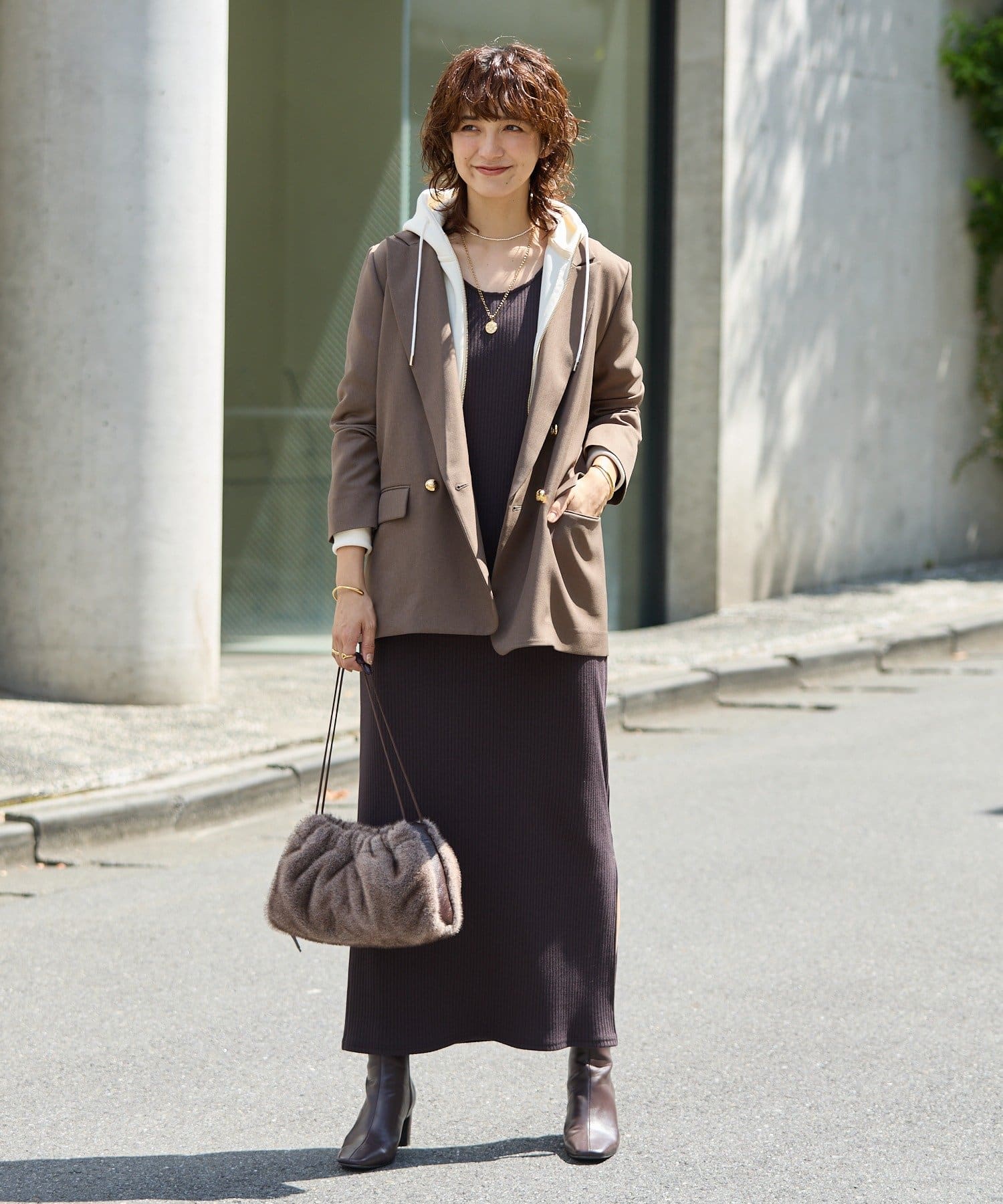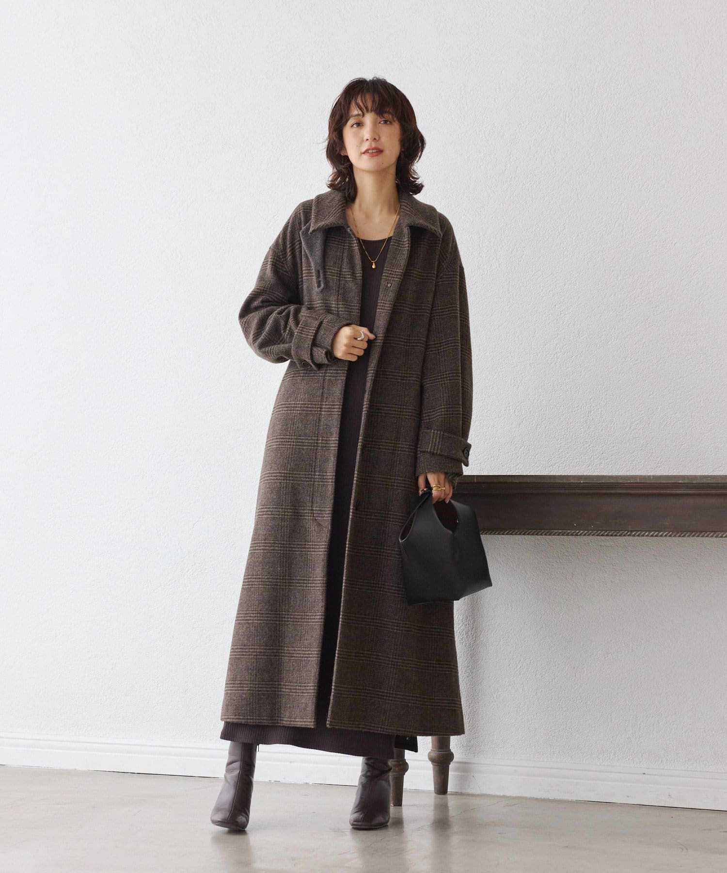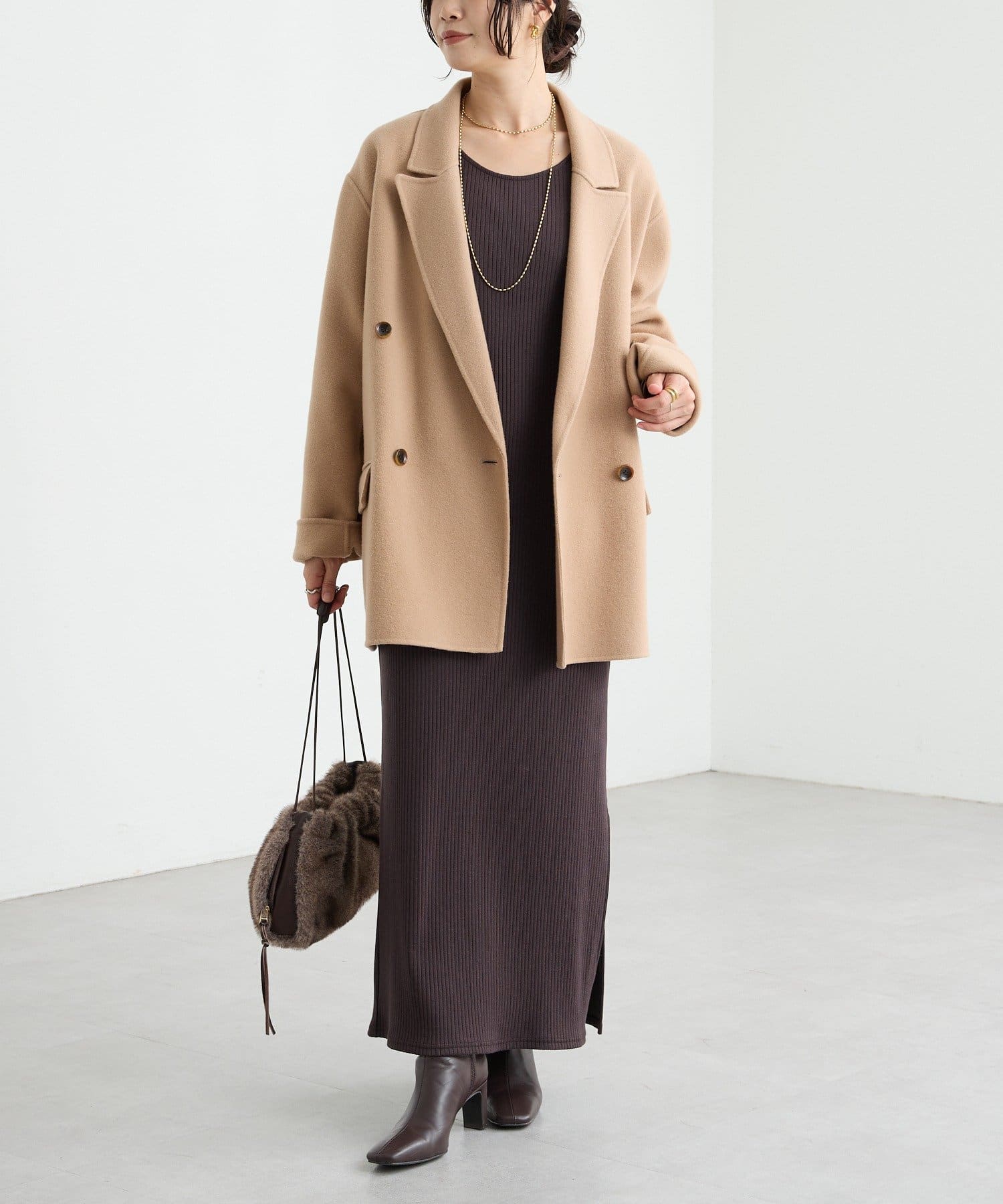 ・余計なディティールを削ぎ落とし、すっきりとしたIラインシルエットにすることで、一枚ではもちろん、重ね着もしやすい一着。