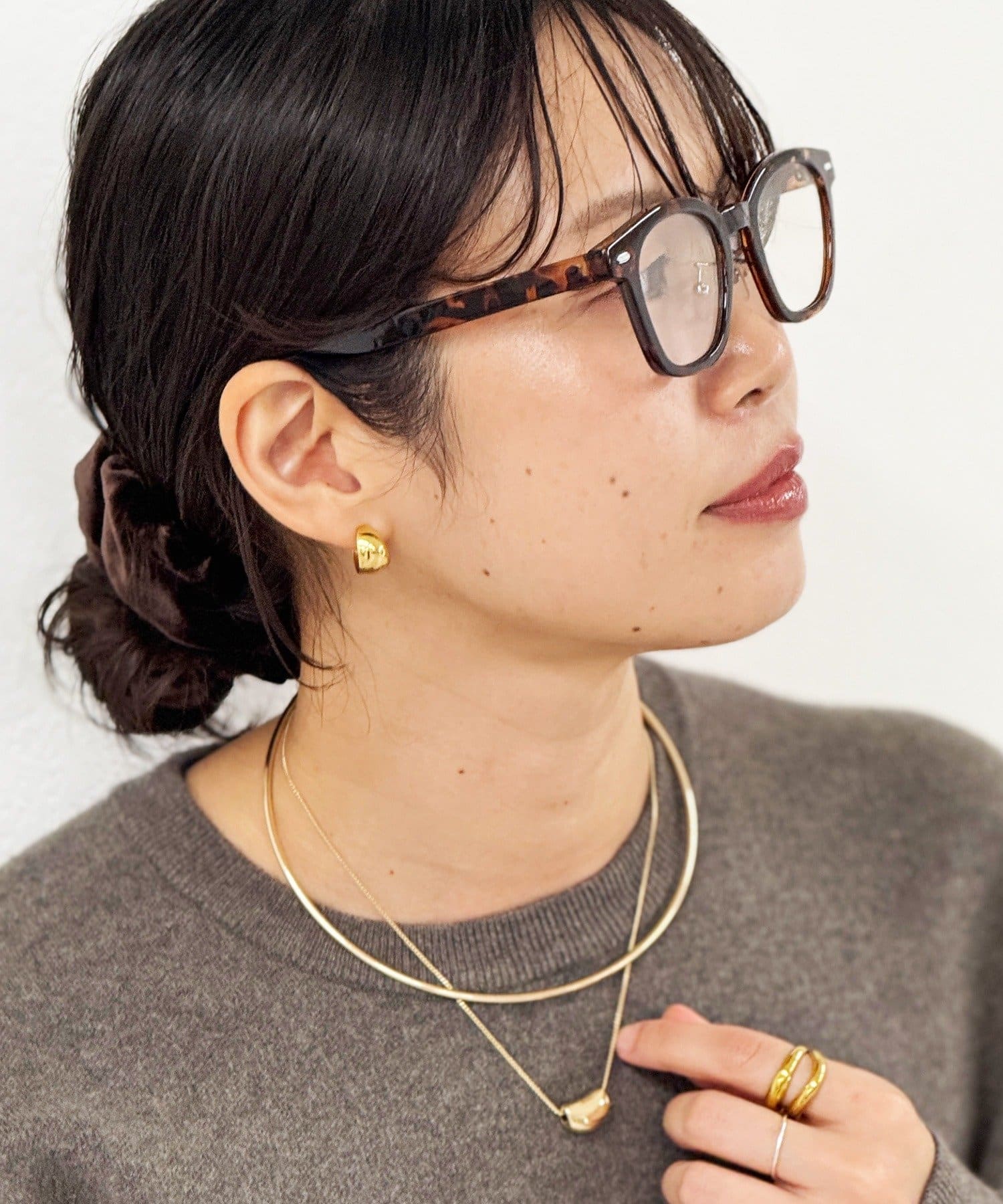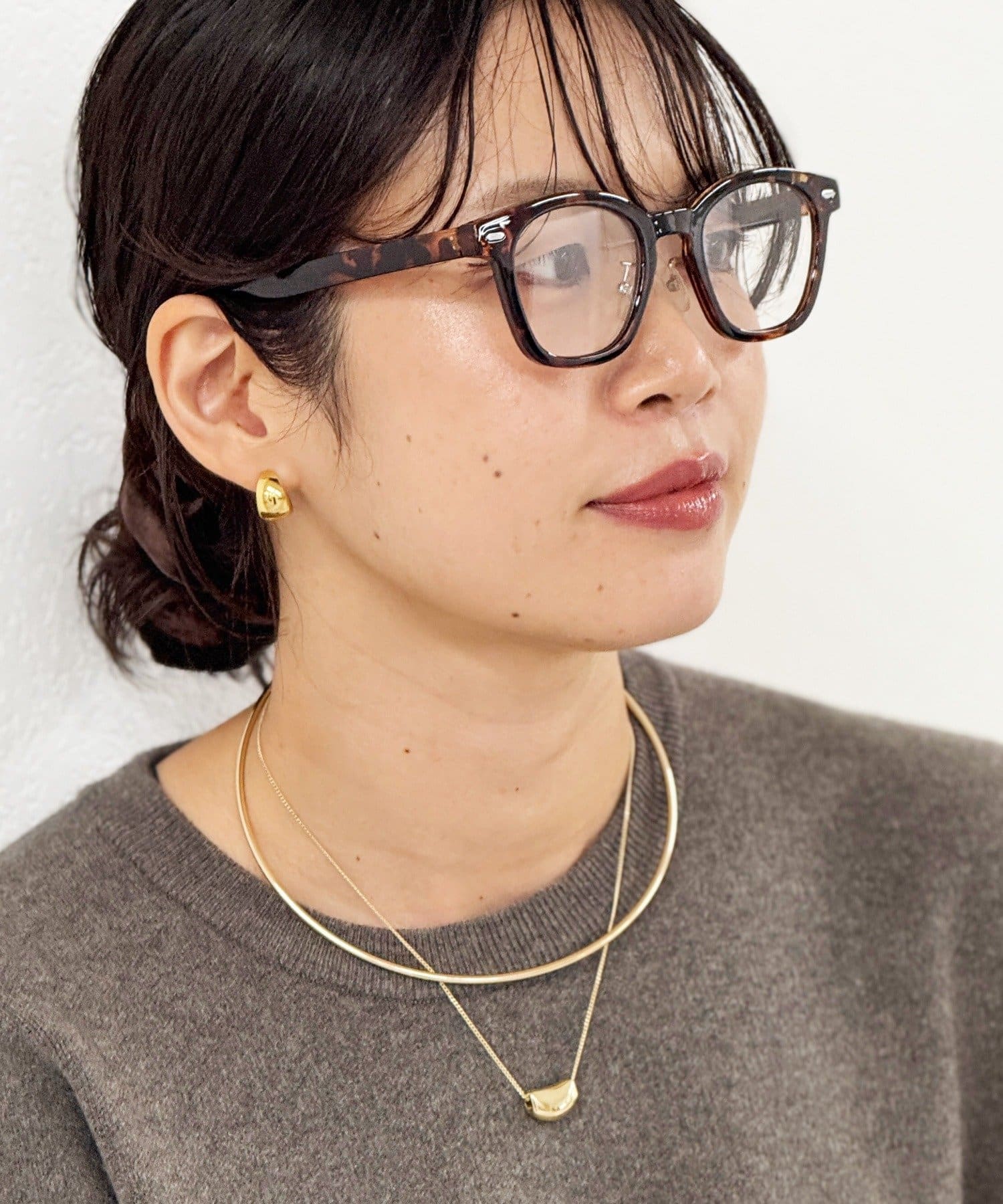 ニュアンスのある模様のブラウンフレームがアクセントに