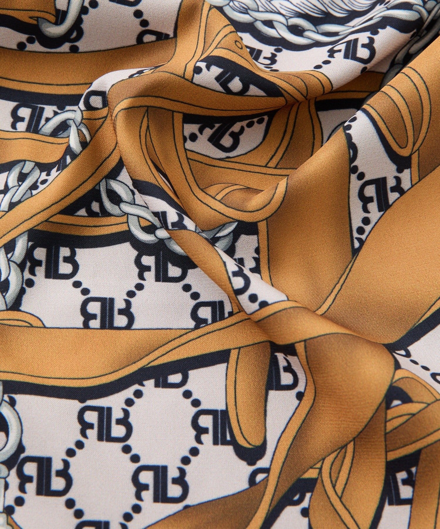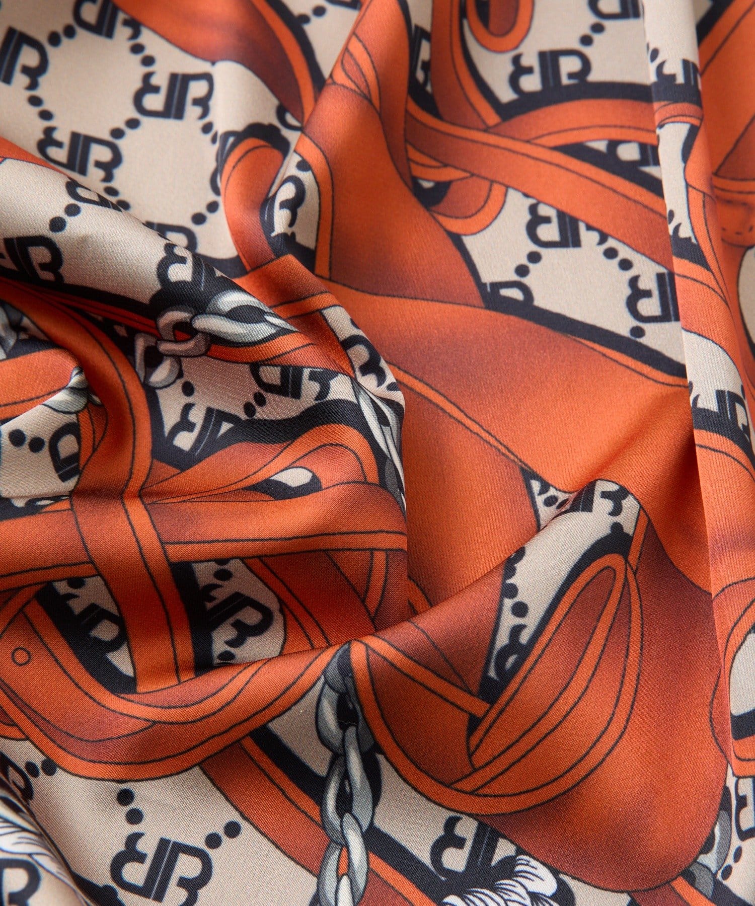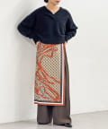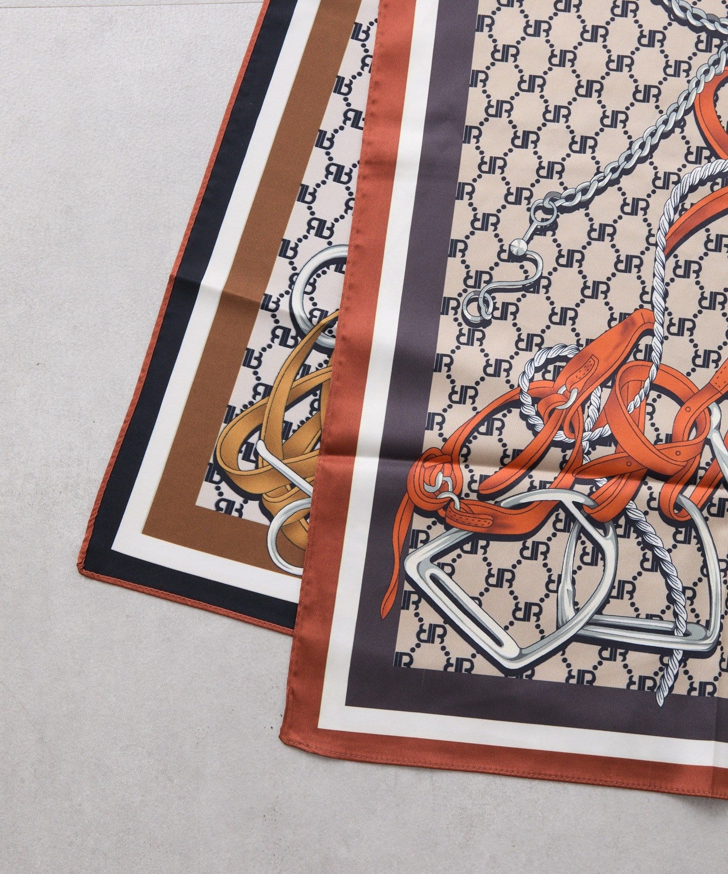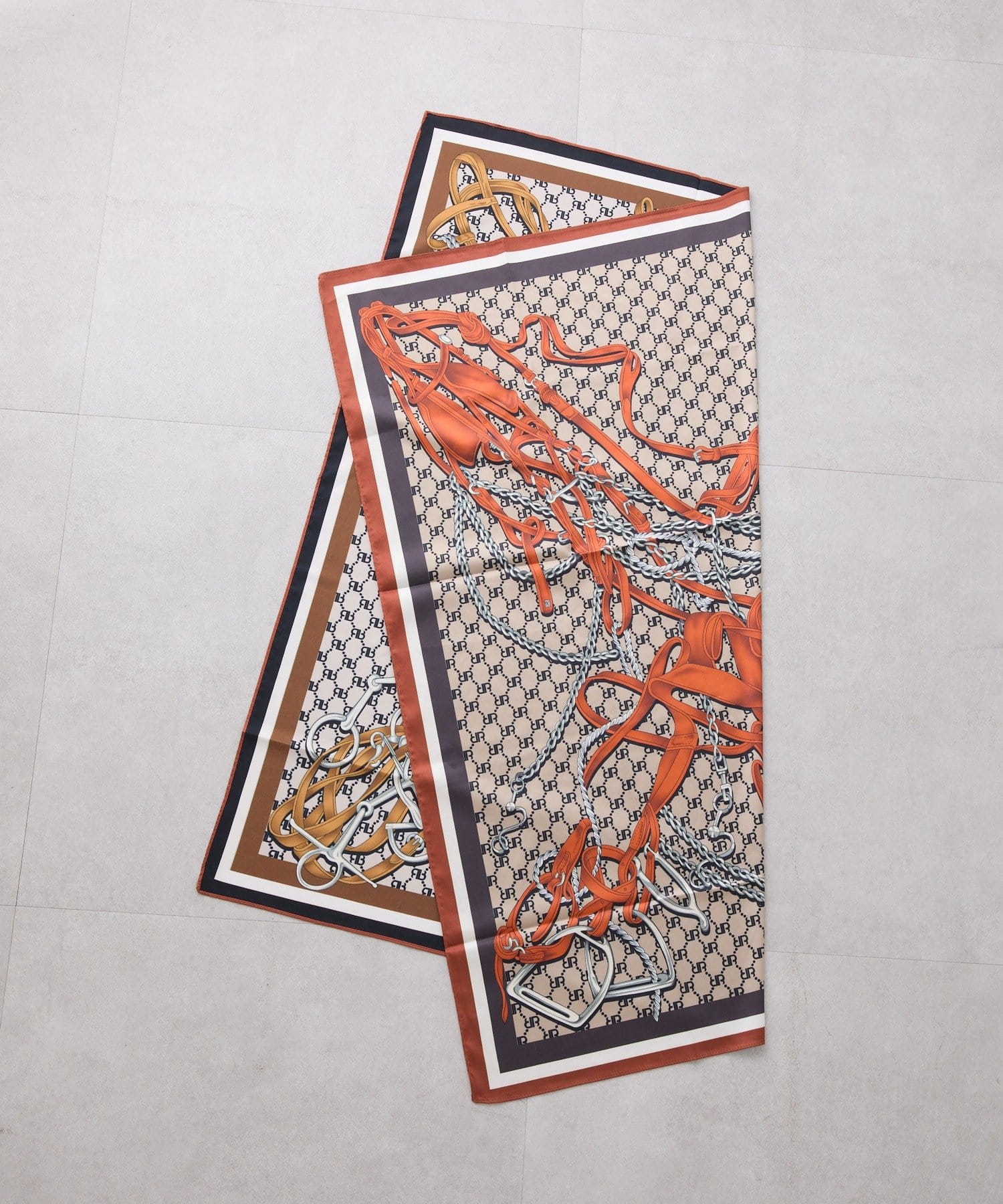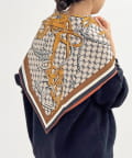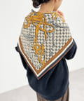 ・大判のスカーフで首に巻いたり、腰にワンポイントで巻いたりなど幅広いアレンジが可能