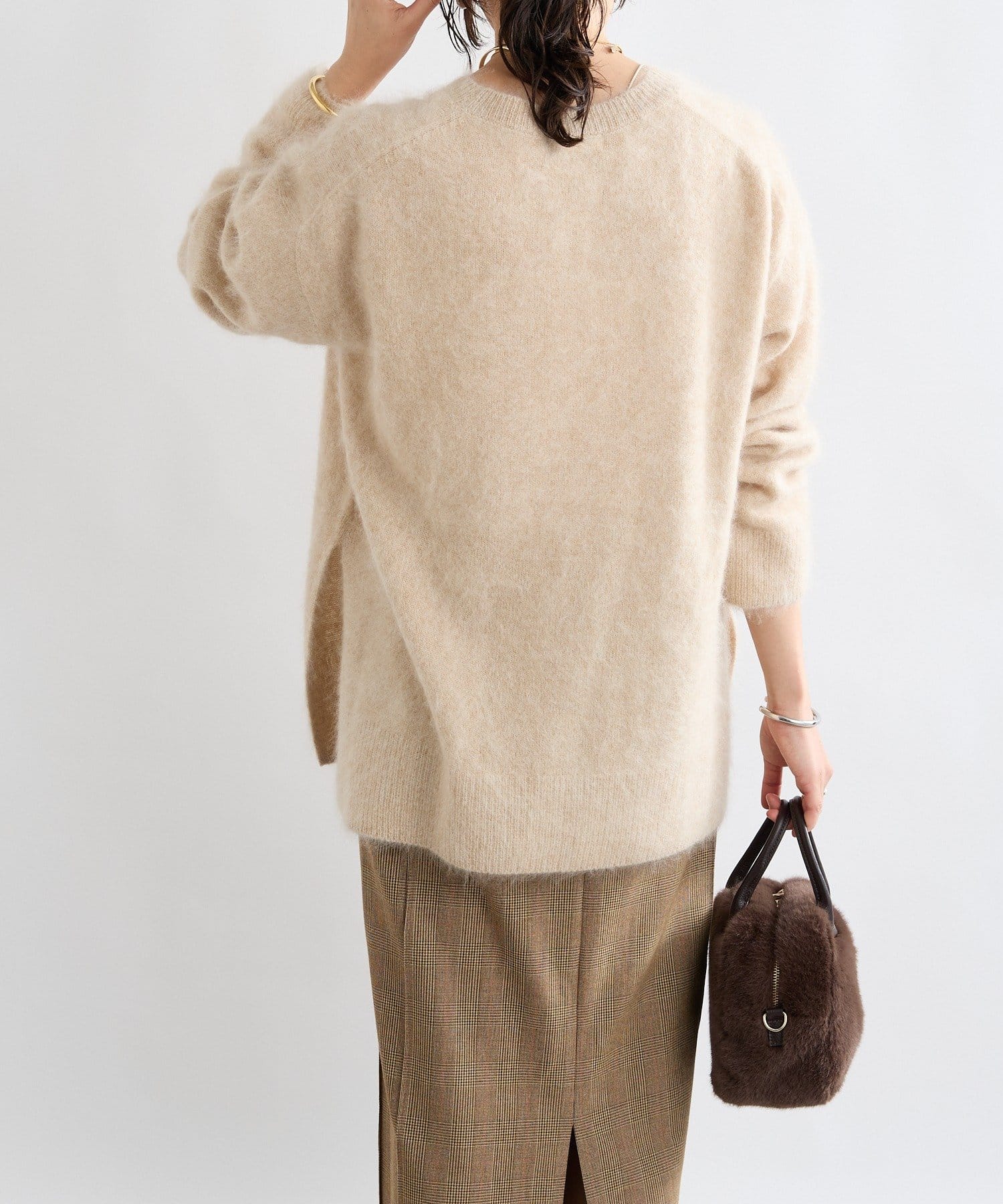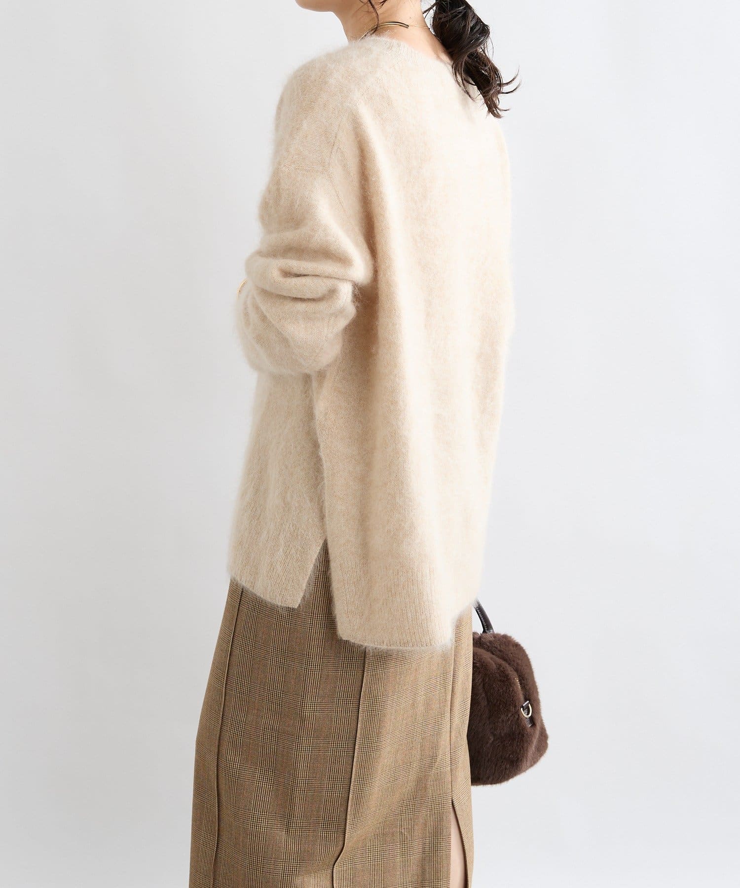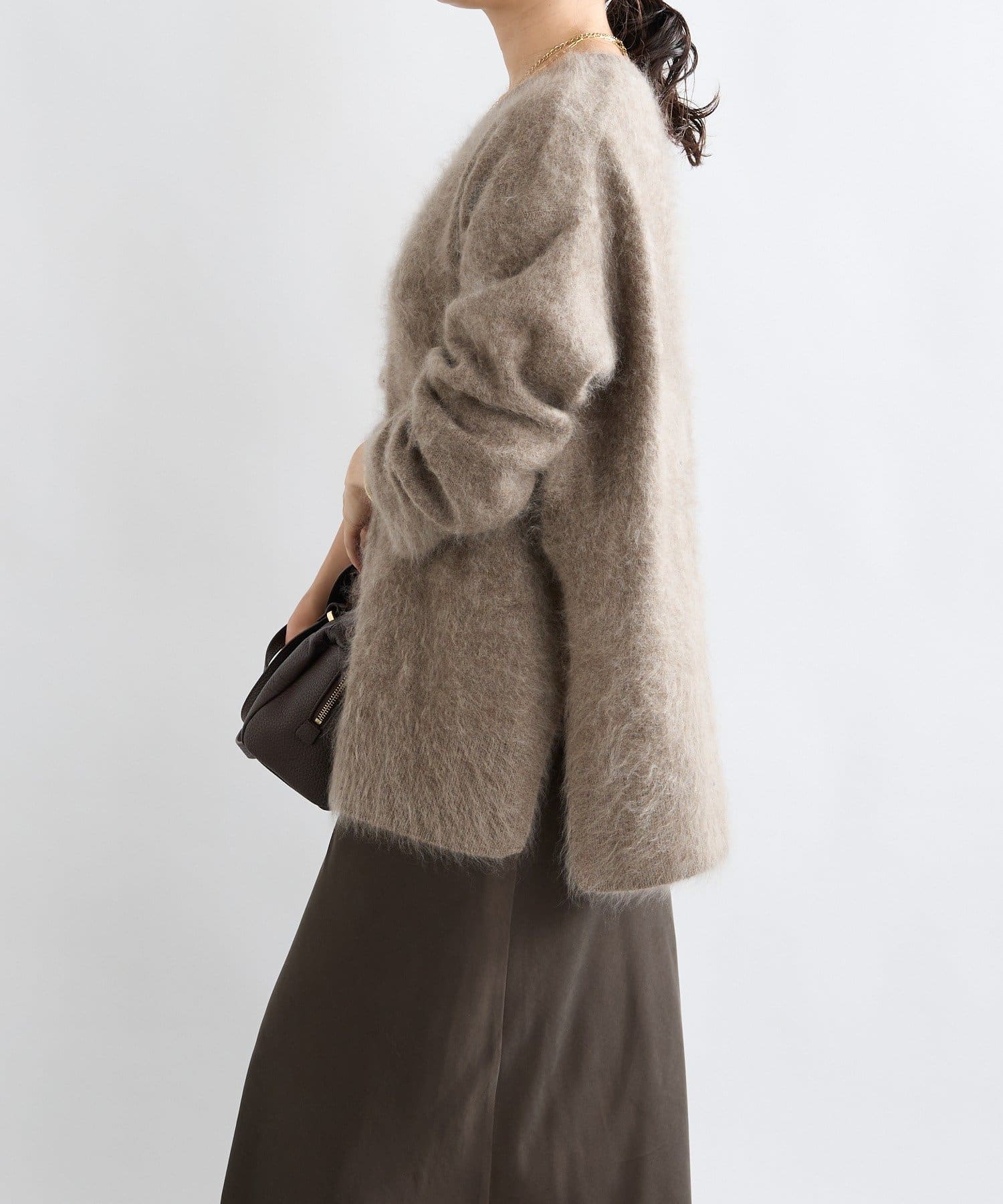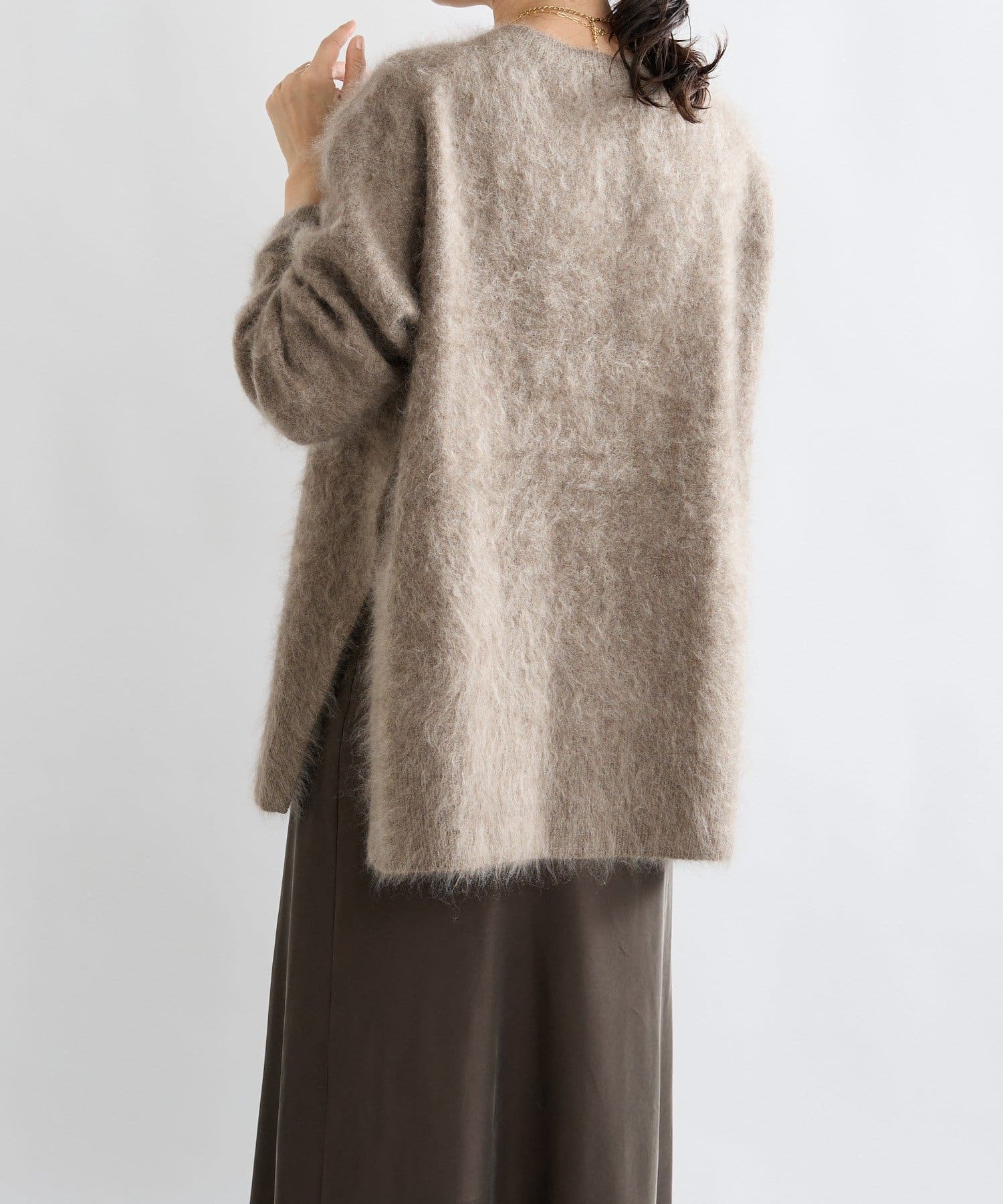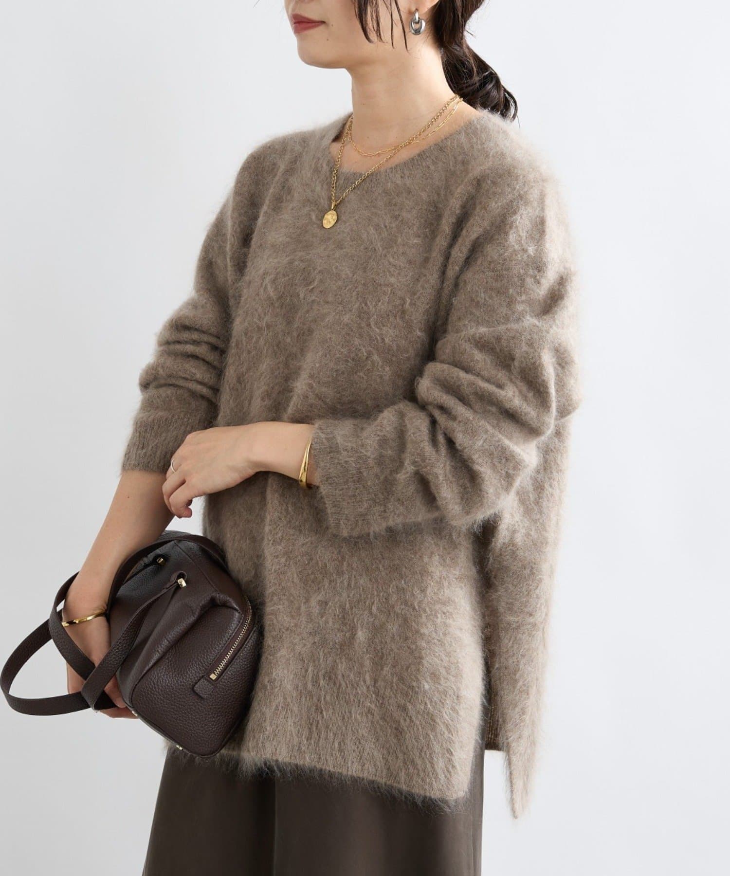・起毛加工のヘアリーな質感を生かしたシンプルなニット