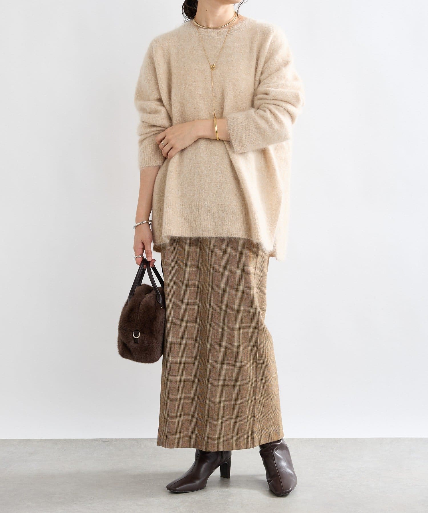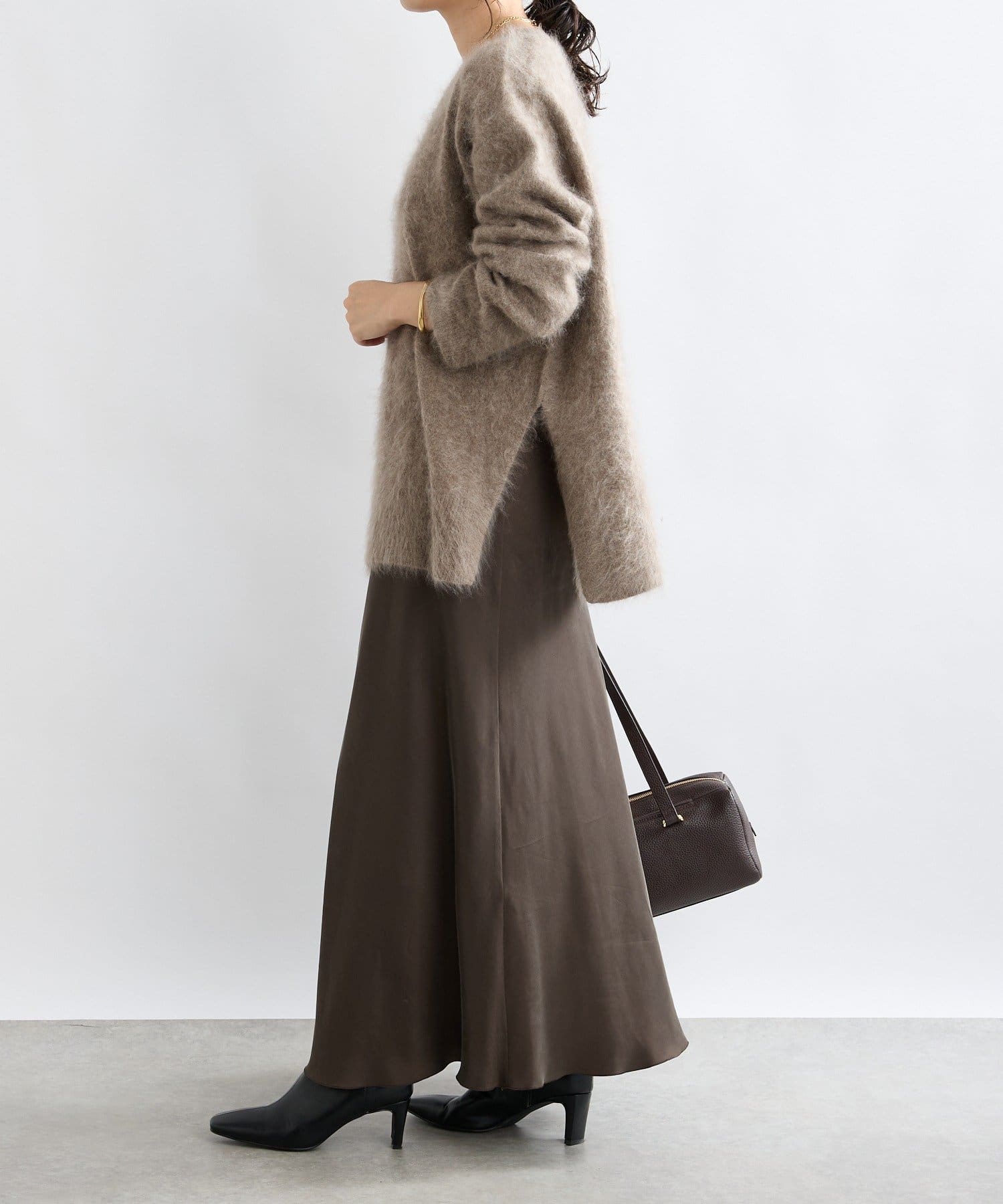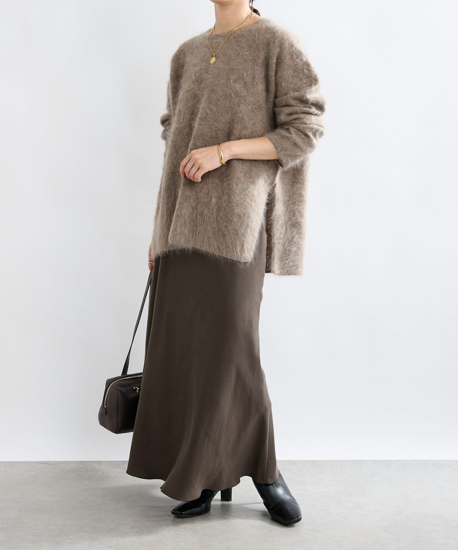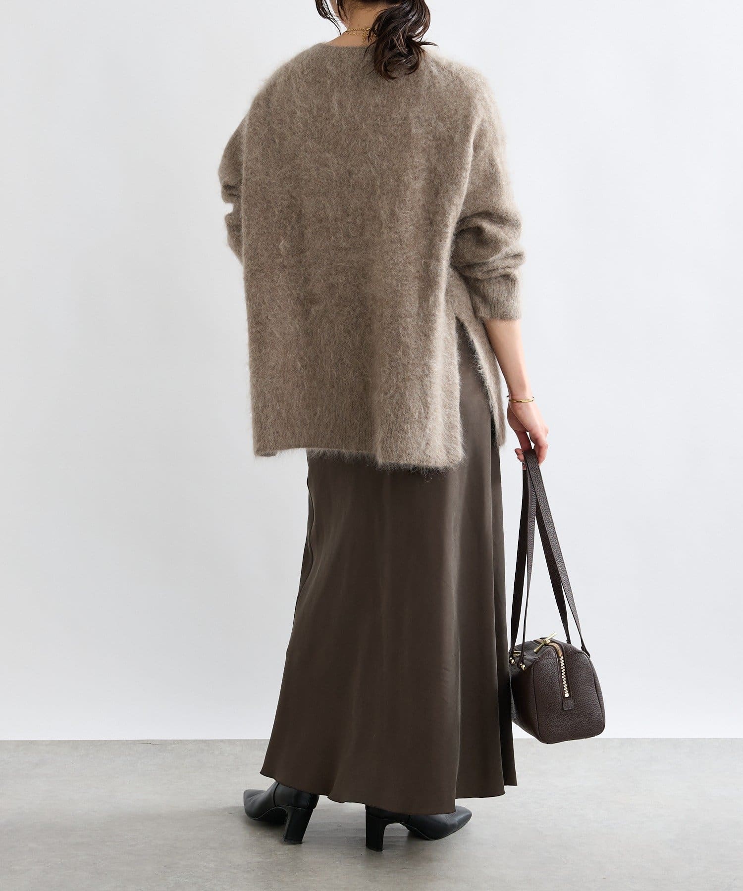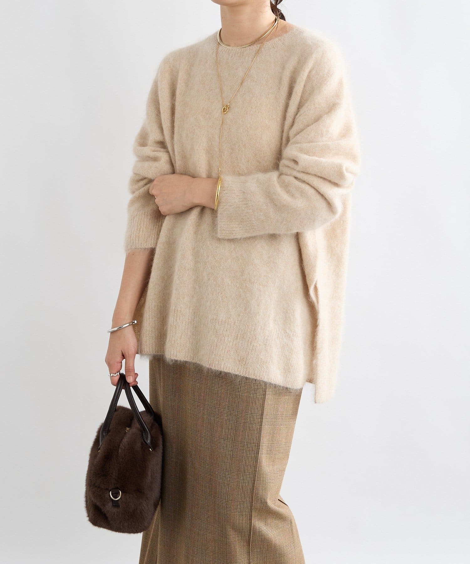 ・起毛加工のヘアリーな質感を生かしたシンプルなニット