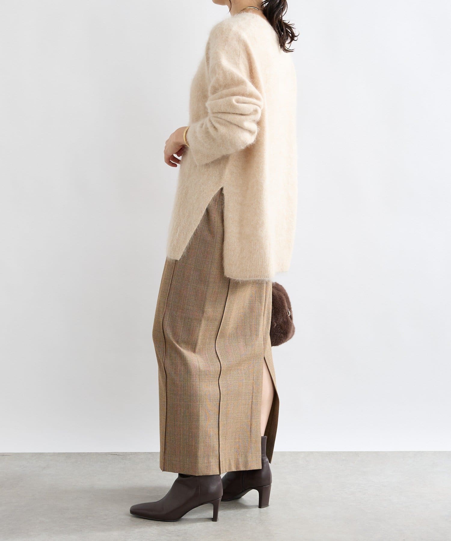 【ヘアリーな質感】起毛ウールサイドスリットニット