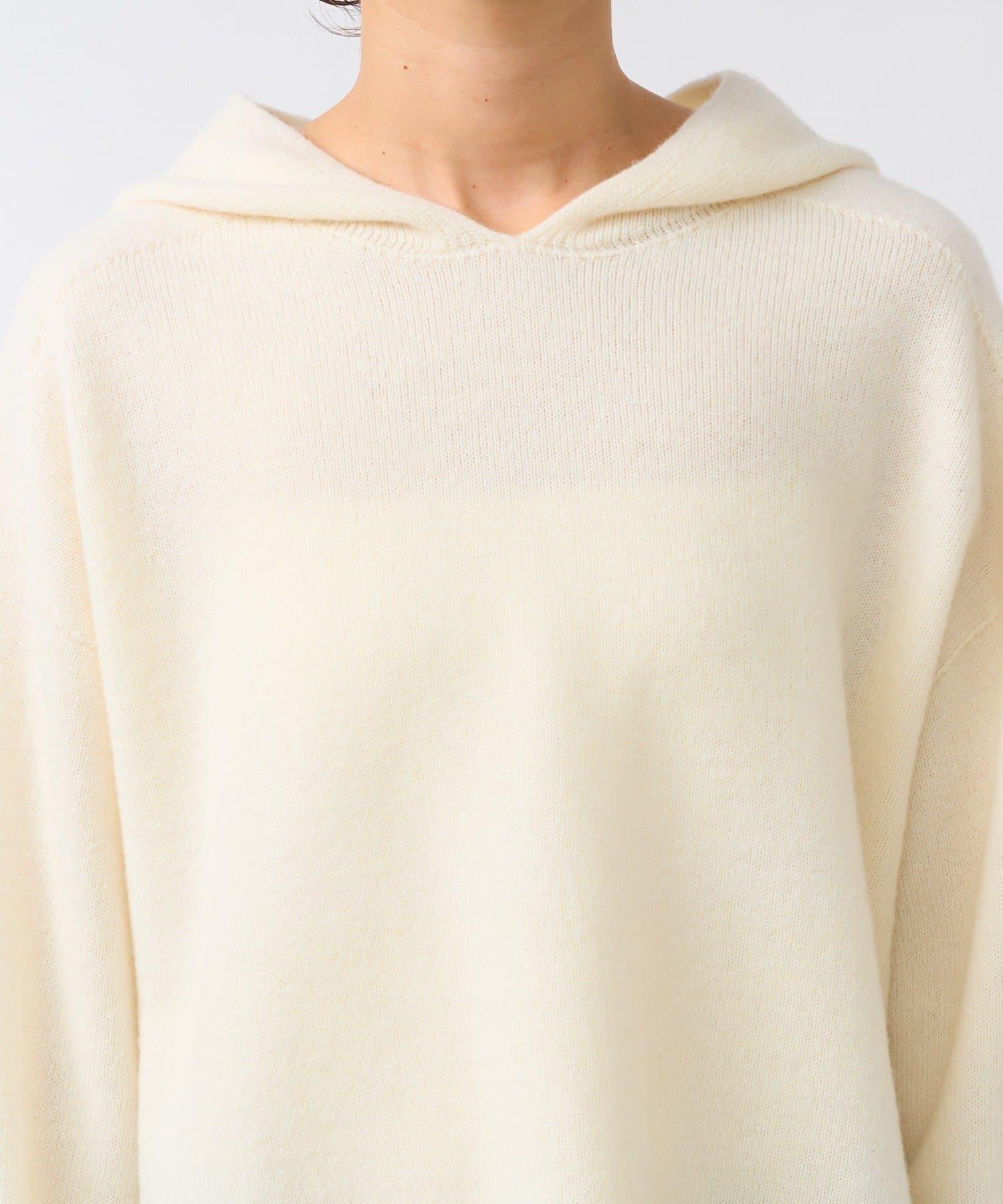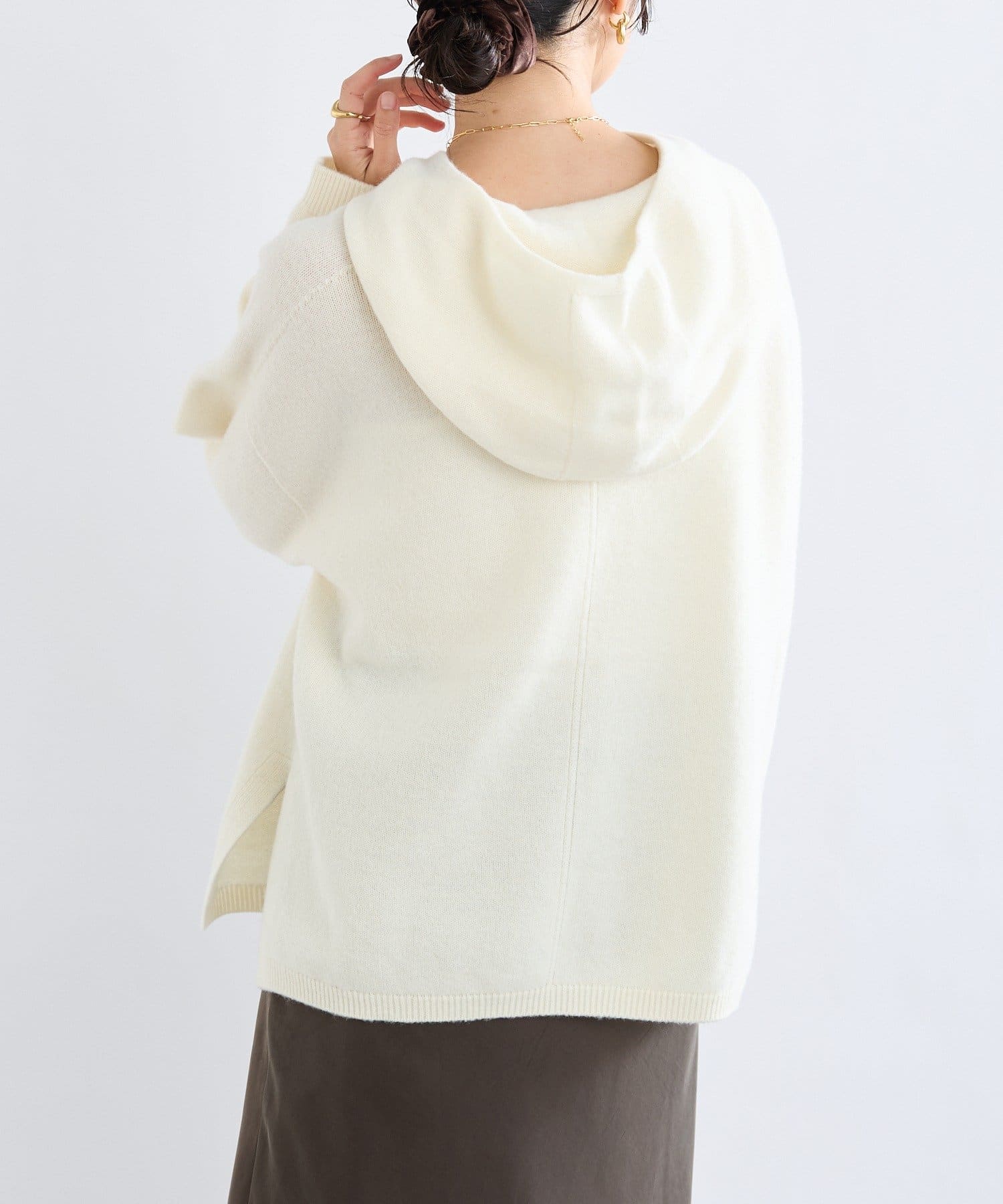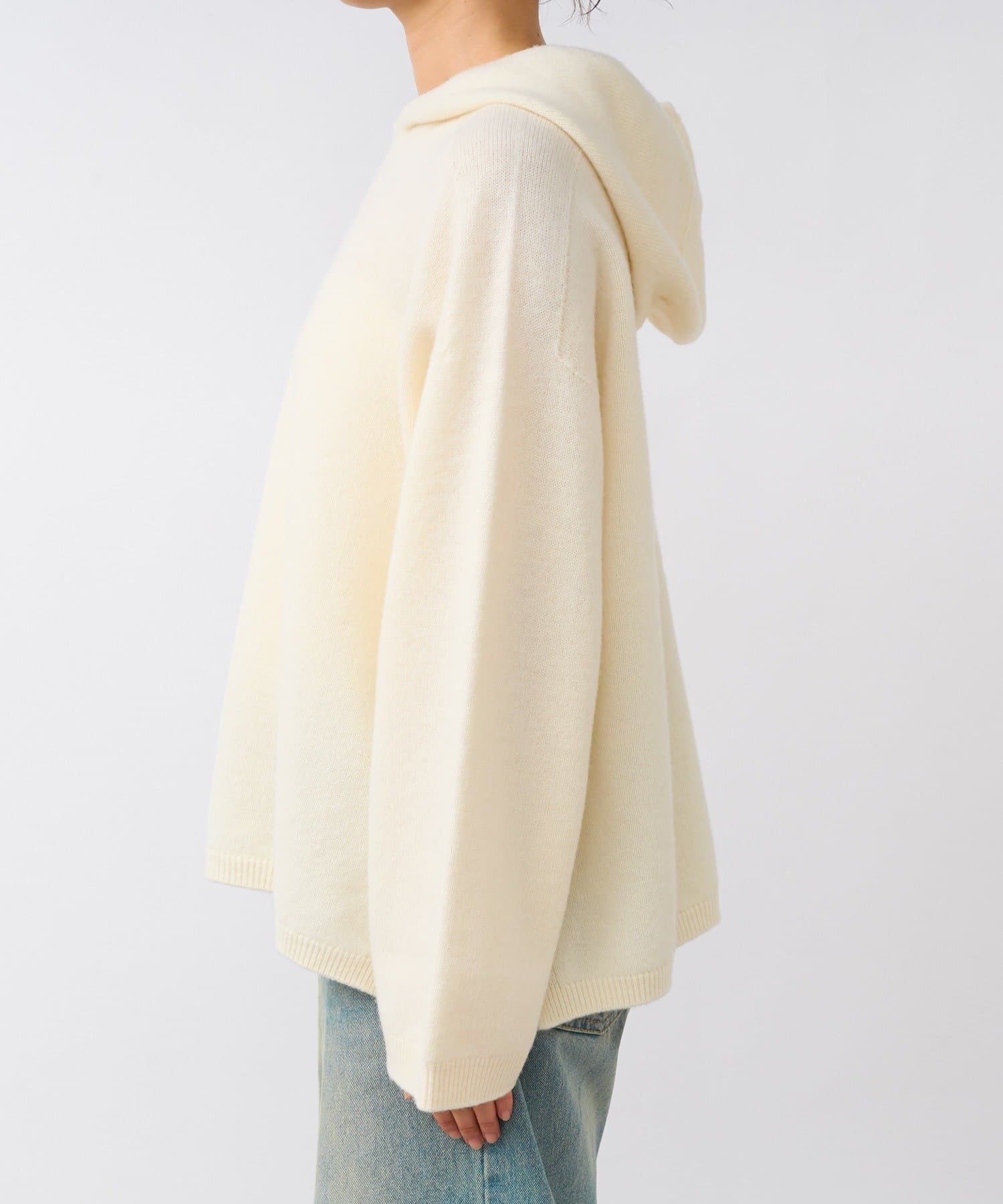 ・ホールガーメント編みで編み上げた立体的なフード付きプルオーバー。