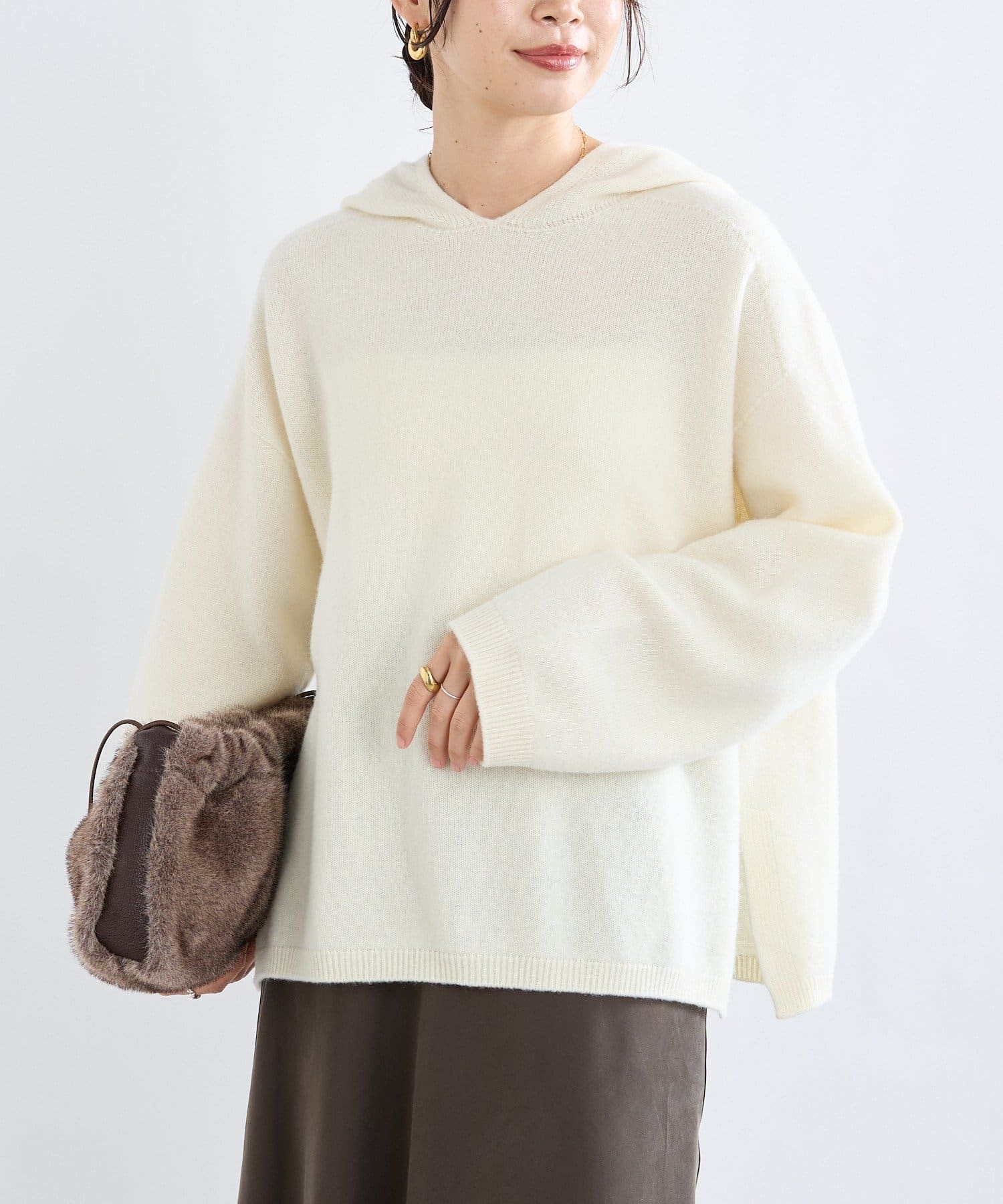 【フードがアクセントに】ウール100ホールガーメントフーディ