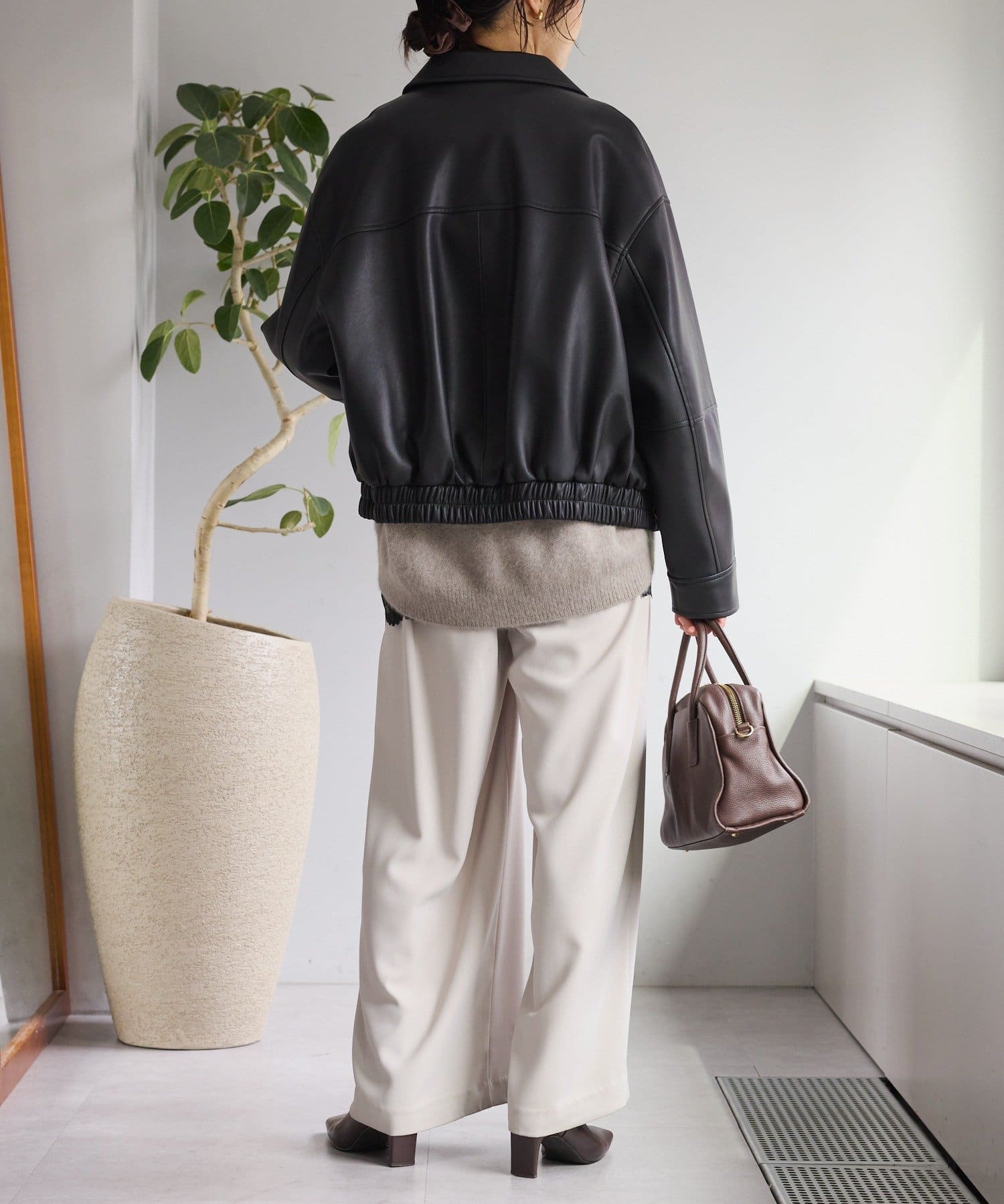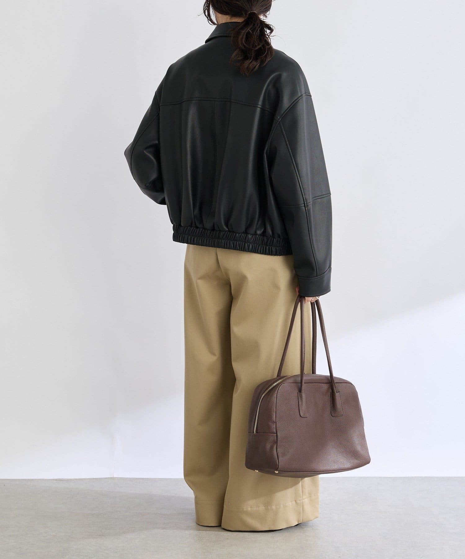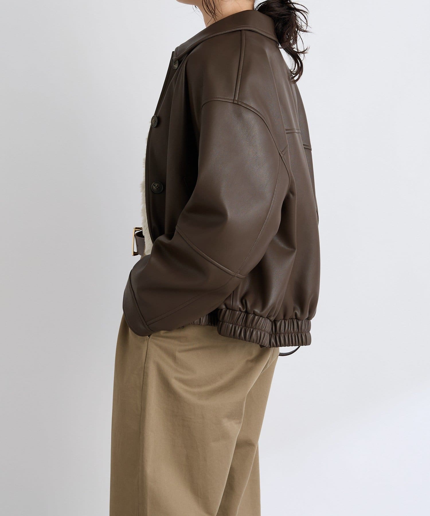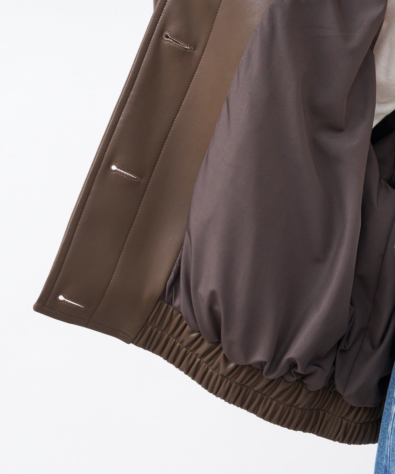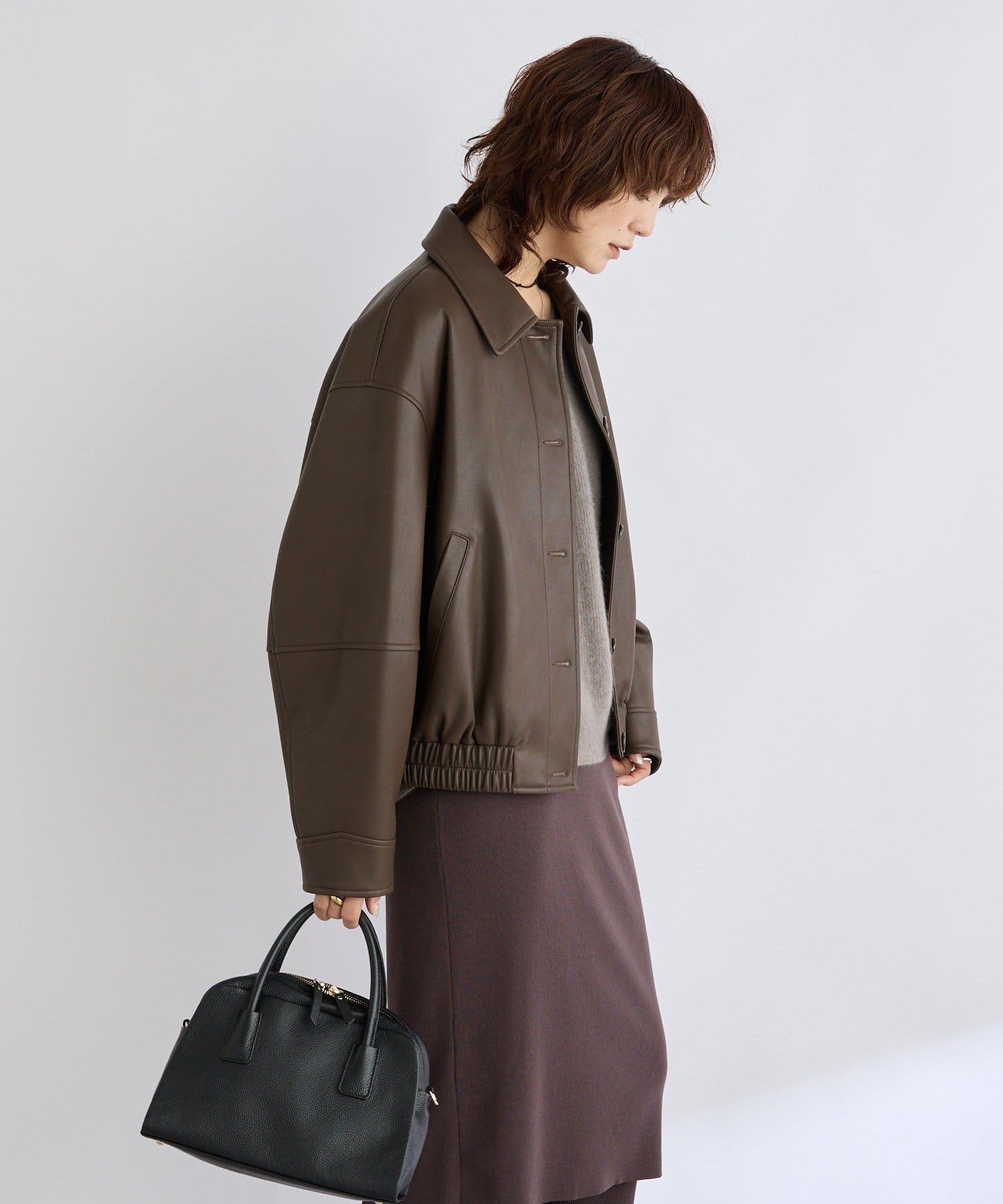 ・リアルレザーを思わせるソフトでしっとりとした合成皮革を使用したミドル丈ブルゾン。