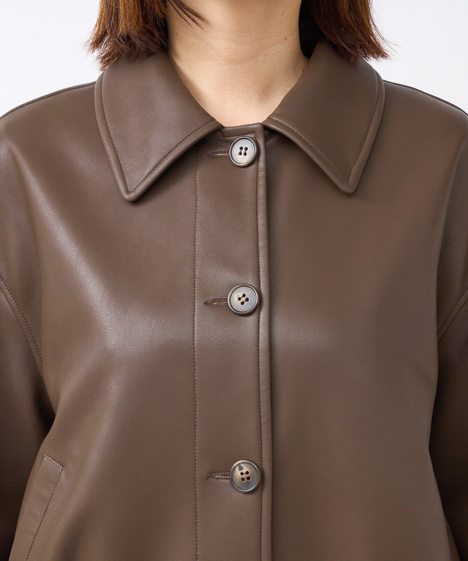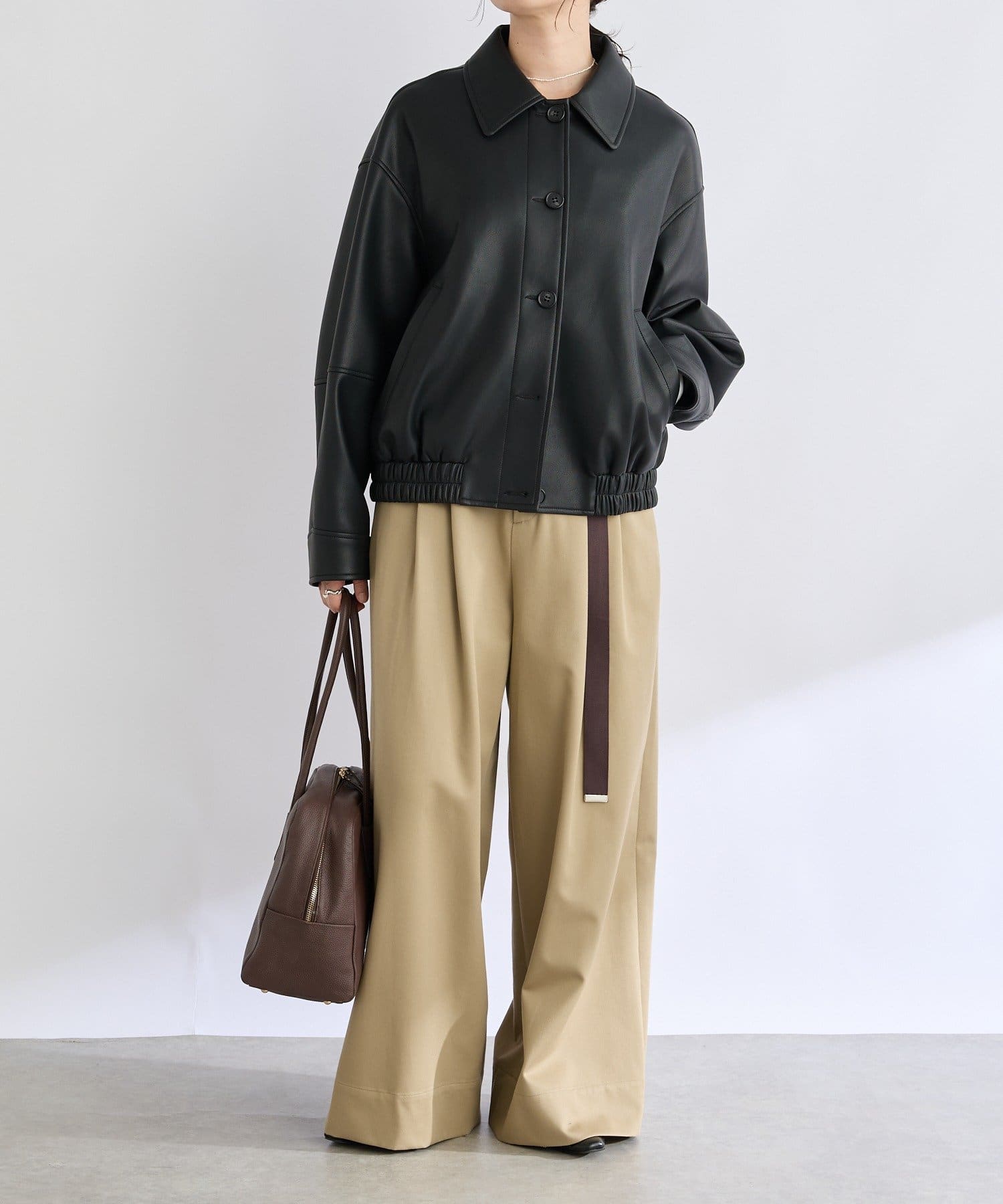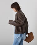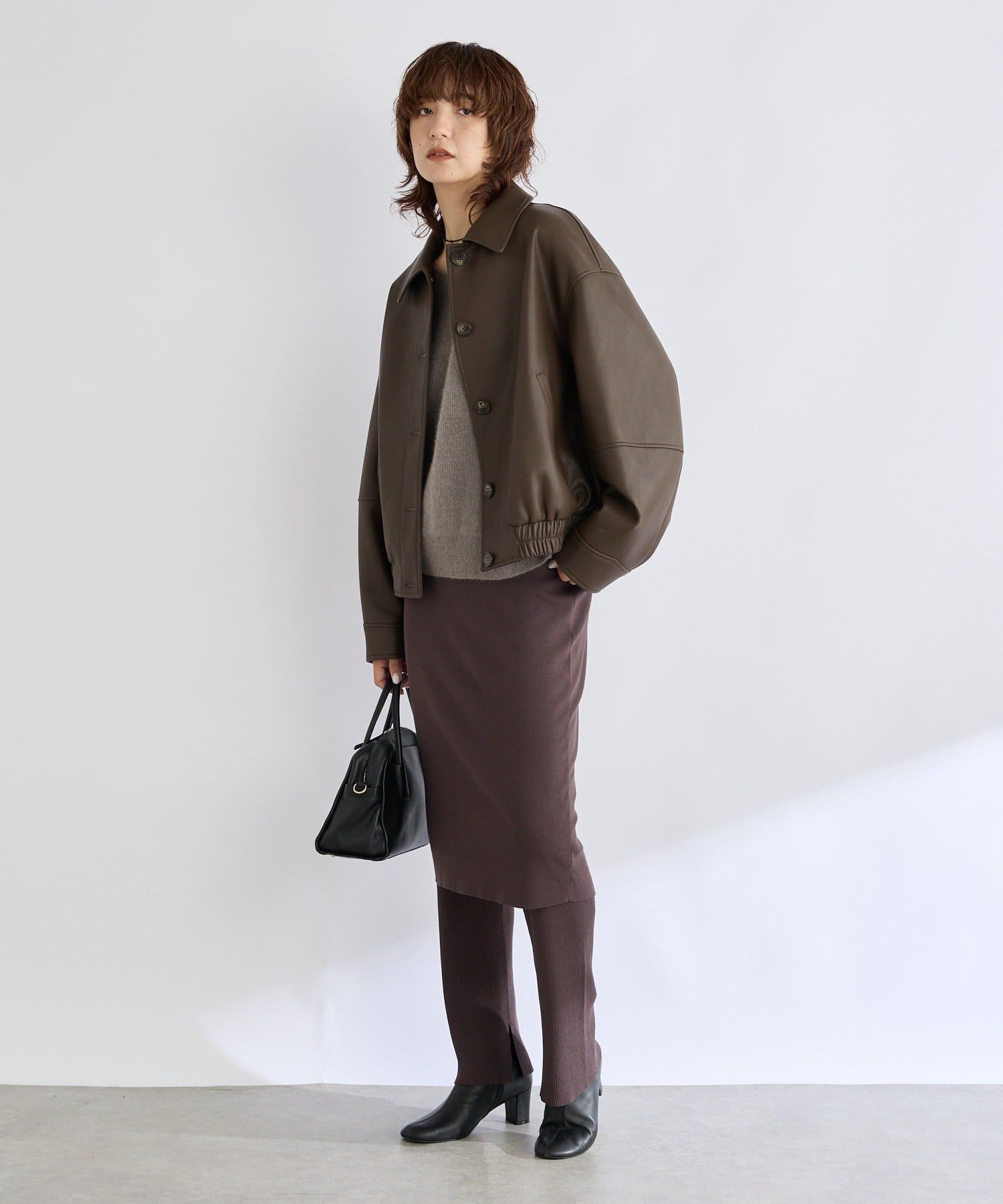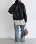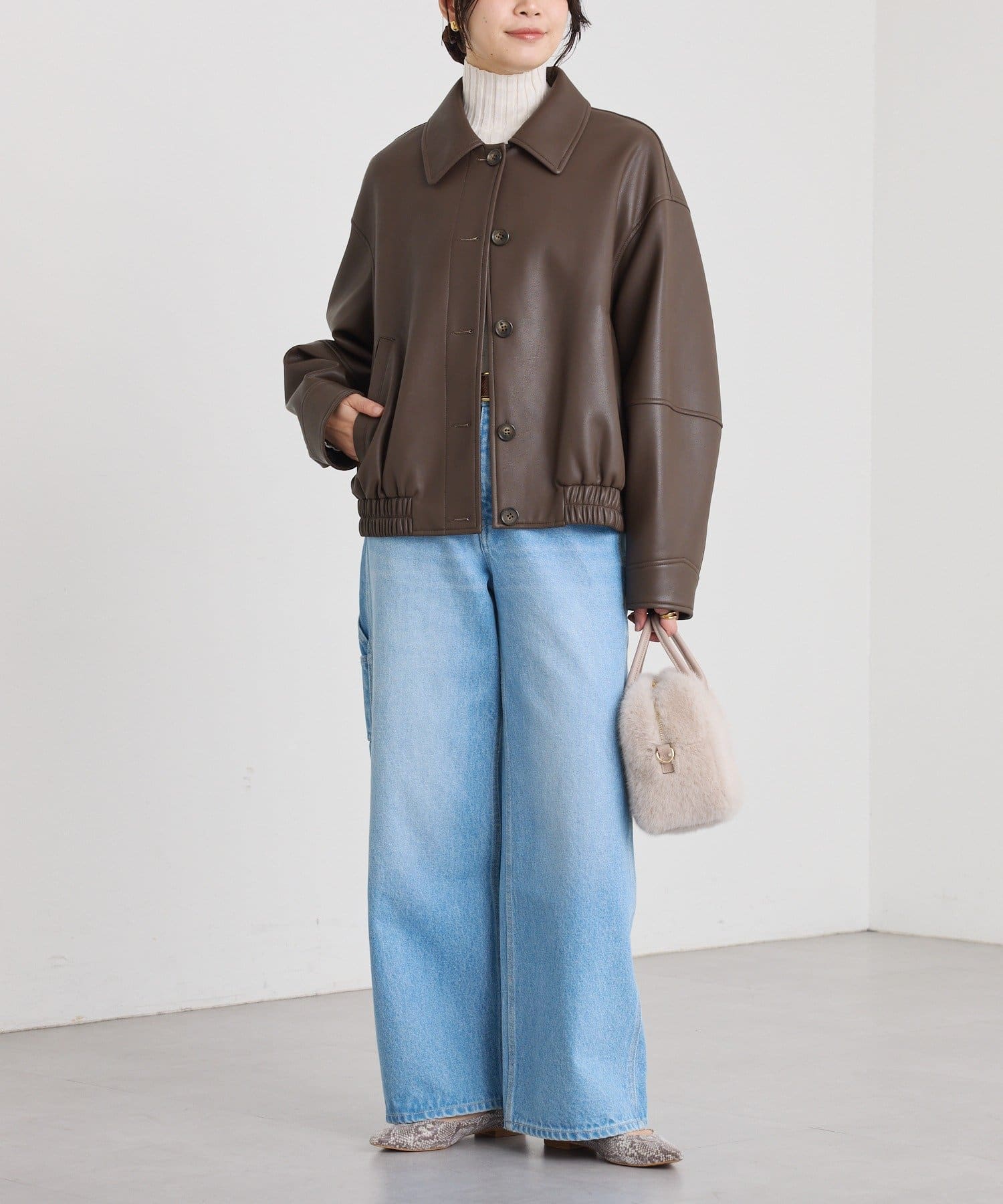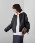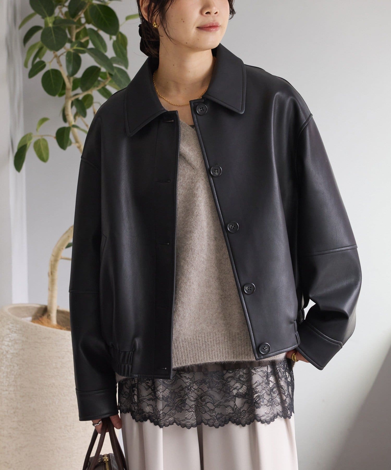 ・リアルレザーを思わせるソフトでしっとりとした合成皮革を使用したミドル丈ブルゾン。