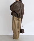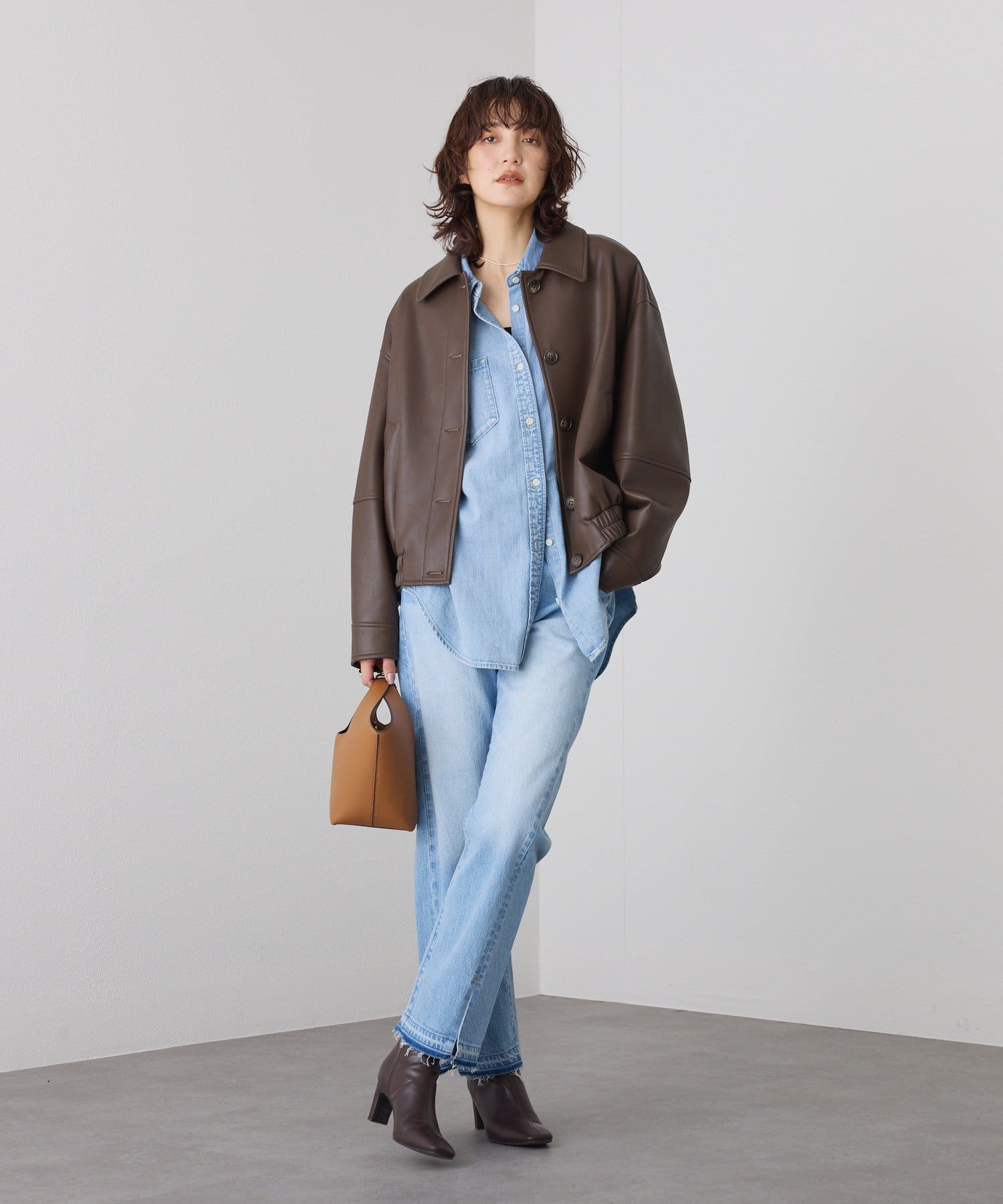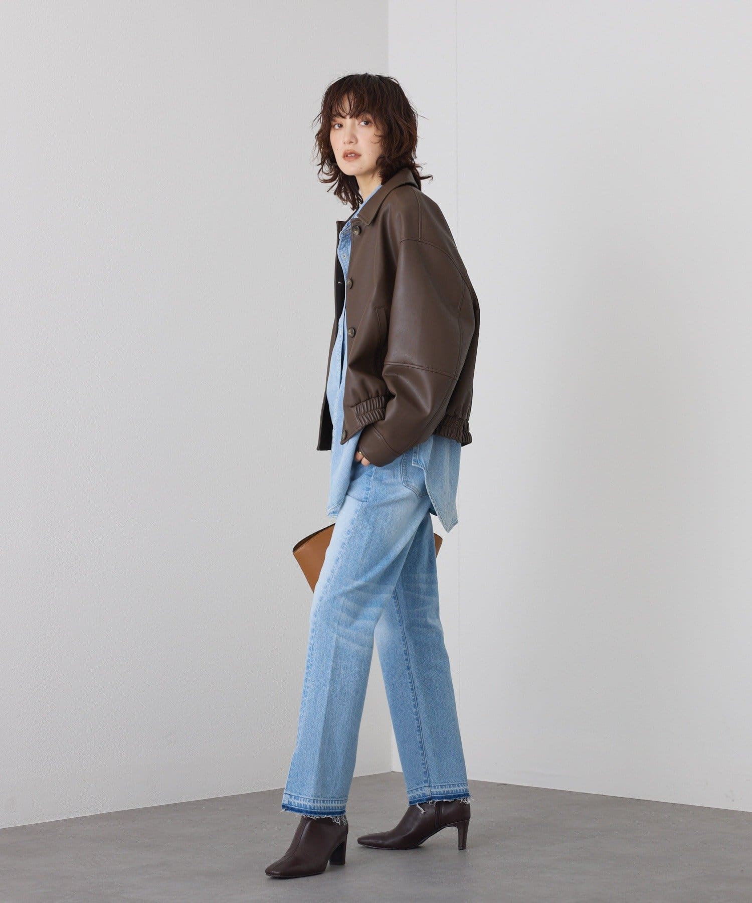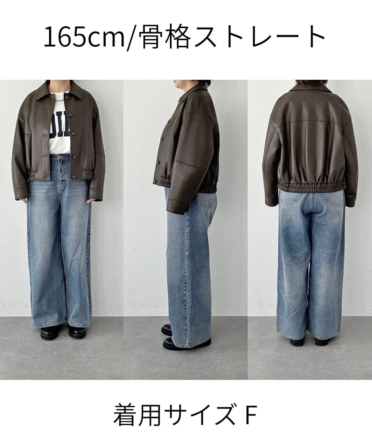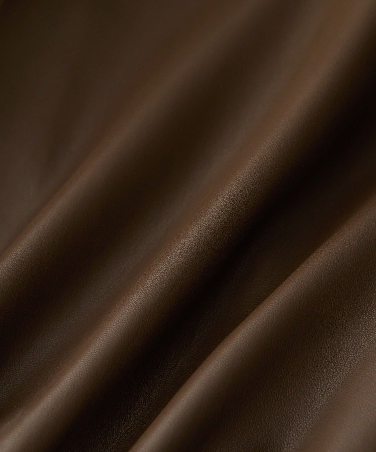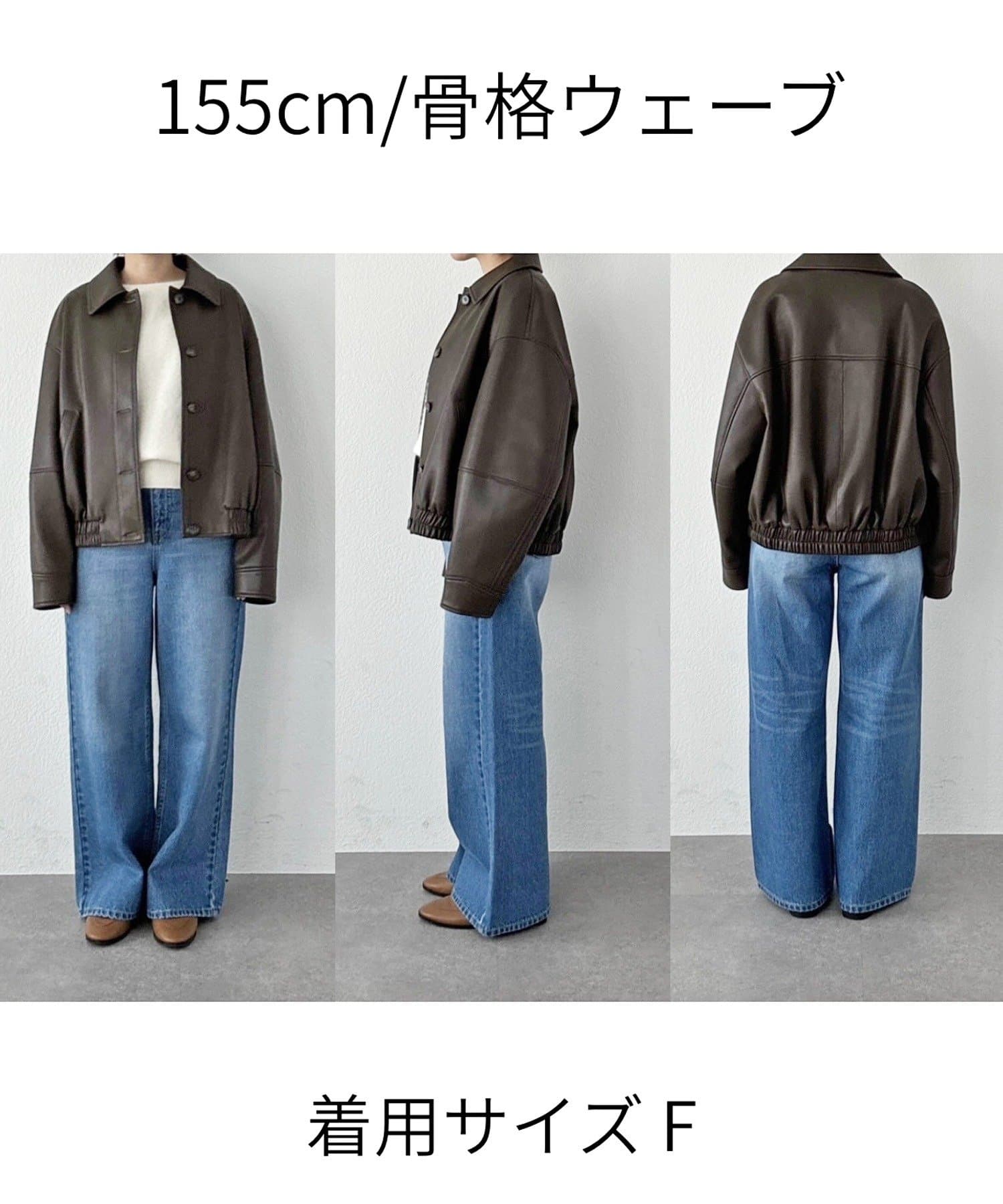 ・リアルレザーを思わせるソフトでしっとりとした合成皮革を使用したミドル丈ブルゾン。