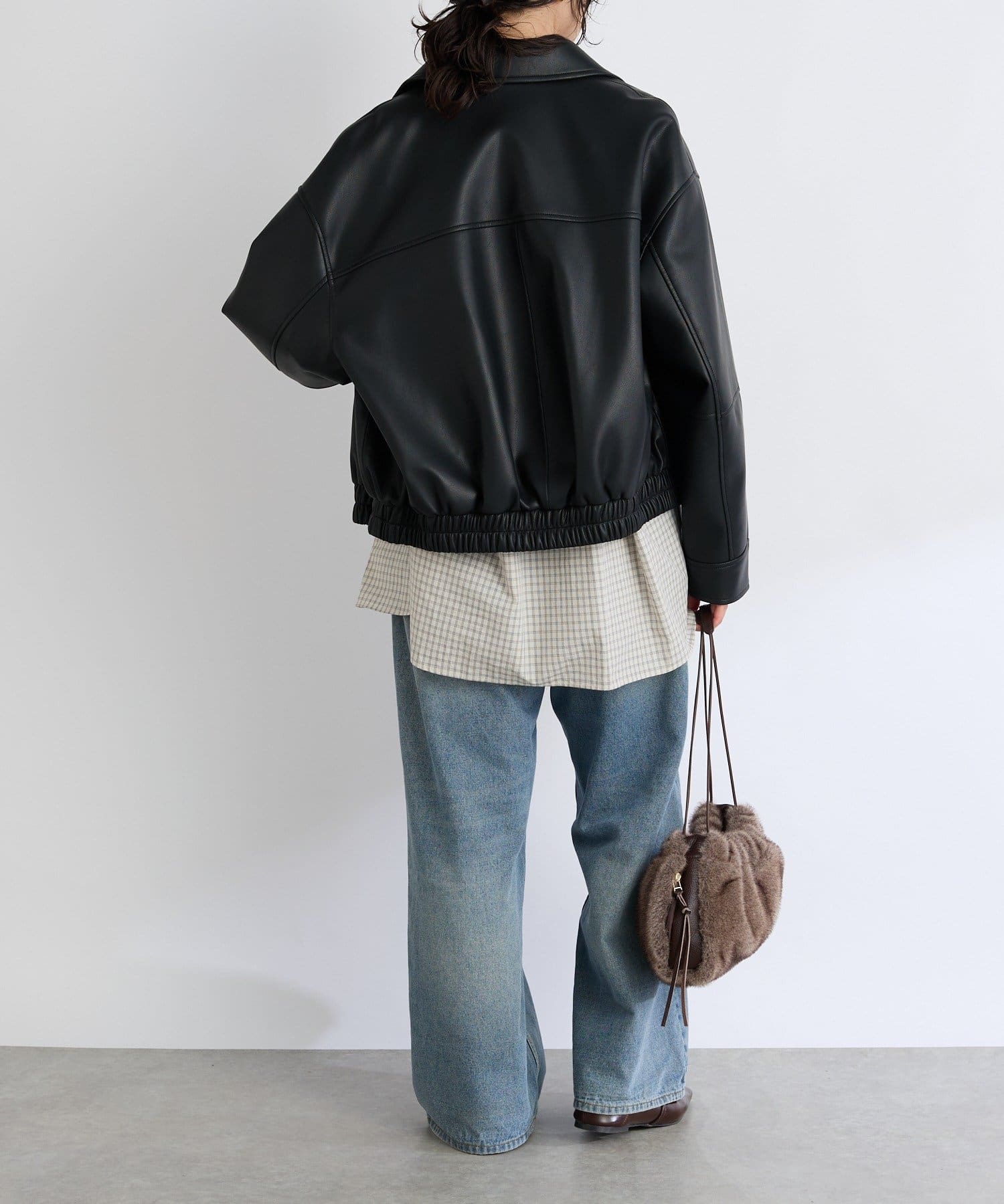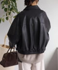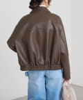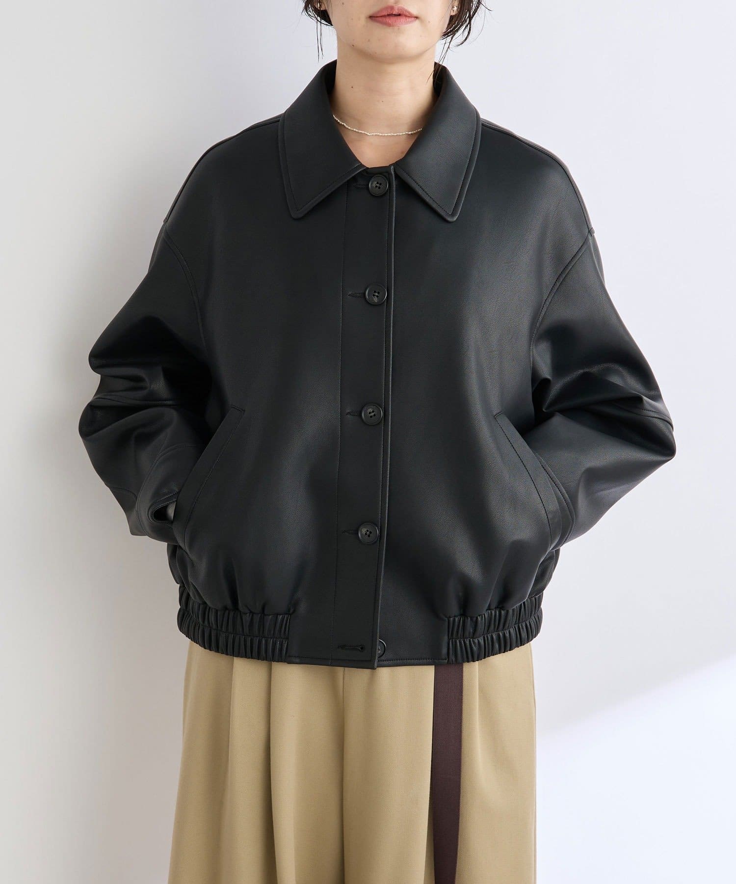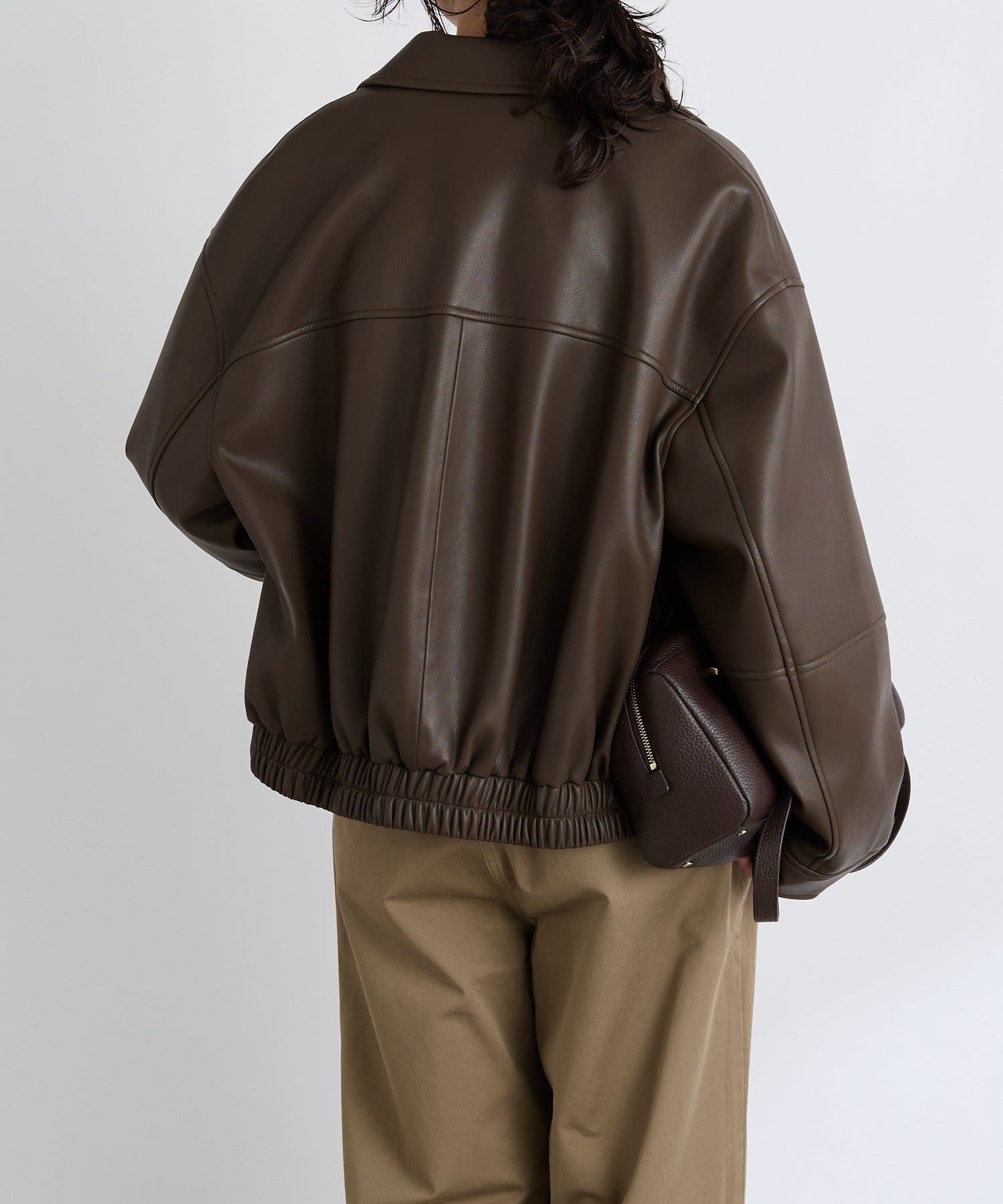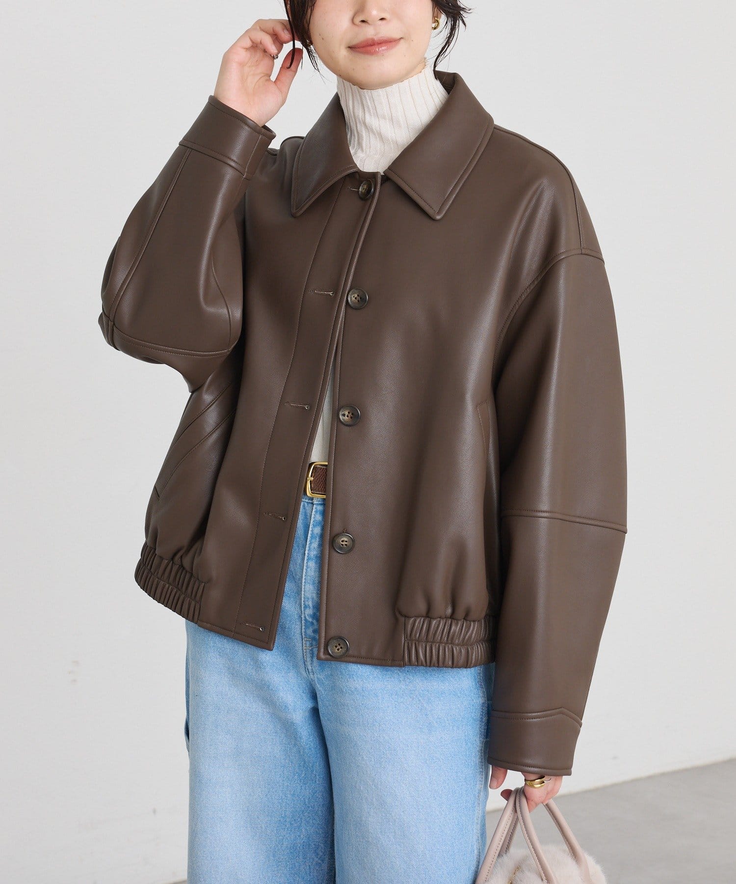 柔らかな質感の合皮素材でゆったり着やすいブルゾン。