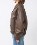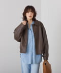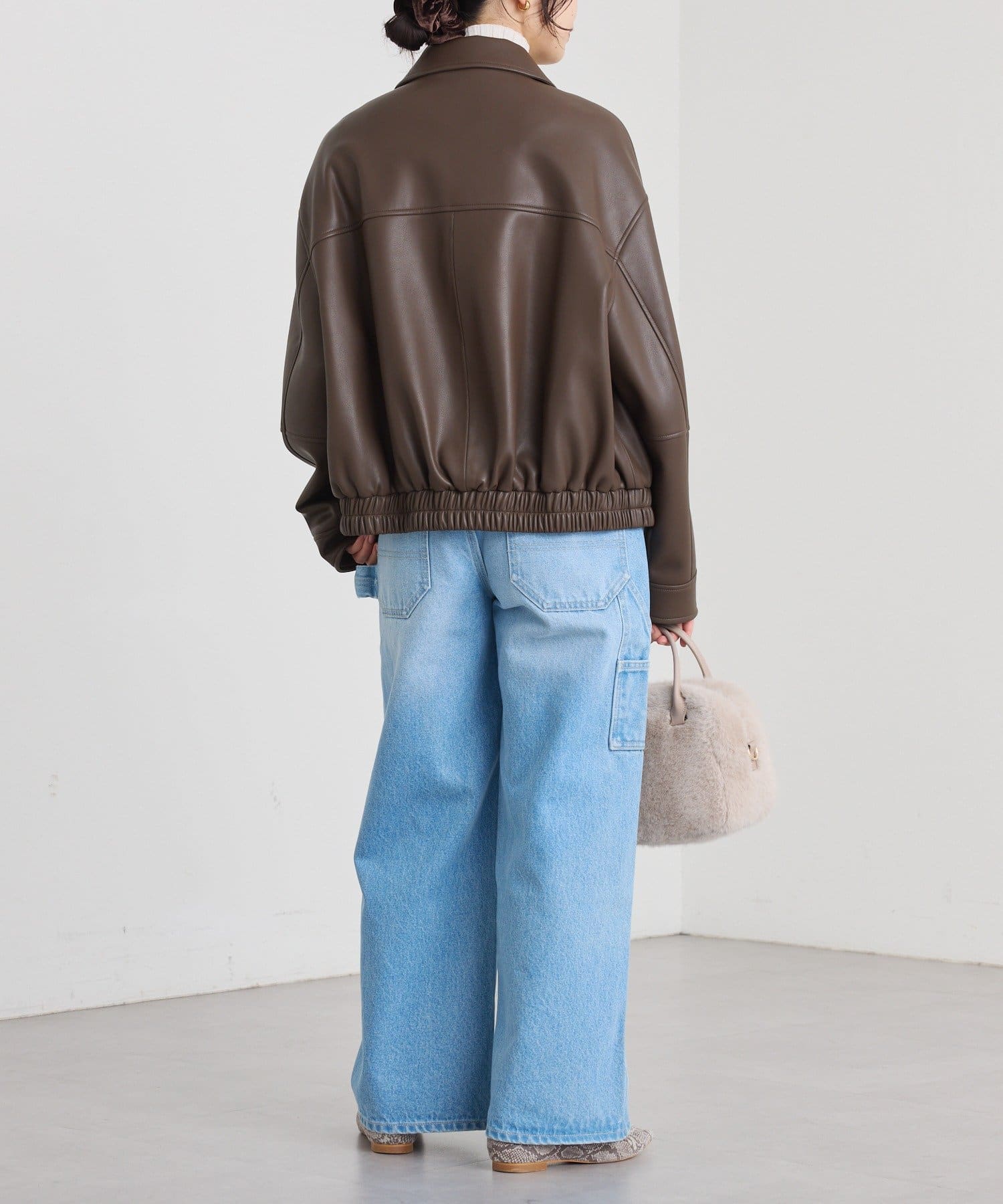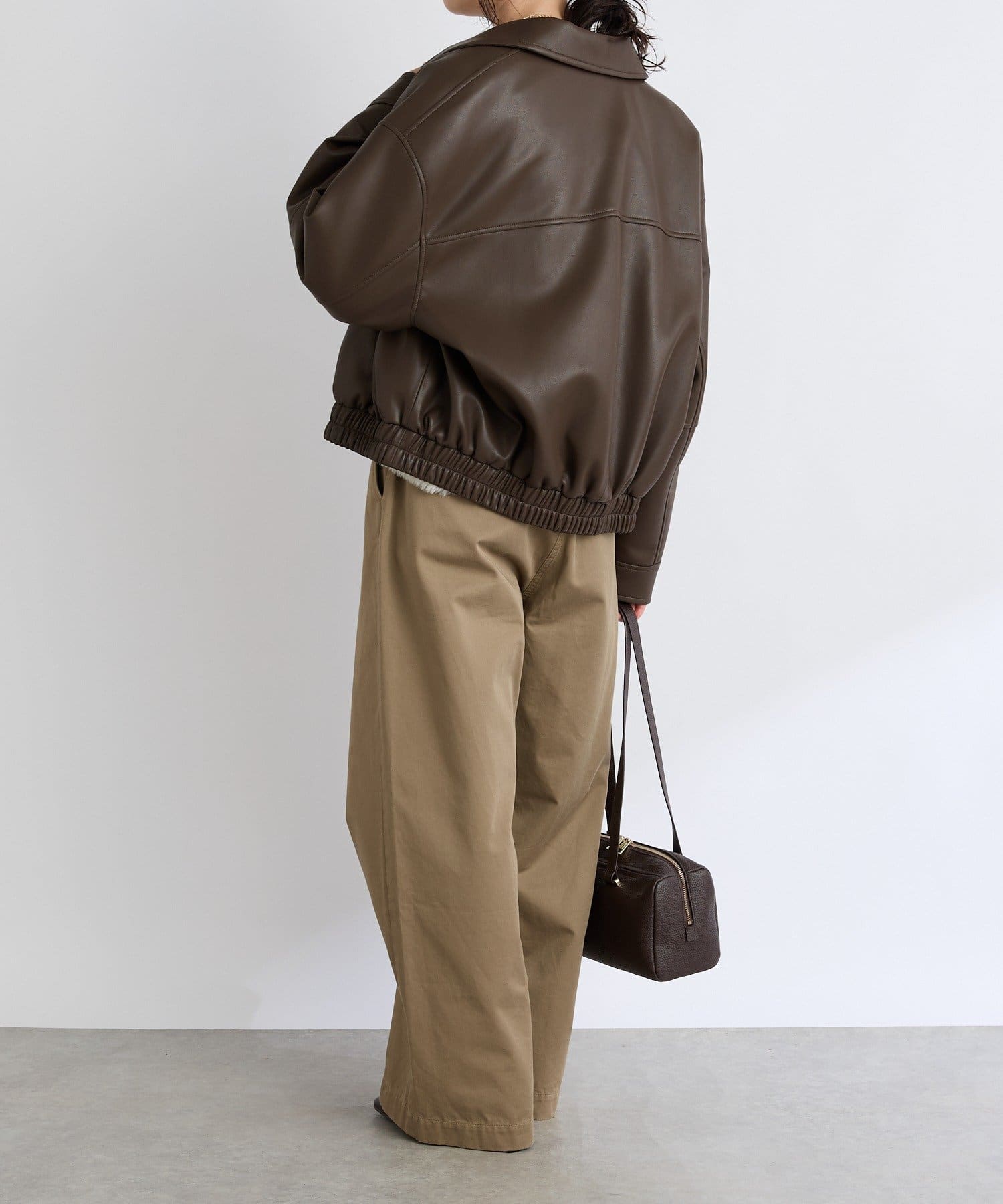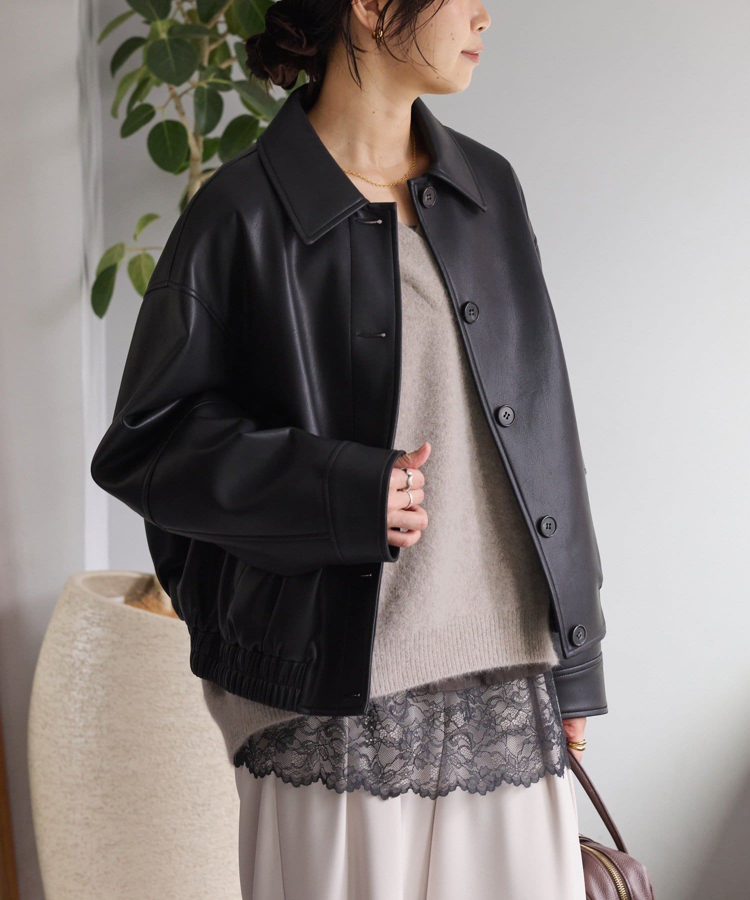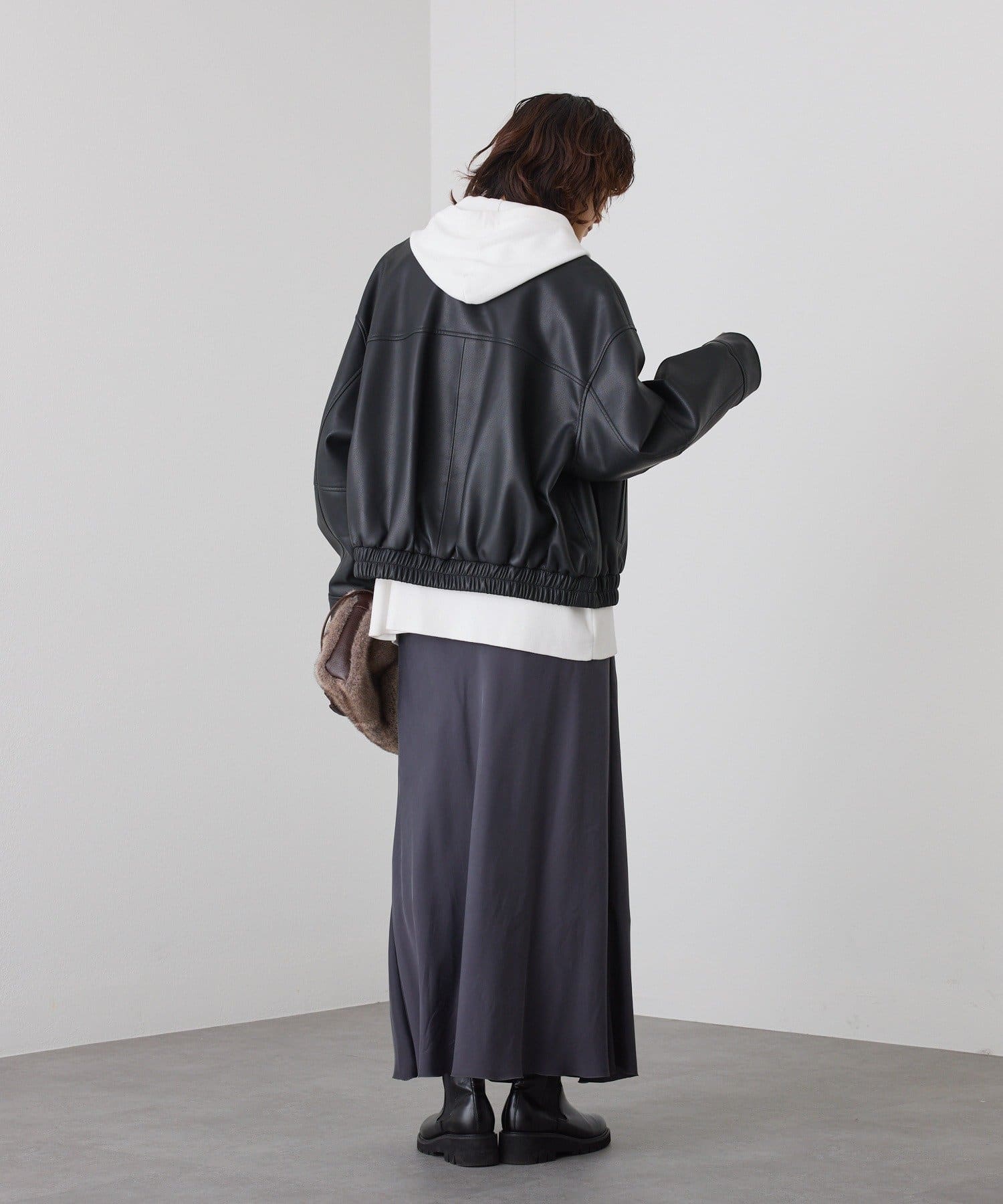 柔らかな質感の合皮素材でゆったり着やすいブルゾン。