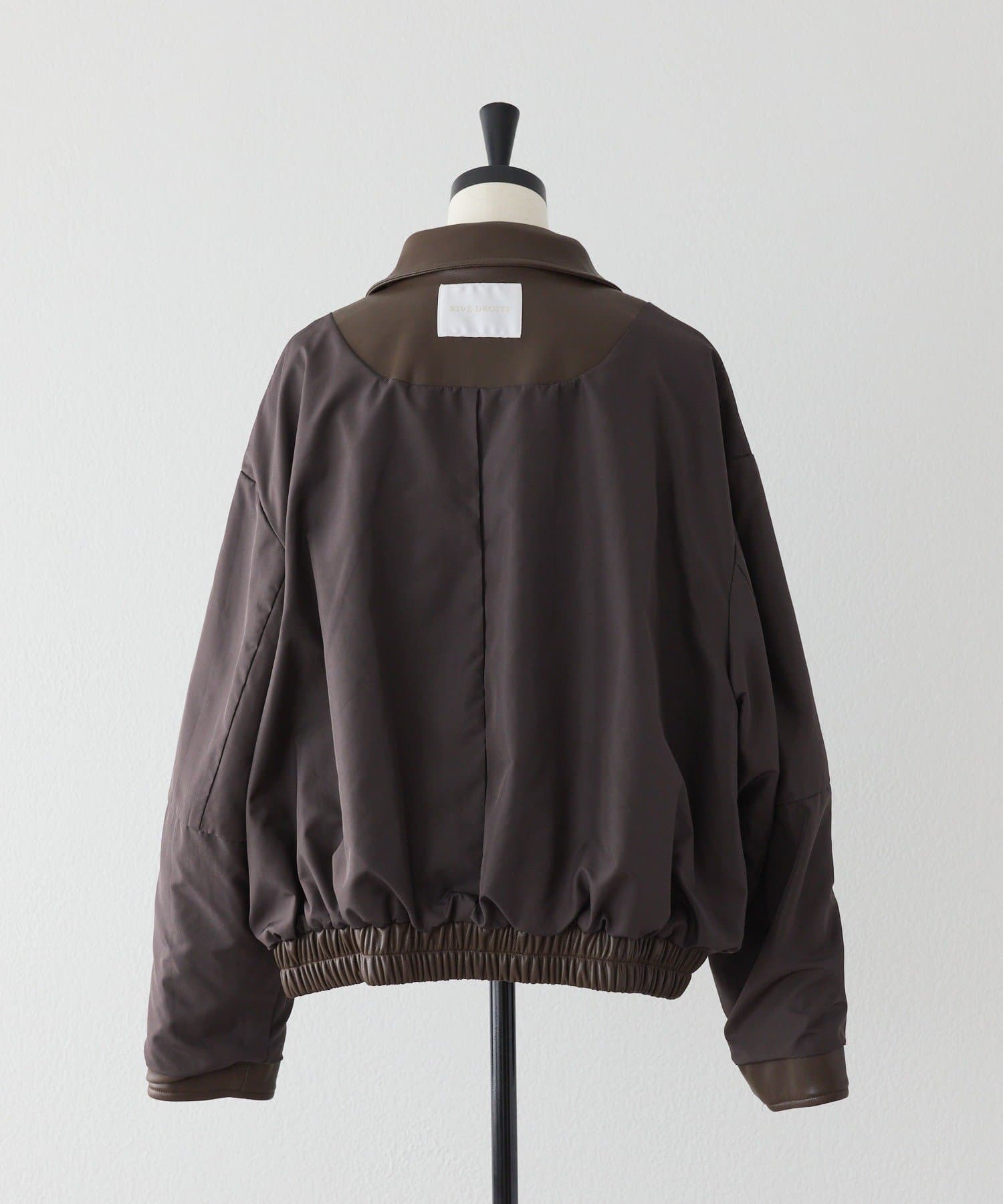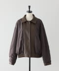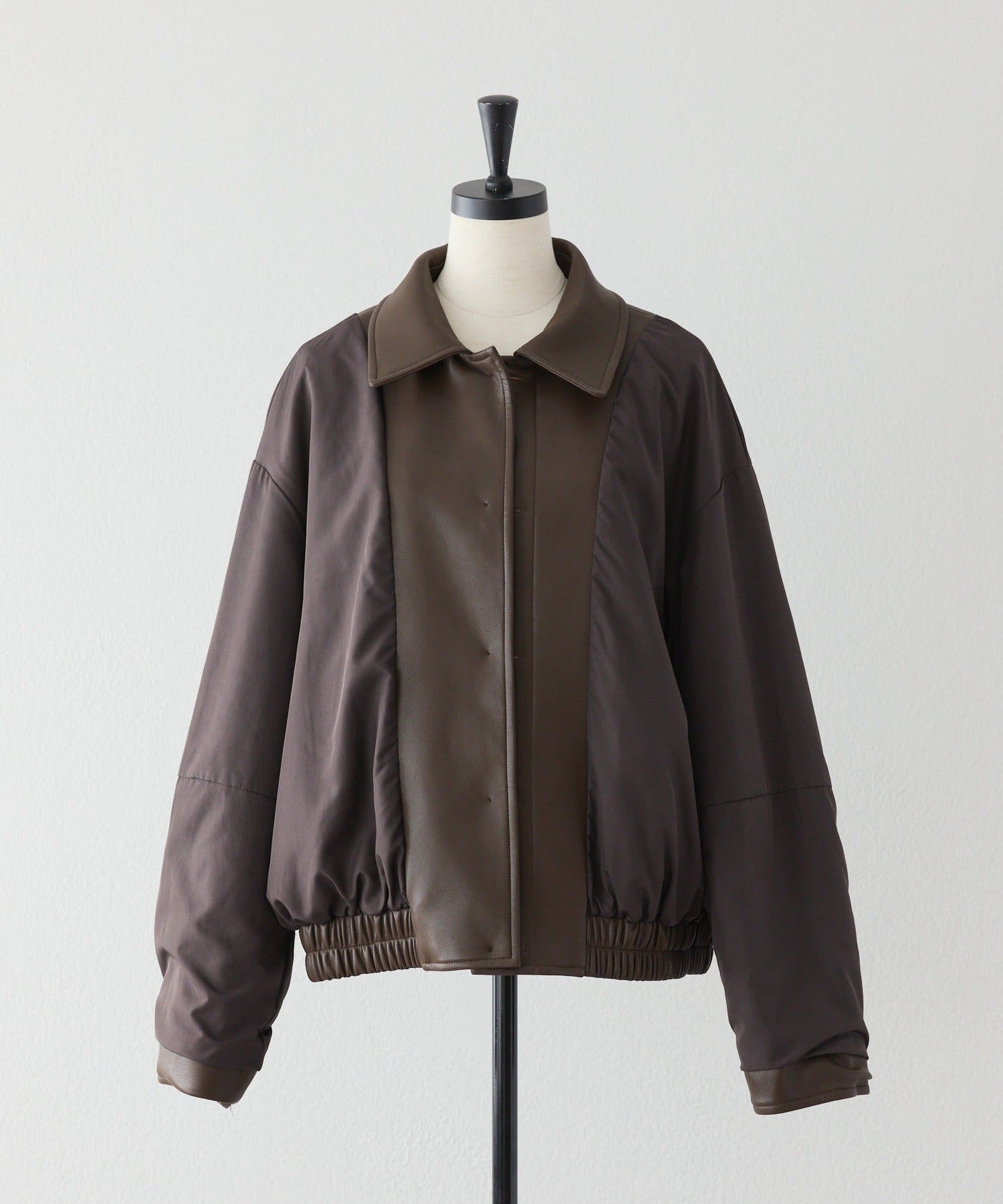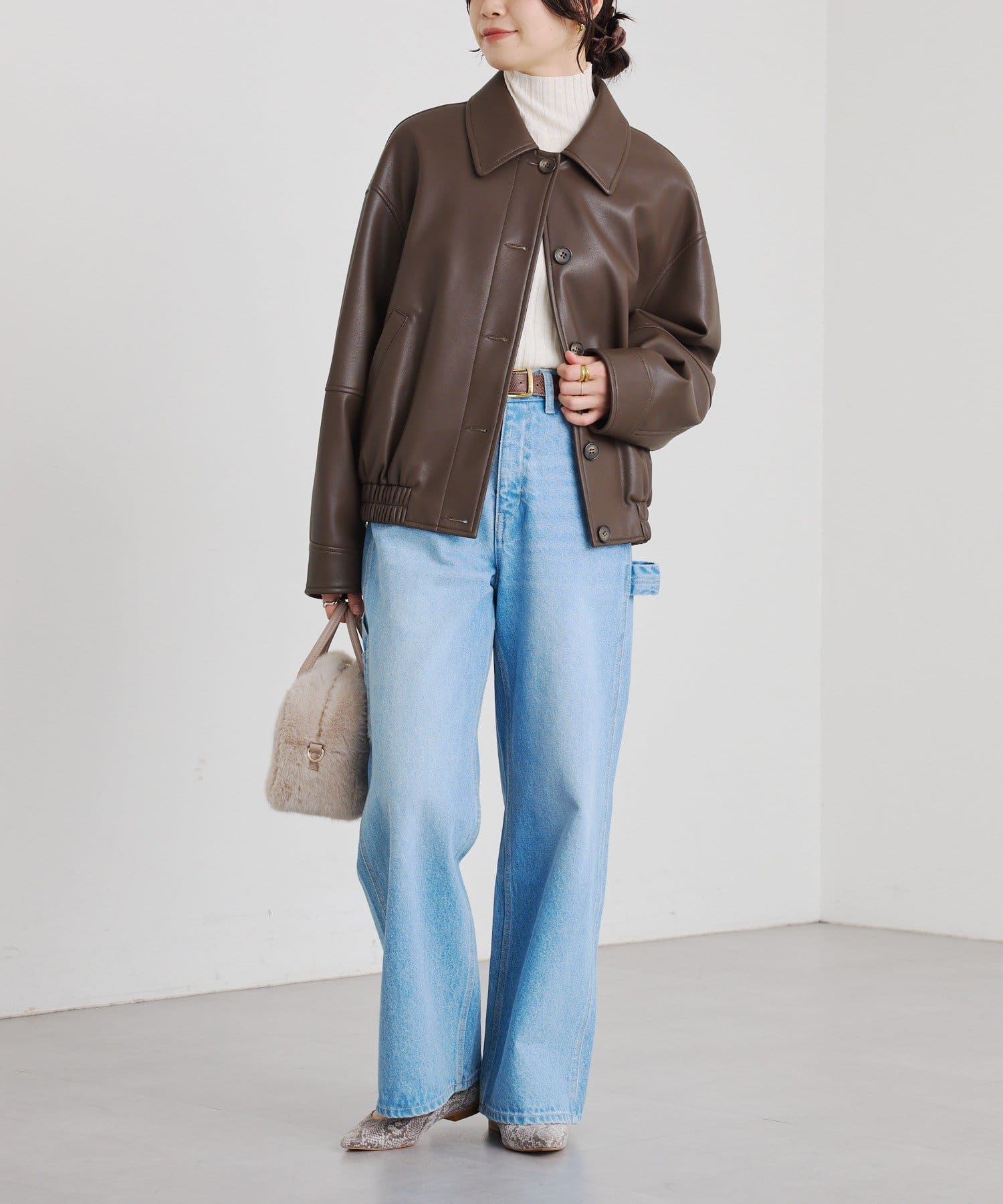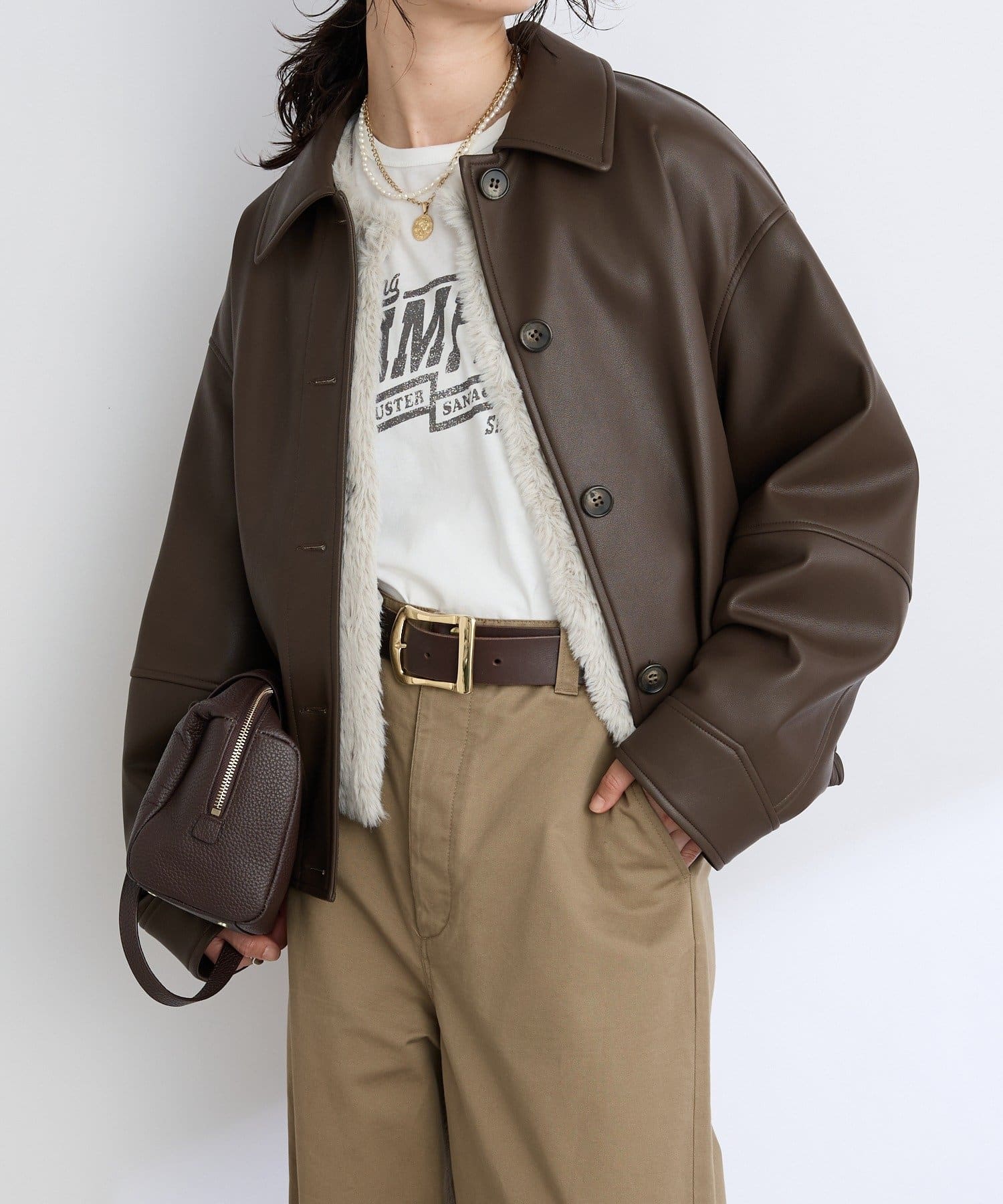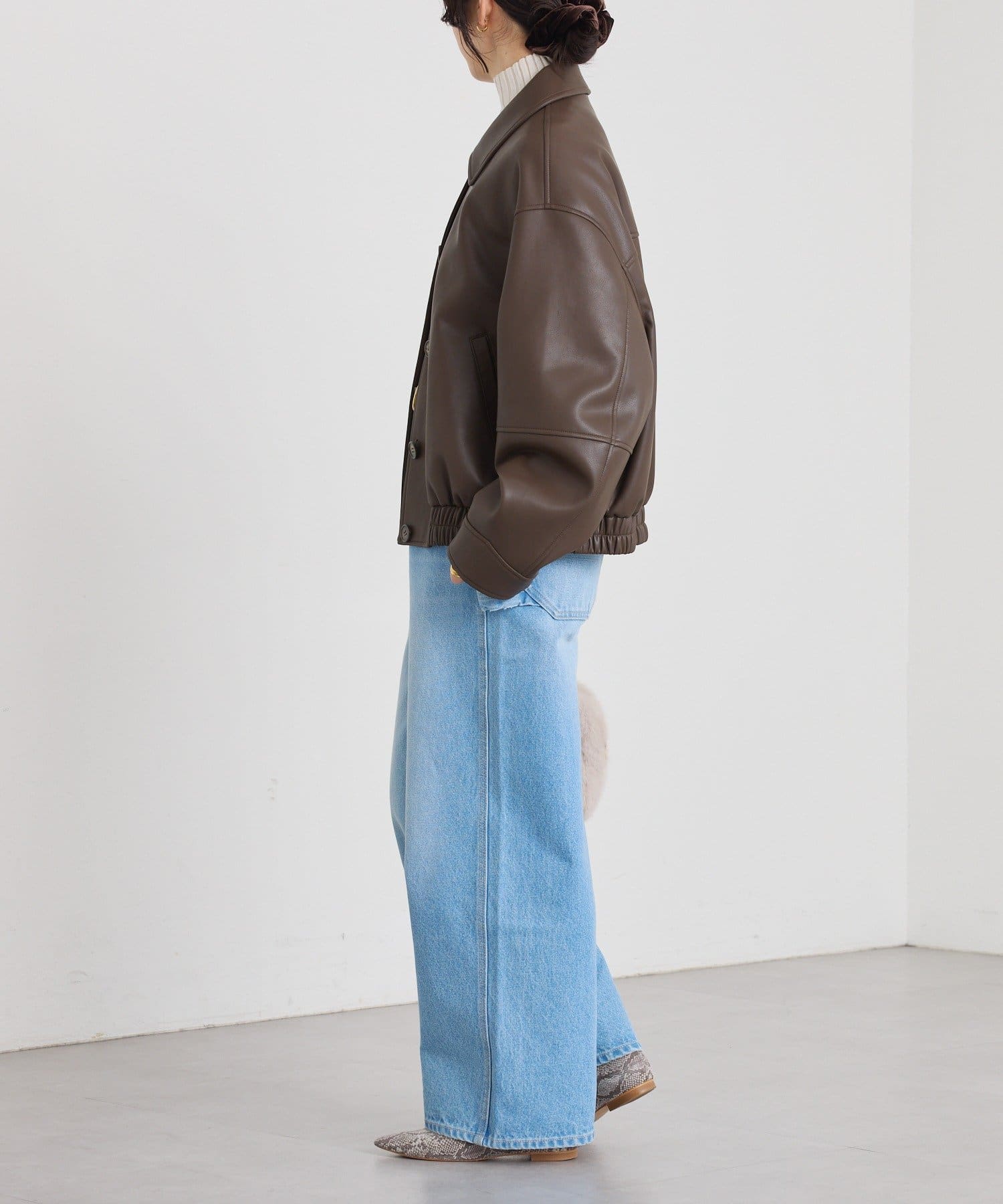 柔らかな質感の合皮素材でゆったり着やすいブルゾン。