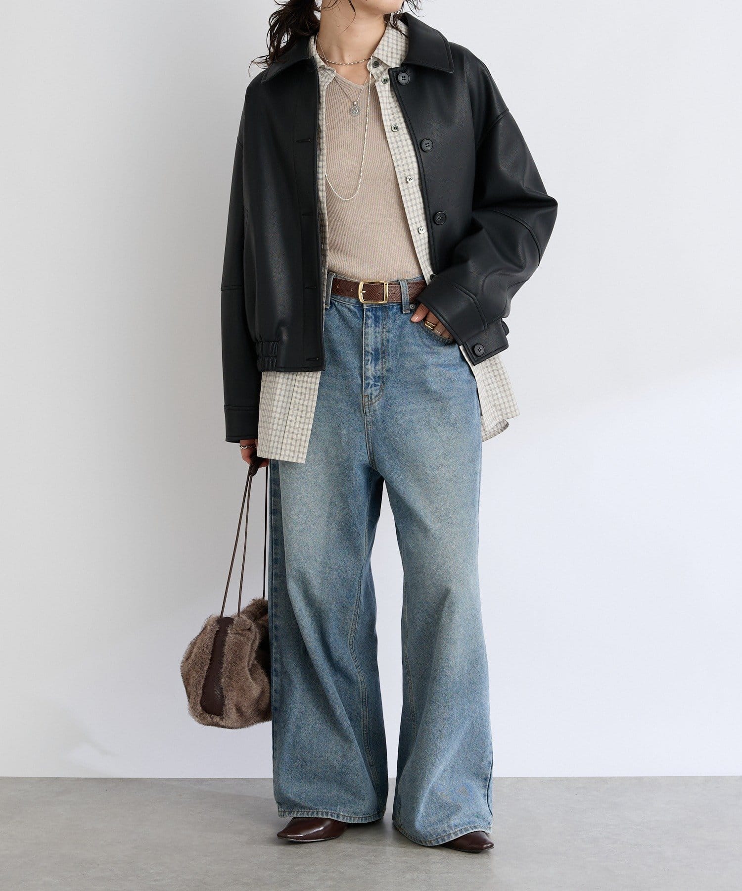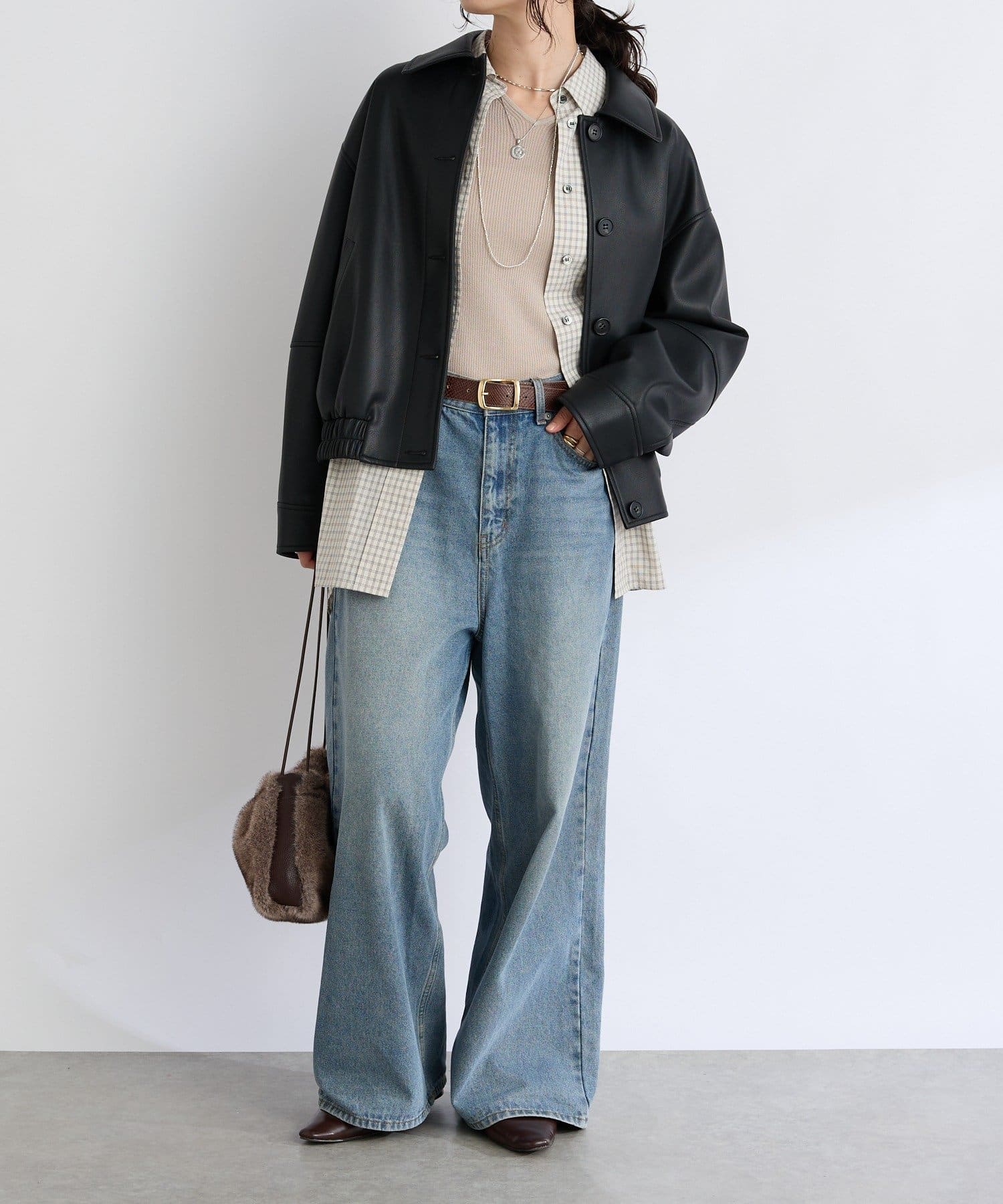 リアルレザーよりも気兼ねなく着用しやすいアイテムです。