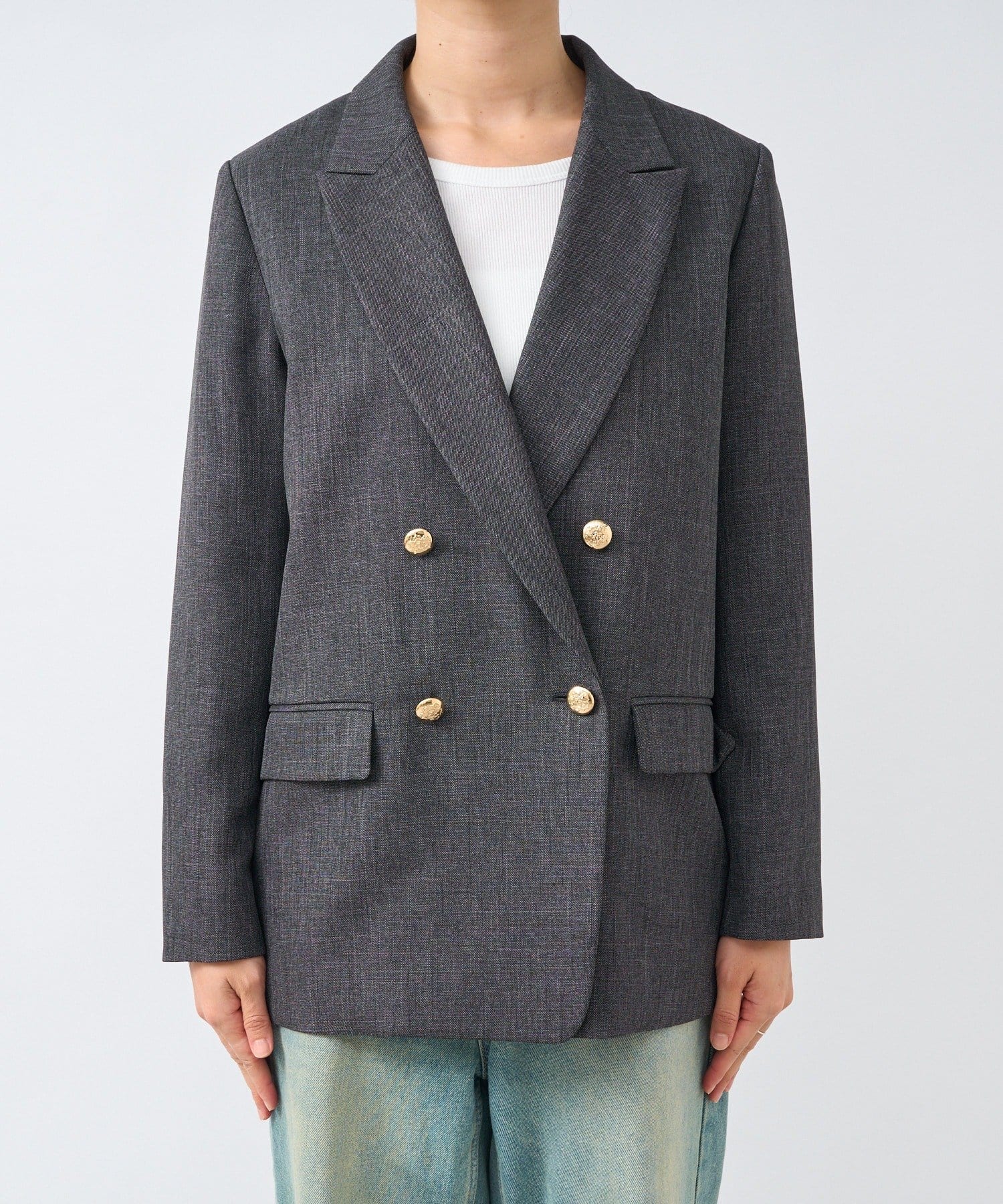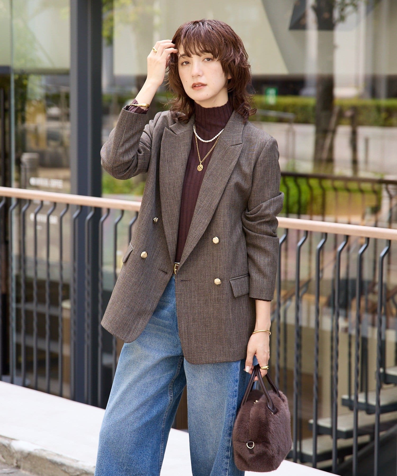• 存在感のあるピークドラペルと真鍮風メタルボタン付き