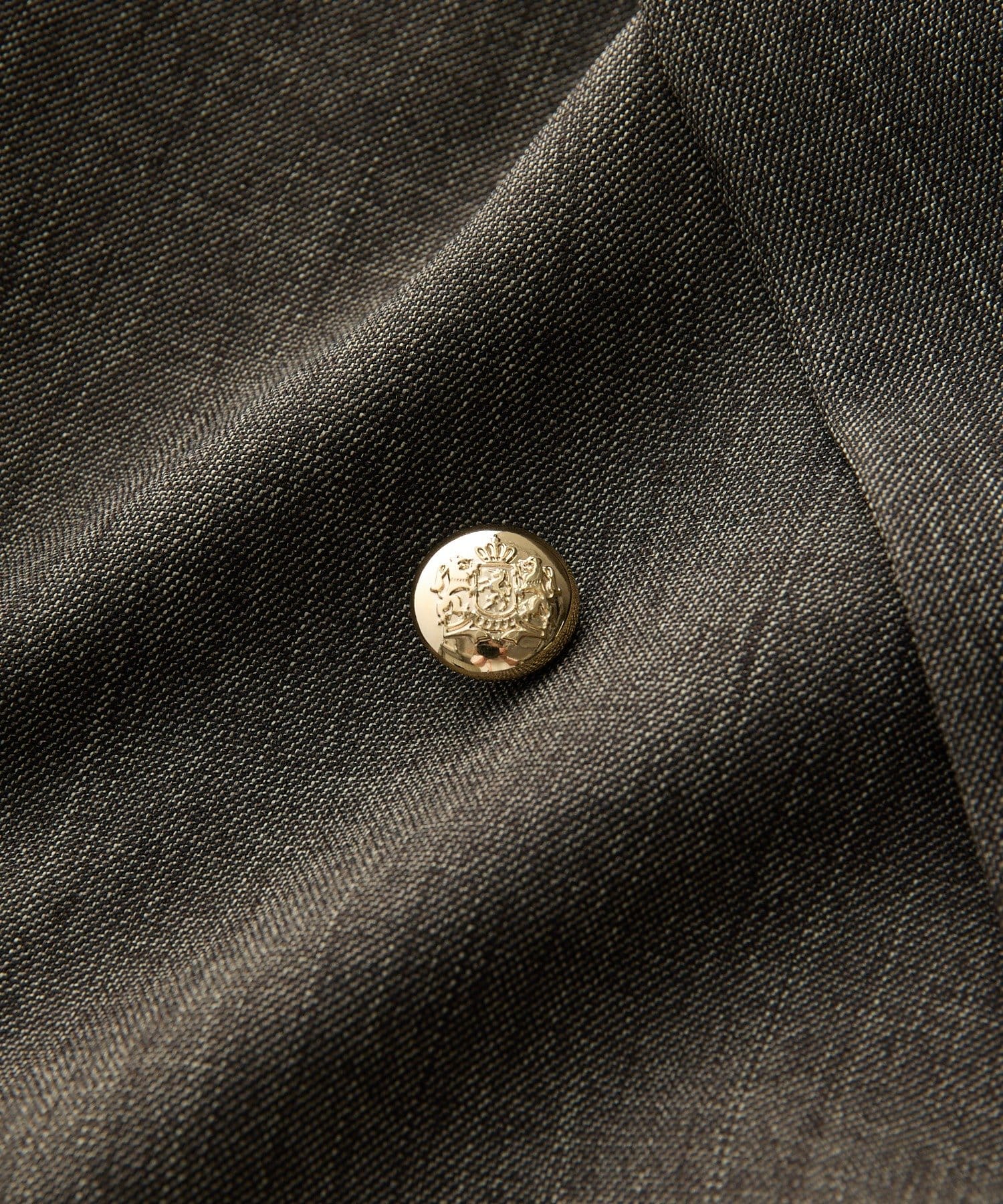 ・存在感のあるピークドラペルと真鍮風メタルボタン付きで品格を感じる仕上がり。