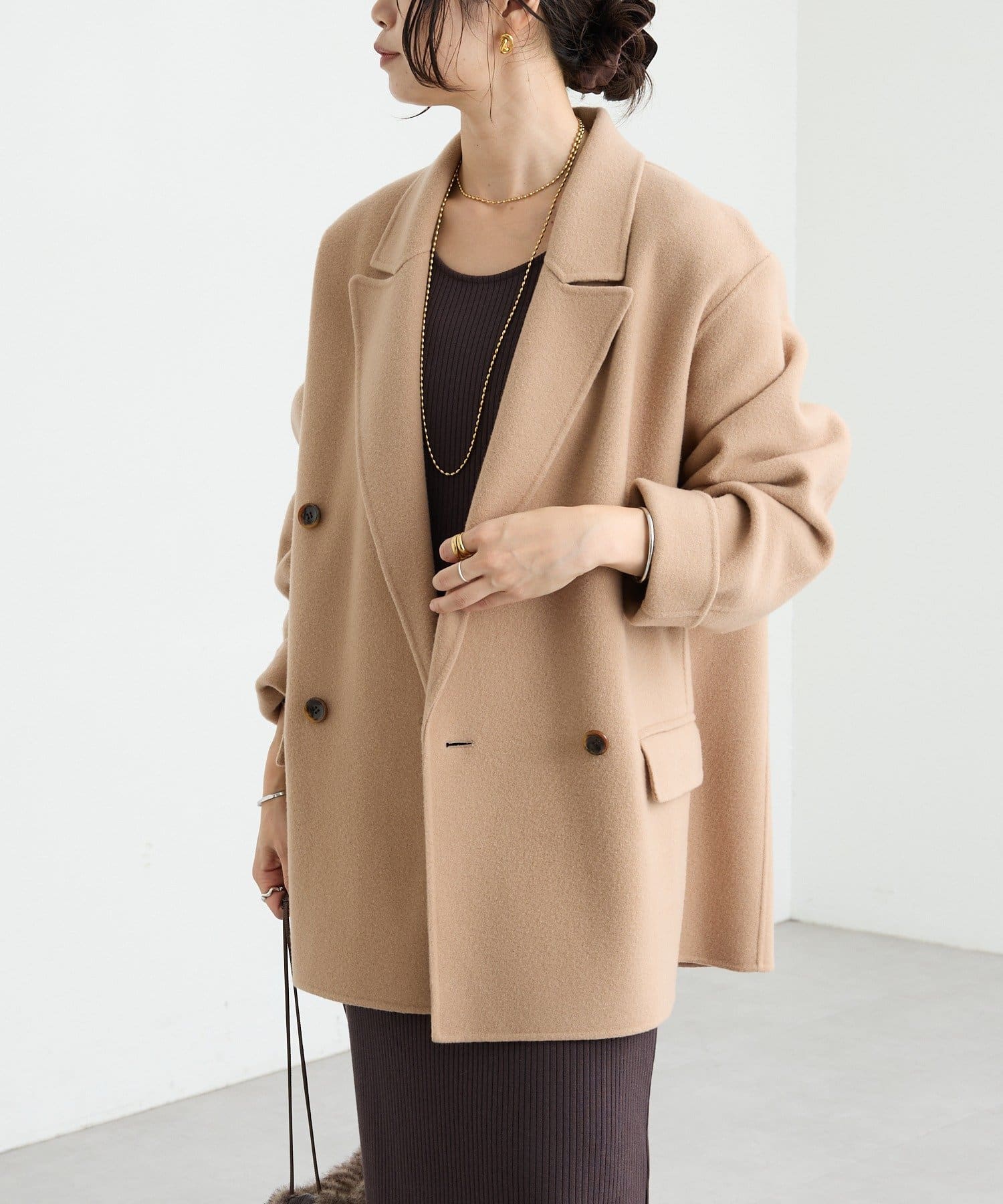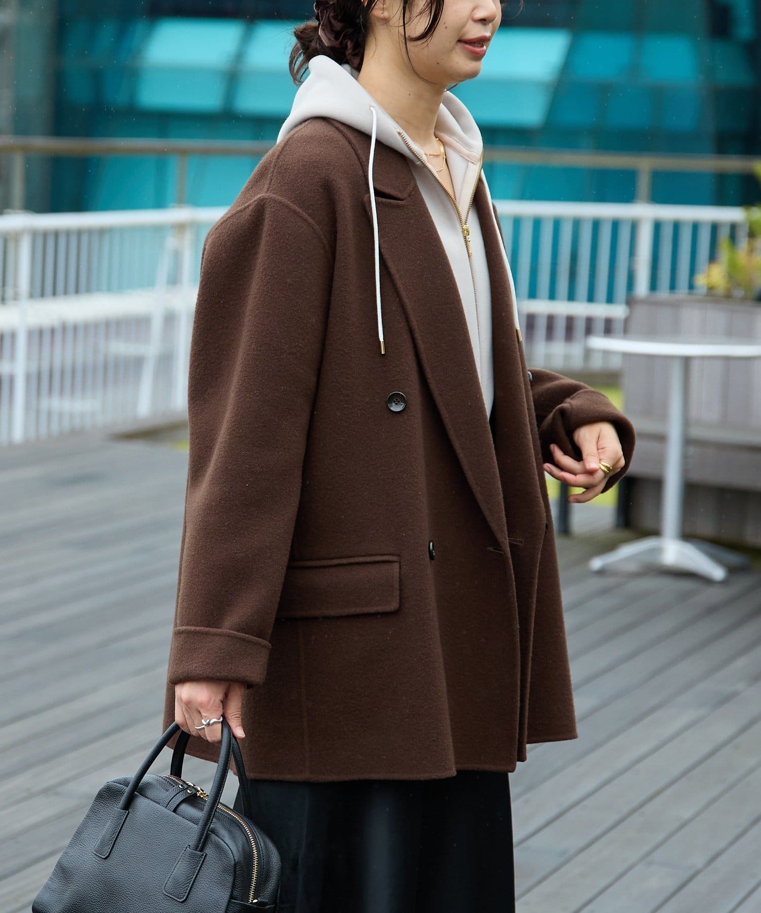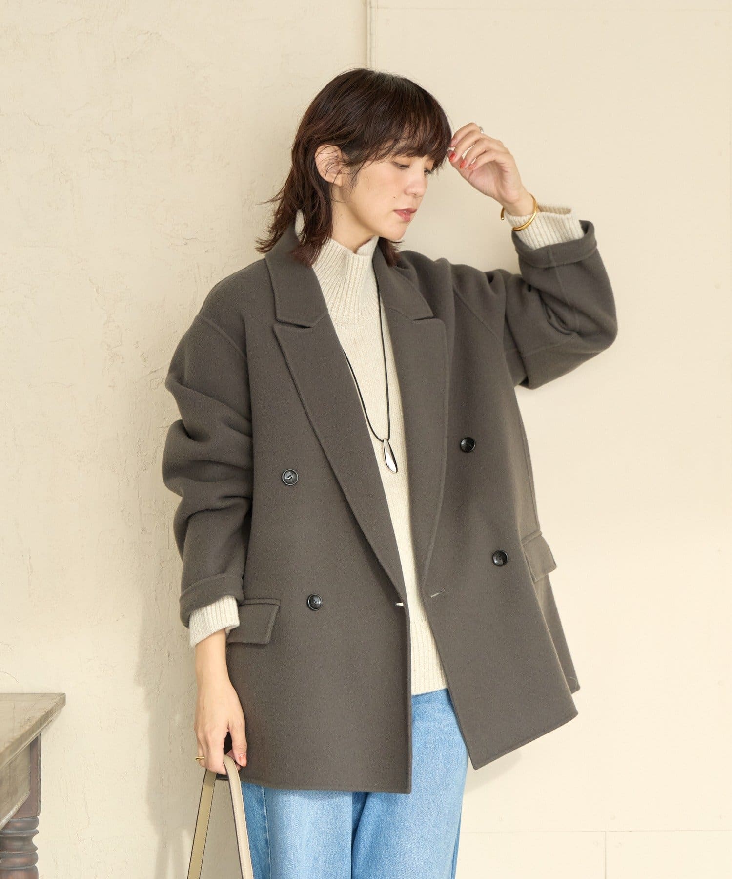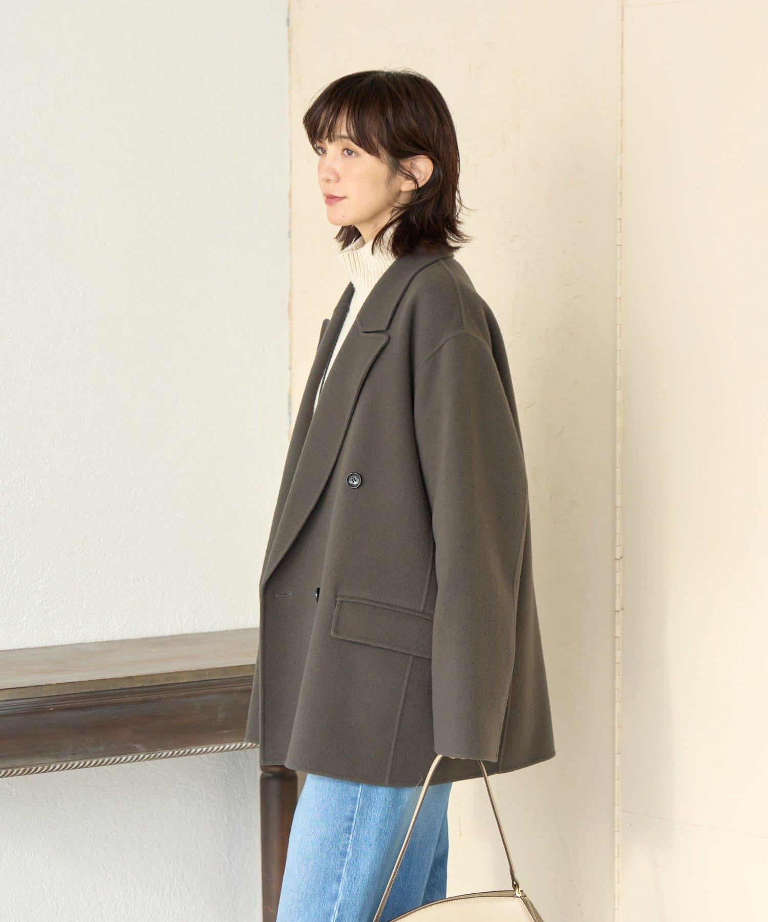 ・ピークドラペルや抜け感のあるダブルの仕立てでポイントをつけて、羽織るだけで決まるようにお作りしました