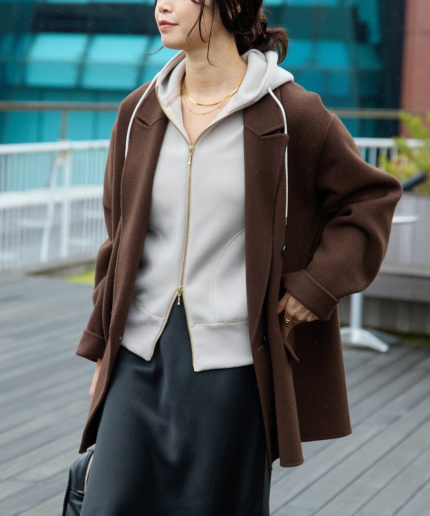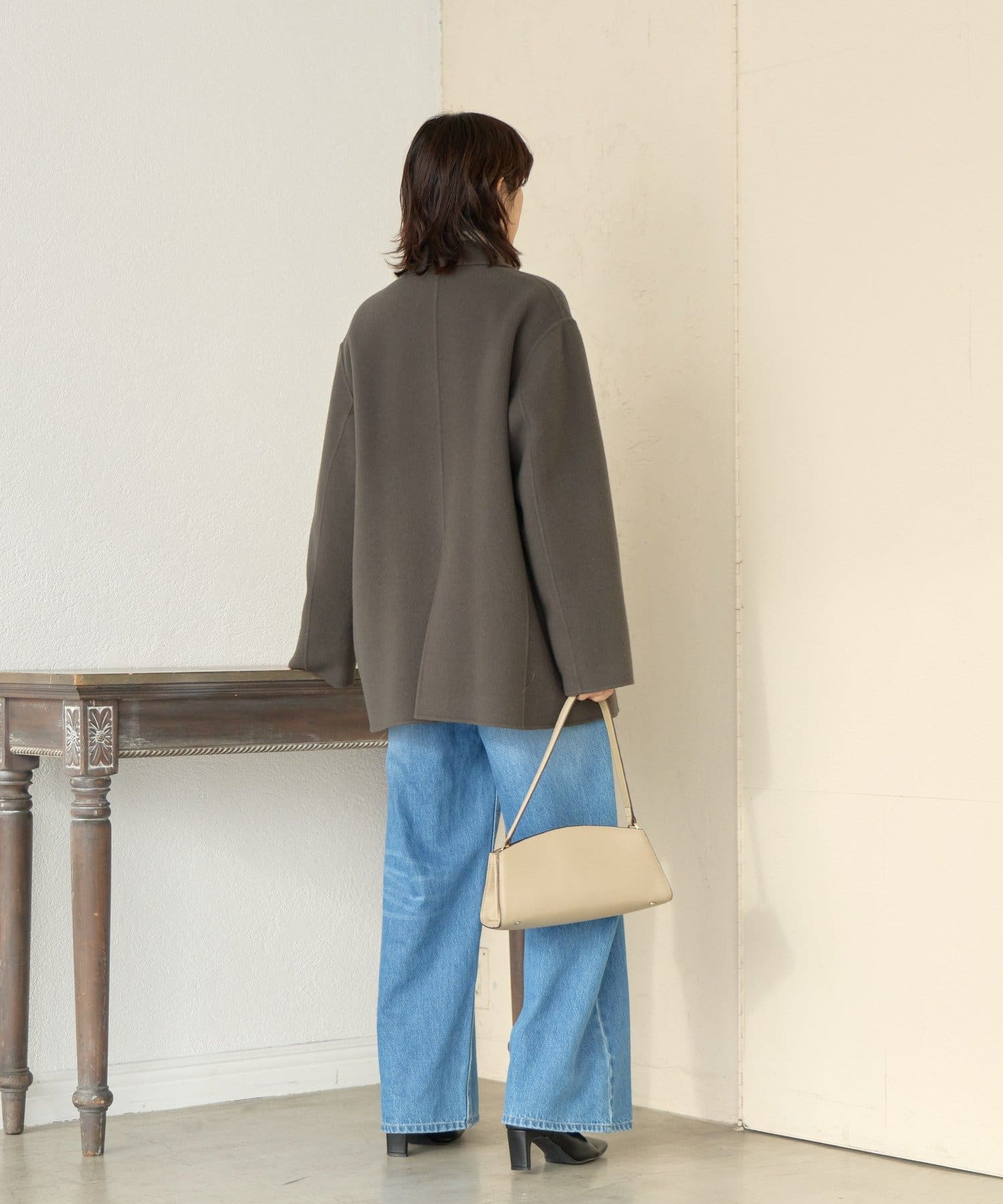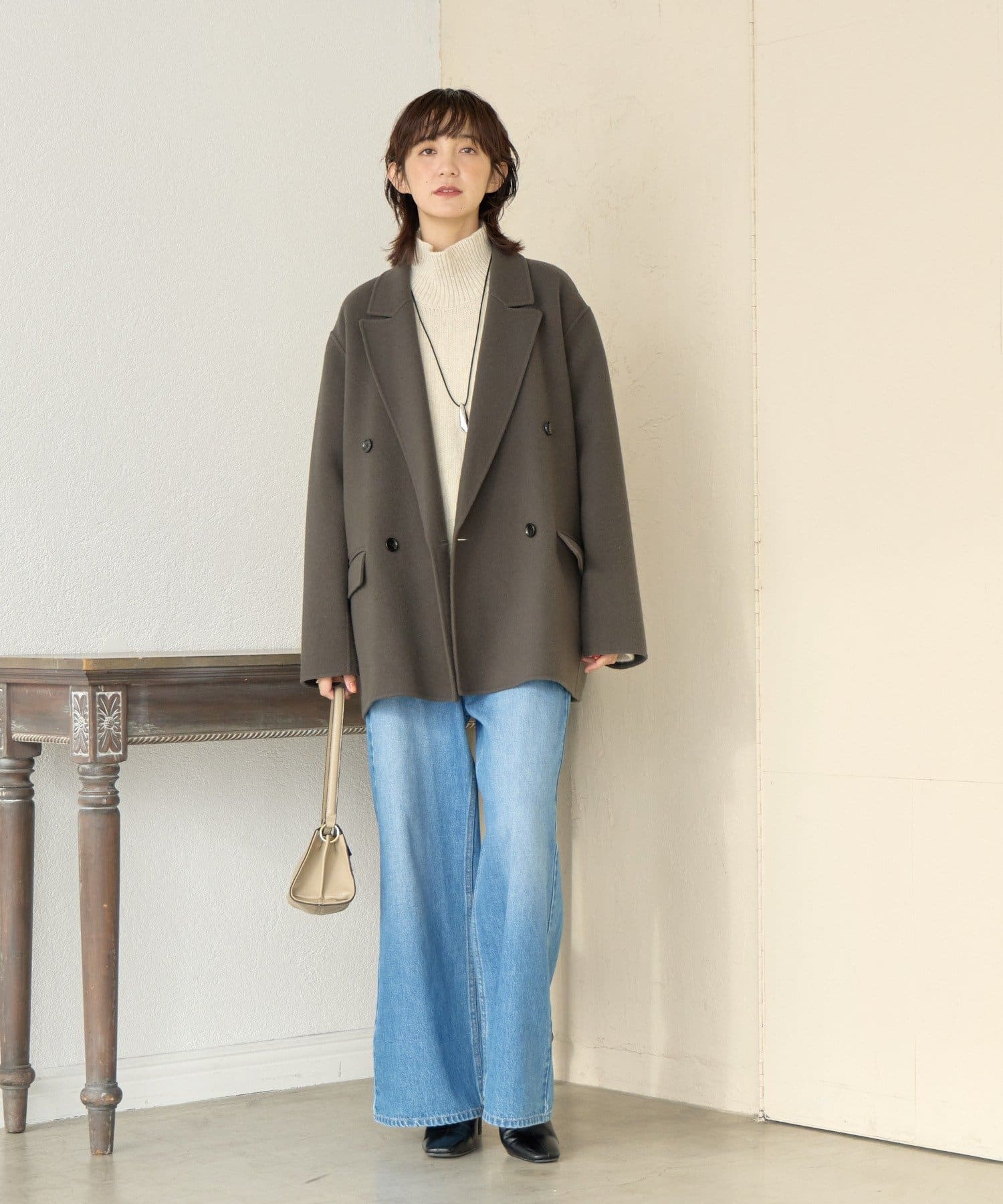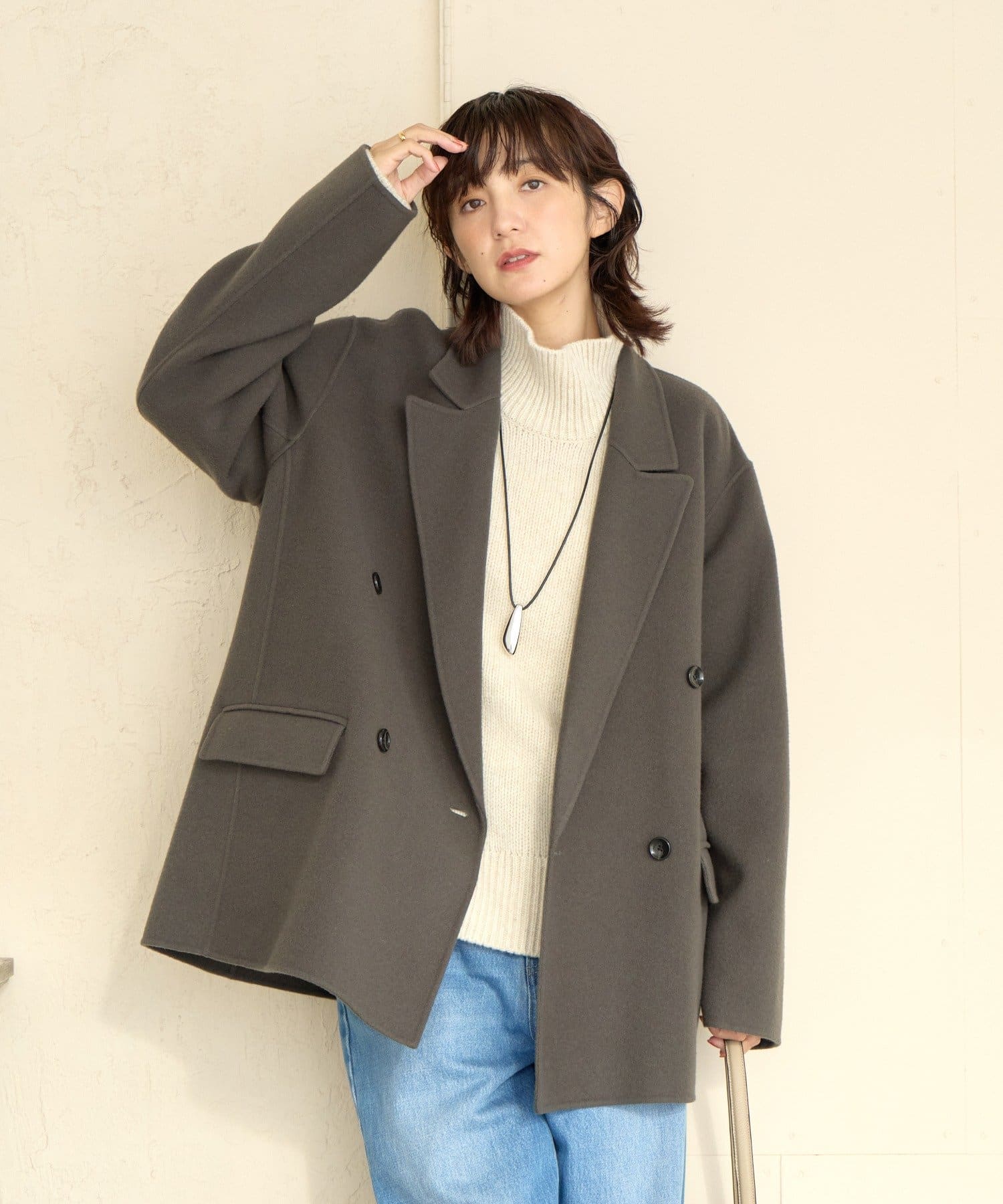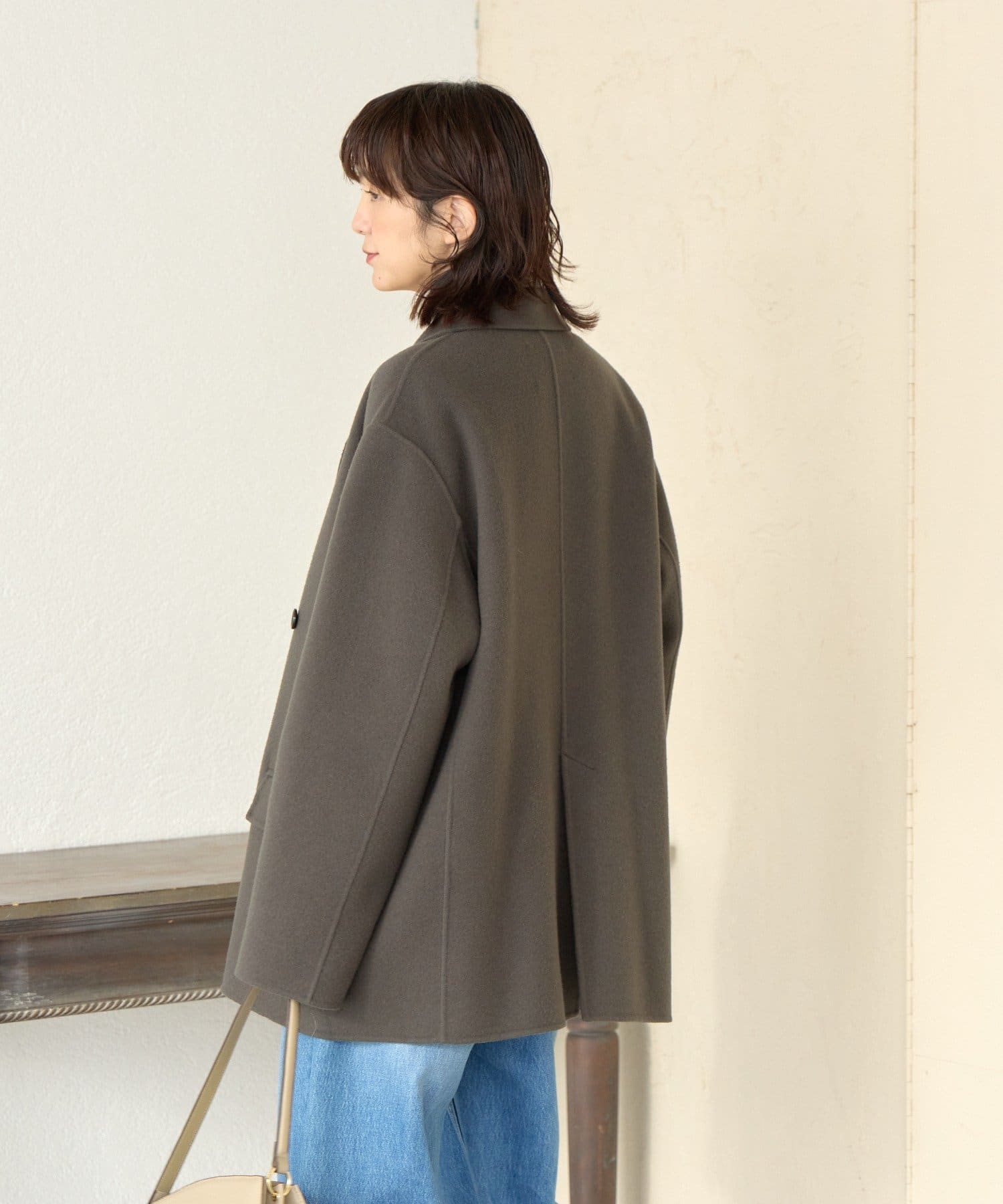 ・ピークドラペルや抜け感のあるダブルの仕立てでポイントをつけて、羽織るだけで決まるようにお作りしました