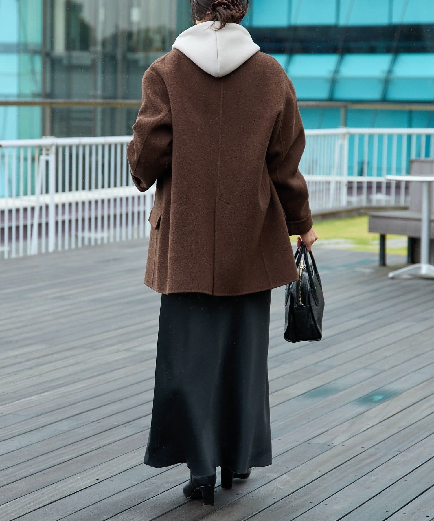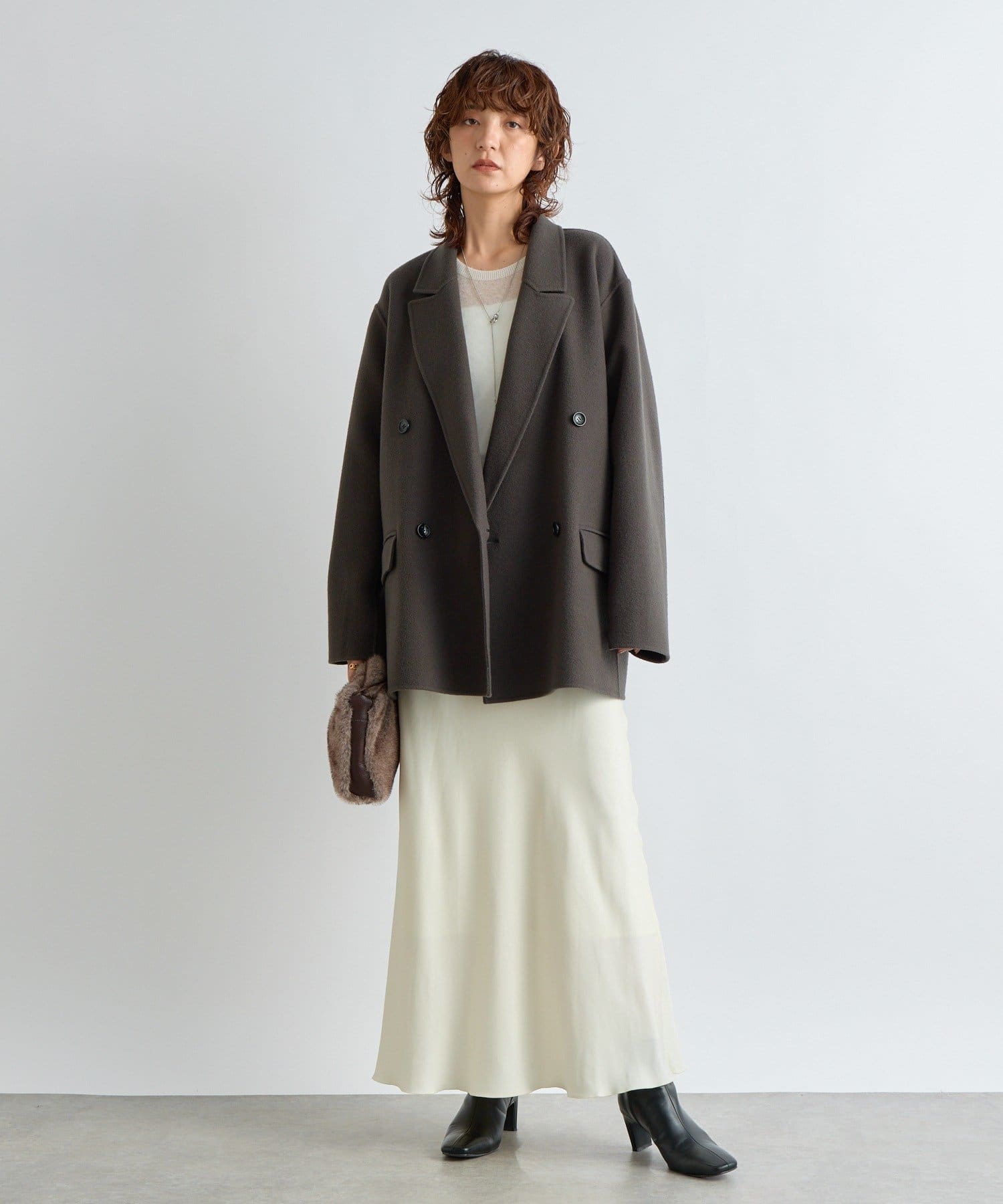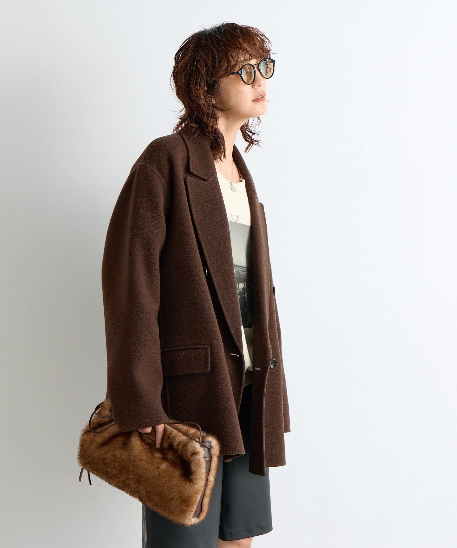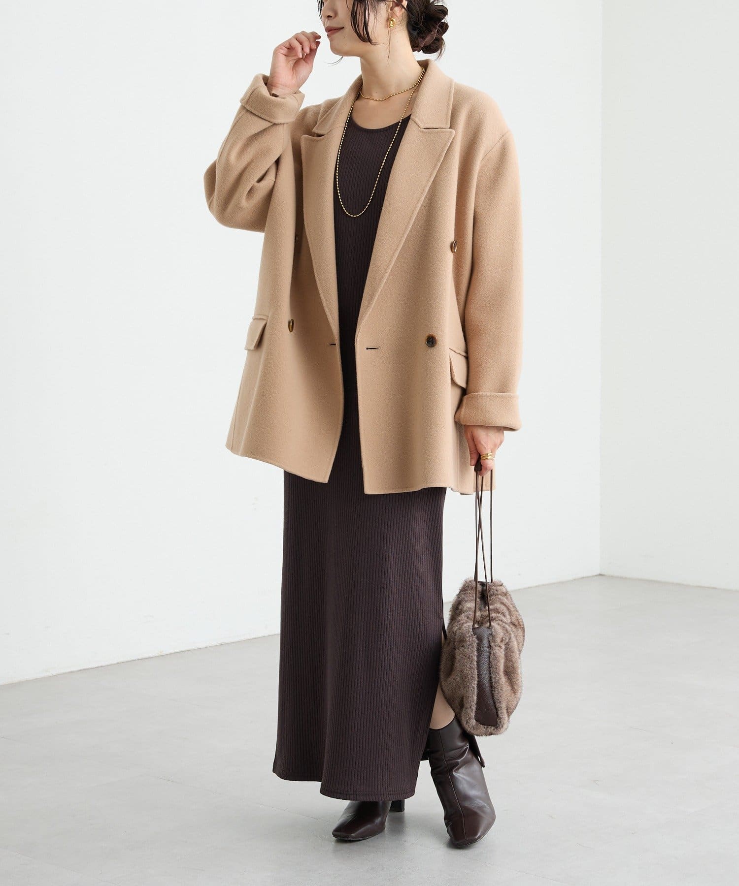 ・ピークドラペルや抜け感のあるダブルの仕立てでポイントをつけて、羽織るだけで決まるようにお作りしました