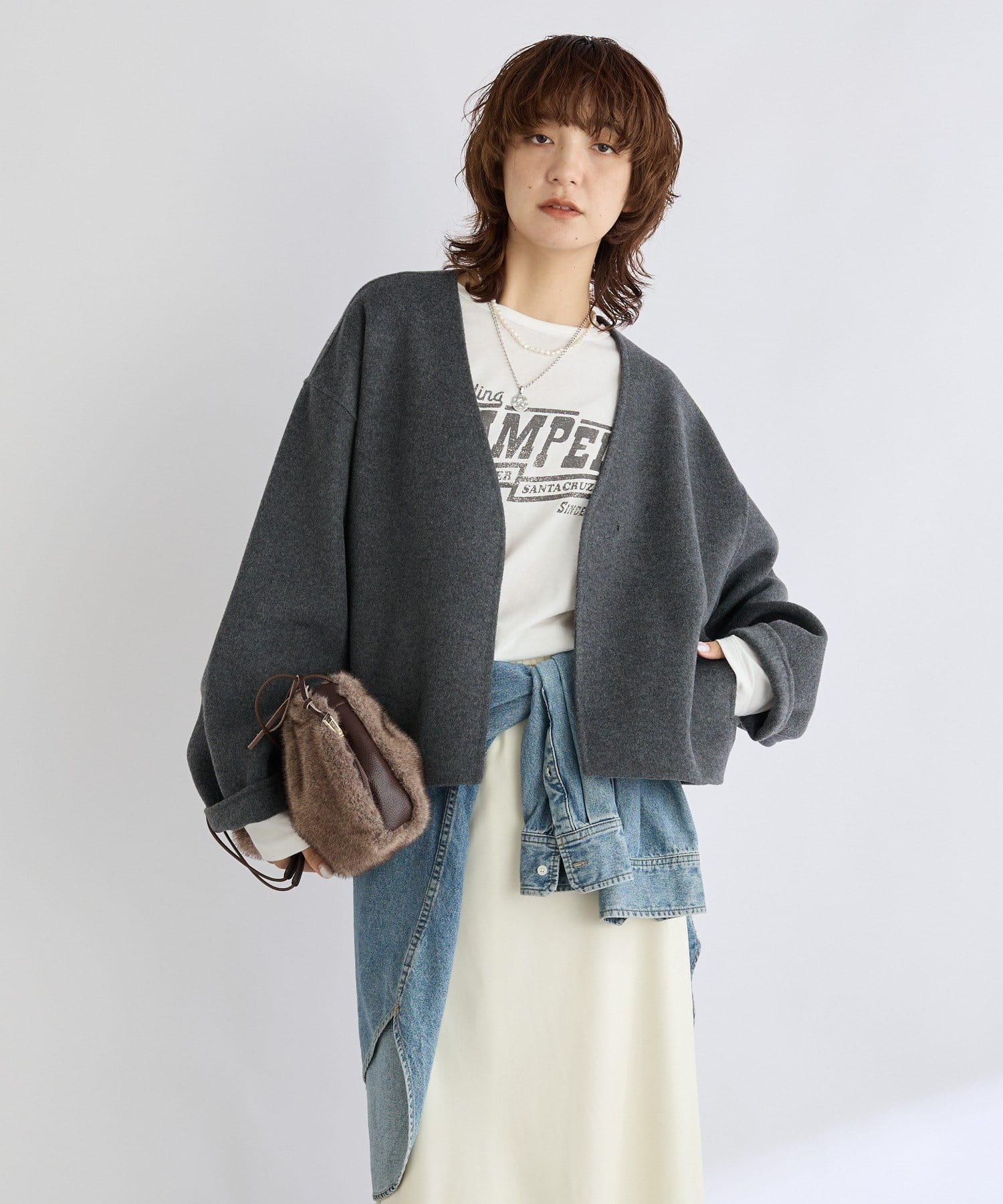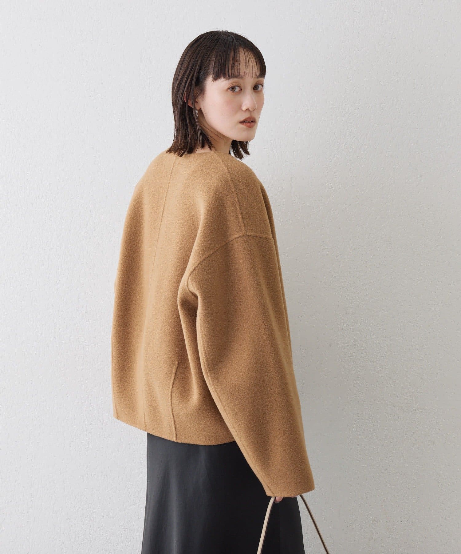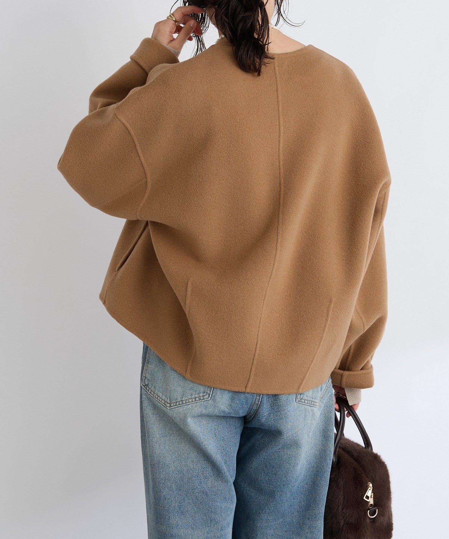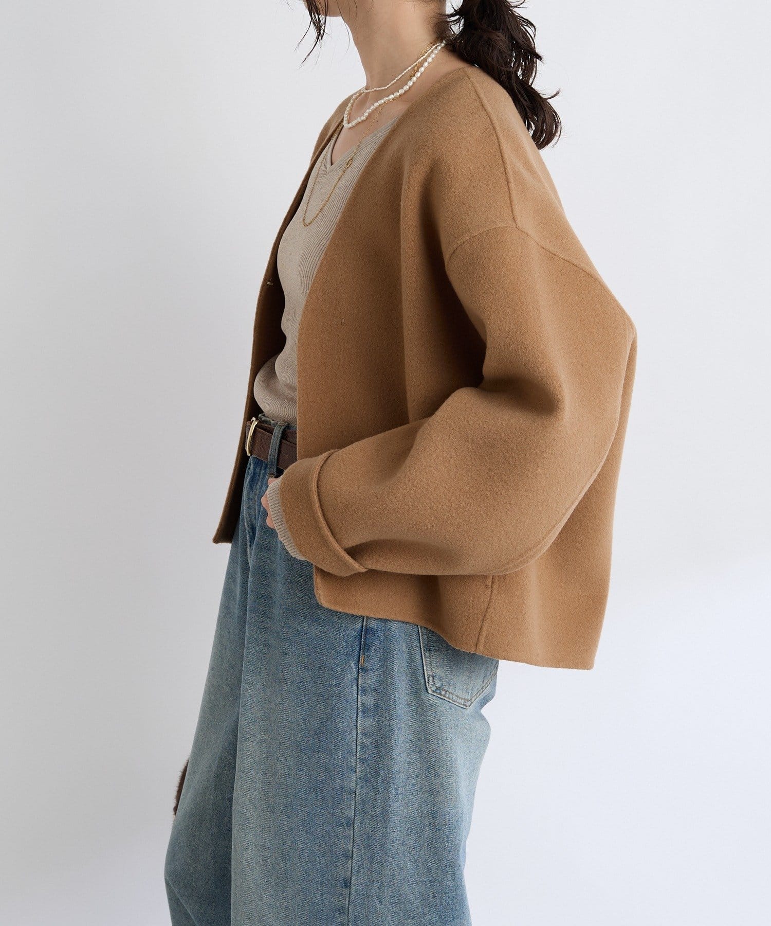 シンプルな飽きの来ないデザインだからこそ、スタイリングを選ばず、ワードローブのお供にぴったりのショートコート!