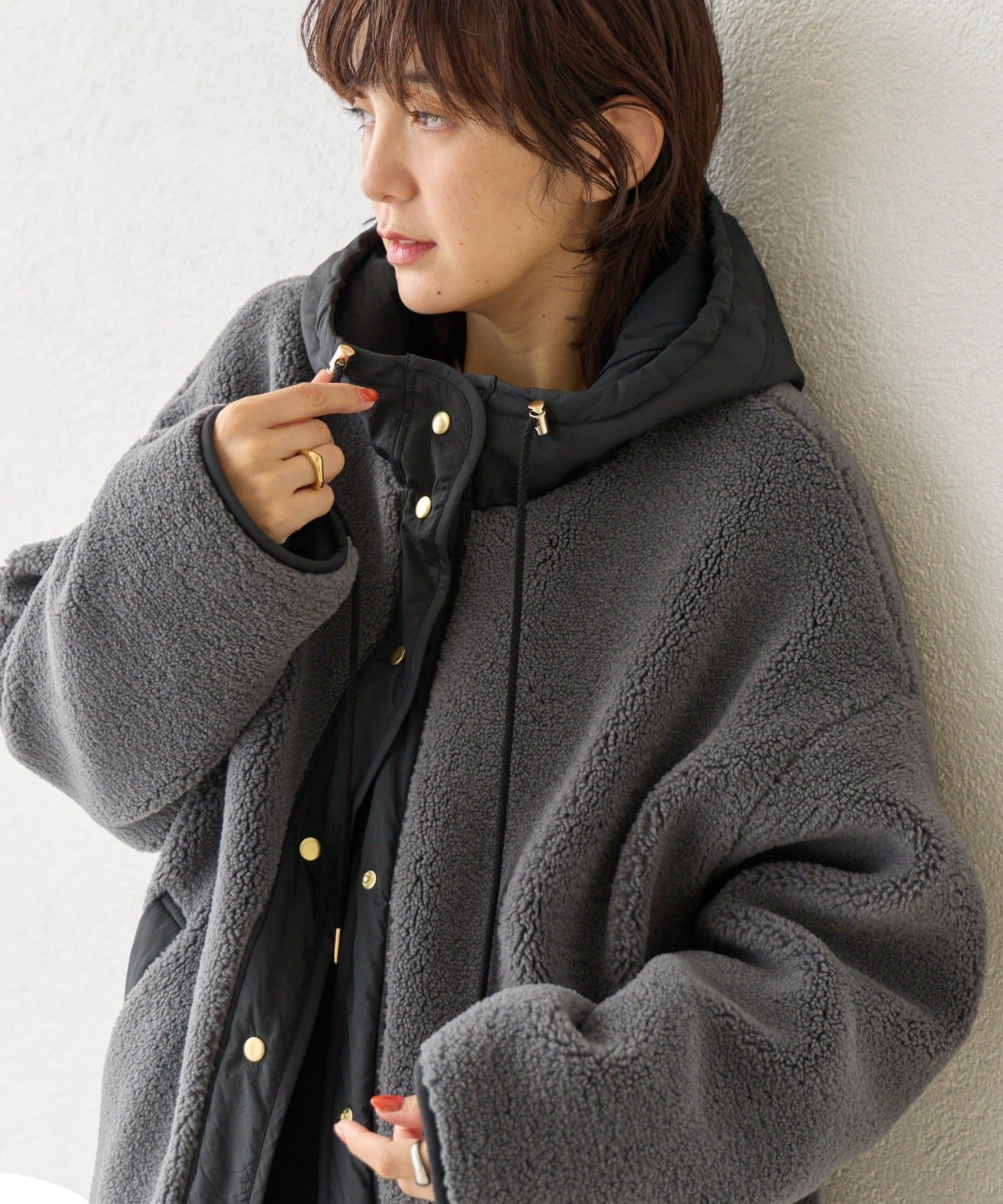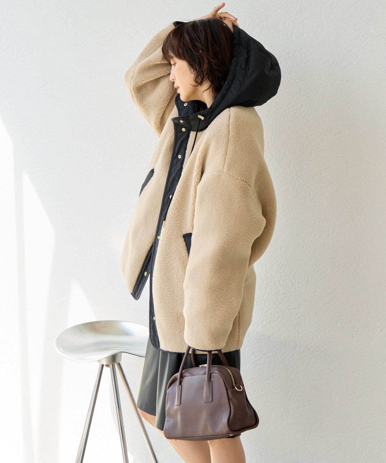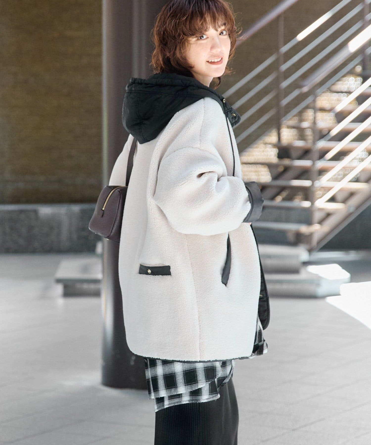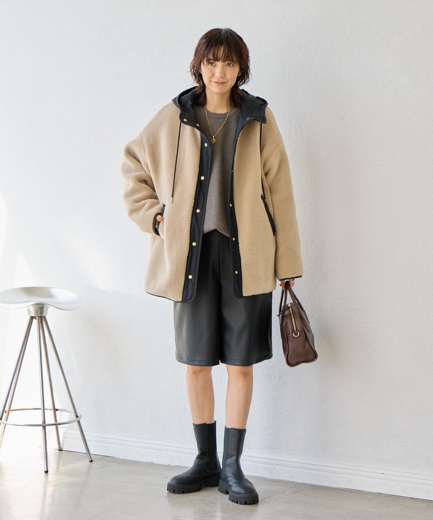 ・丸みのあるフォルムで羽織るだけで様になるボアコート。