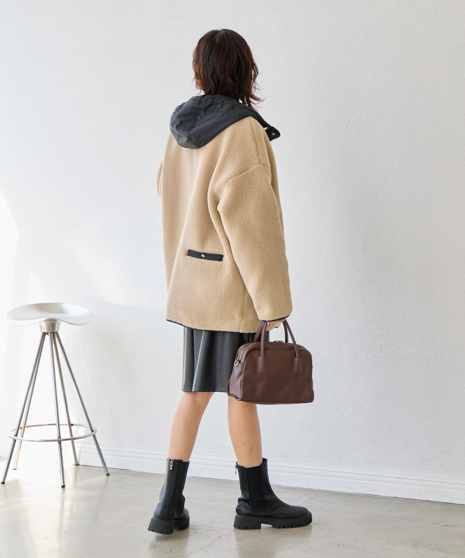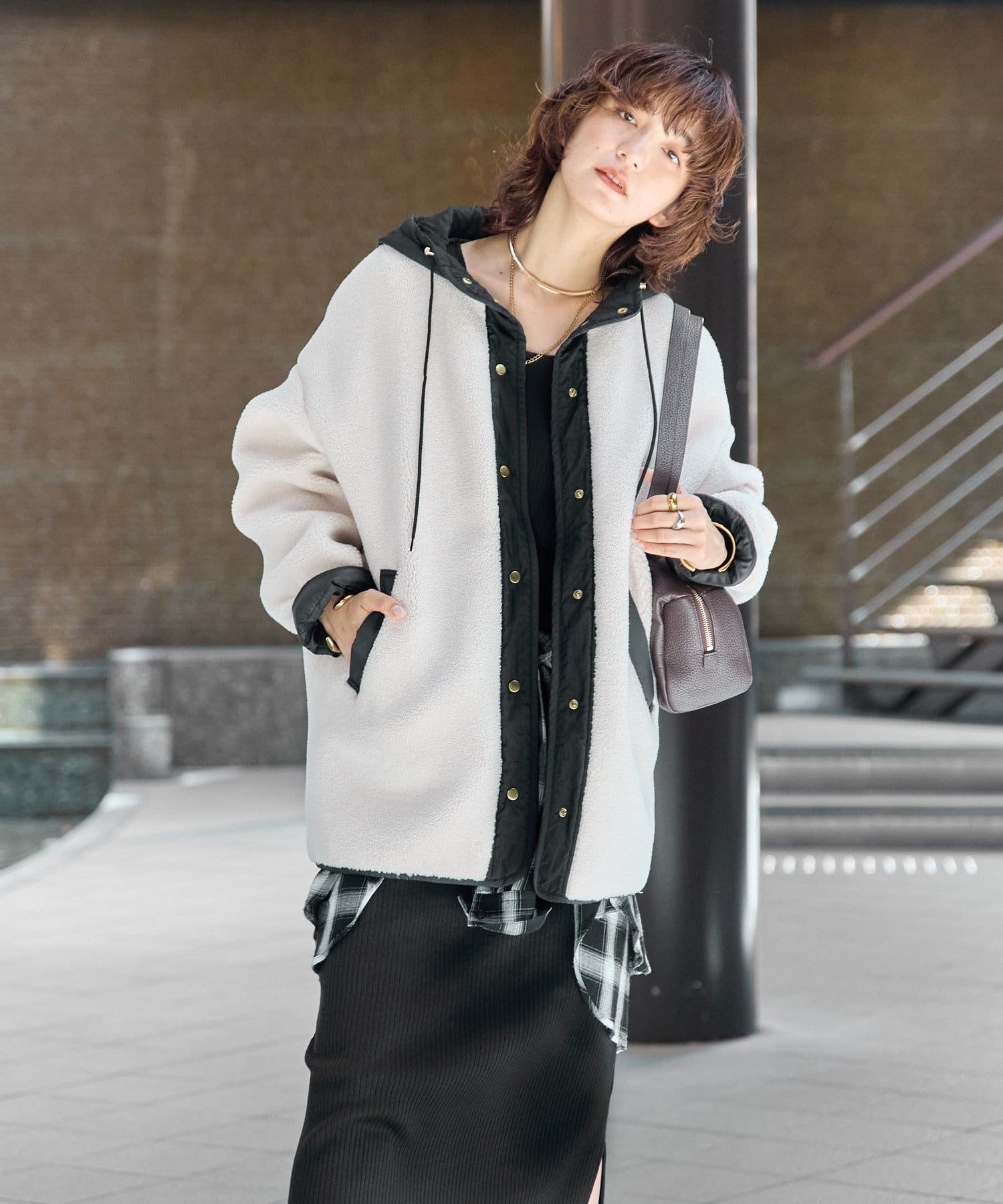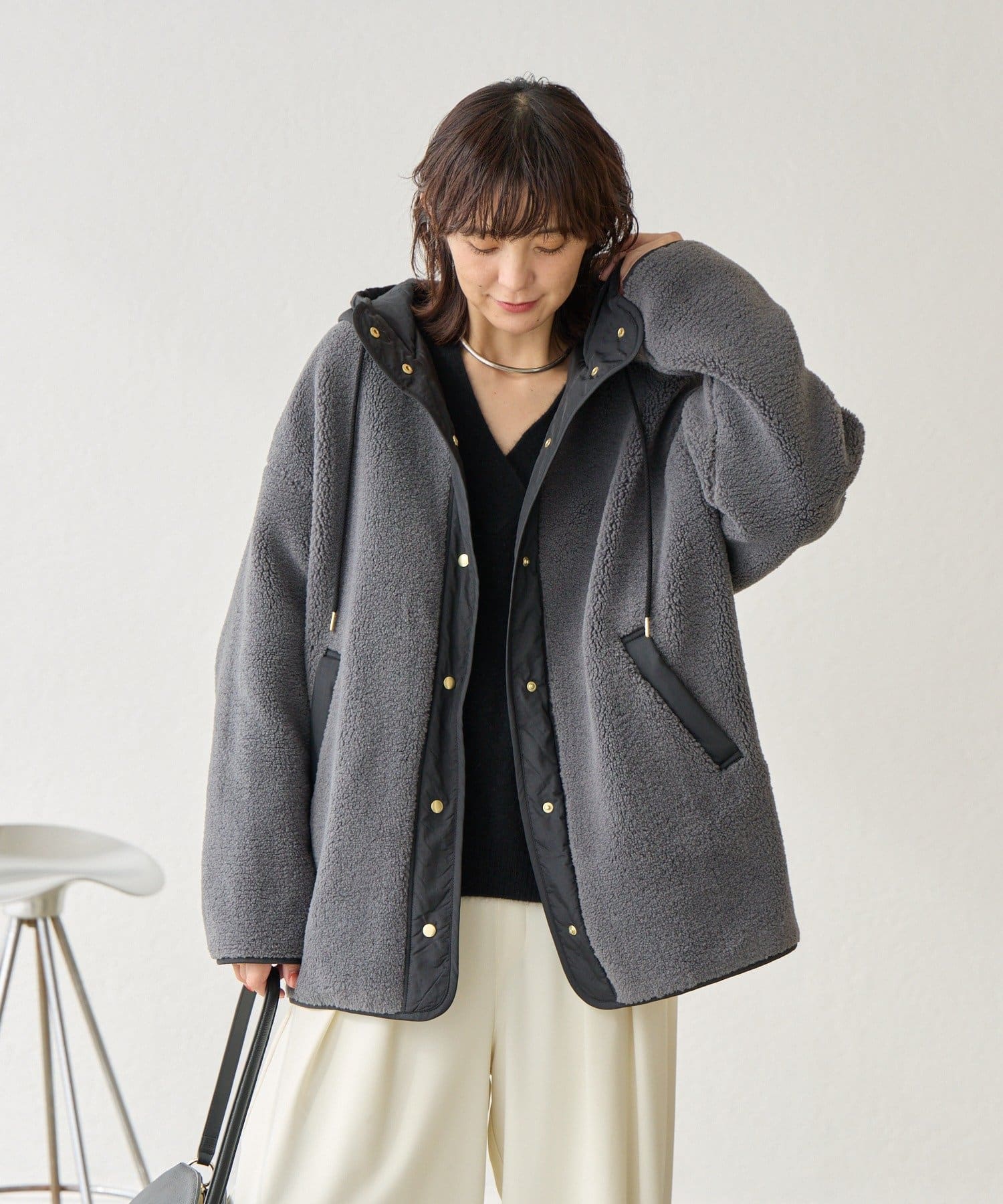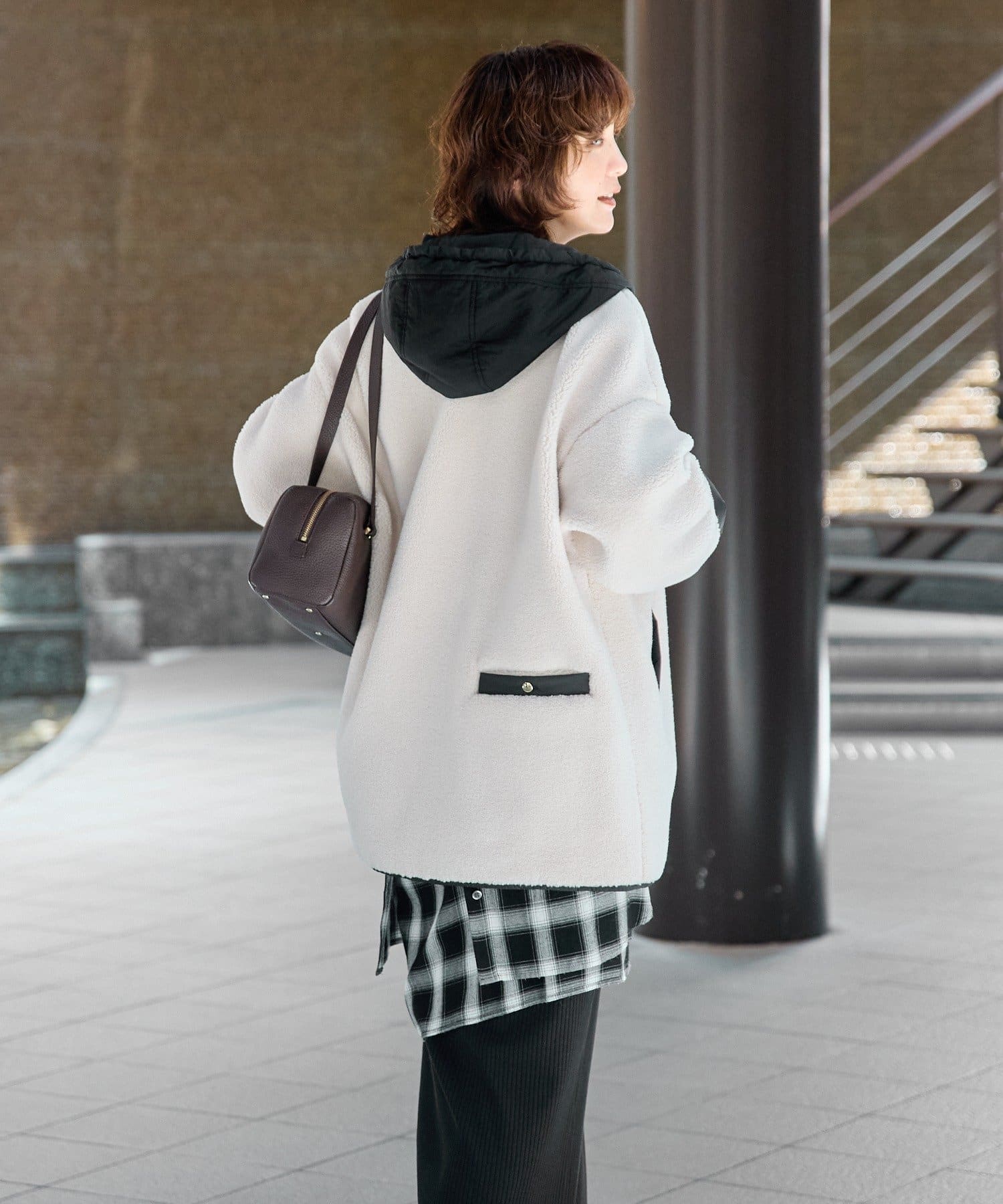・丸みのあるフォルムで羽織るだけで様になるボアコート。