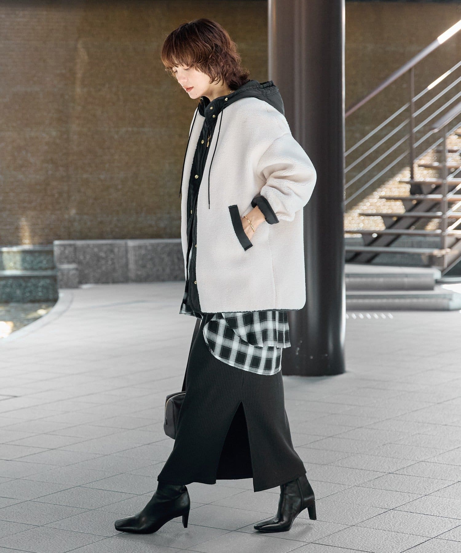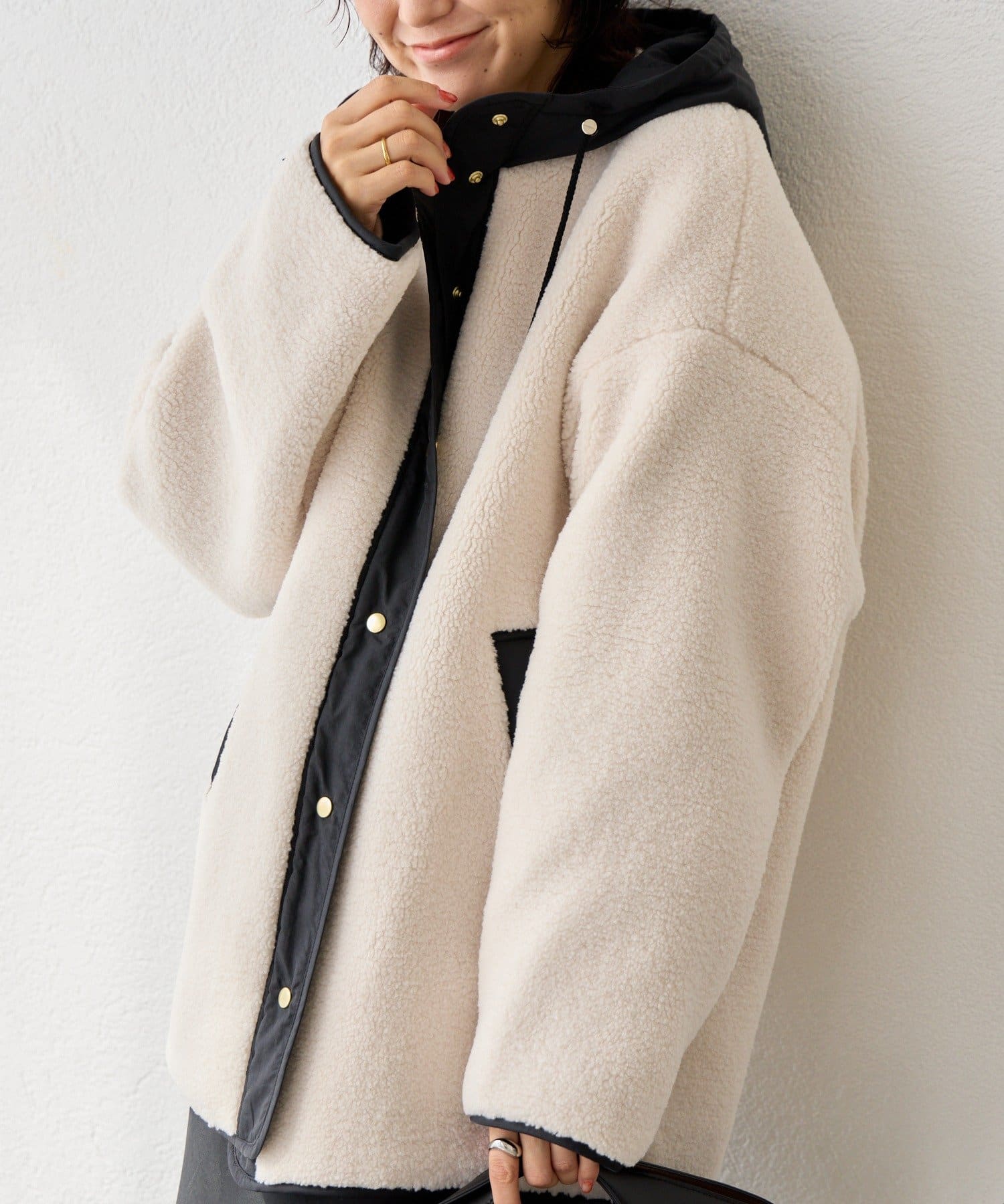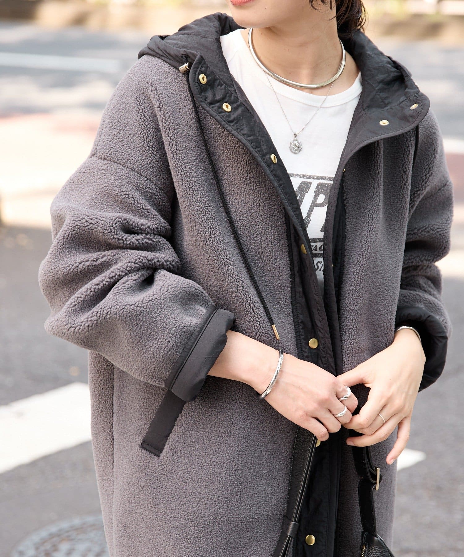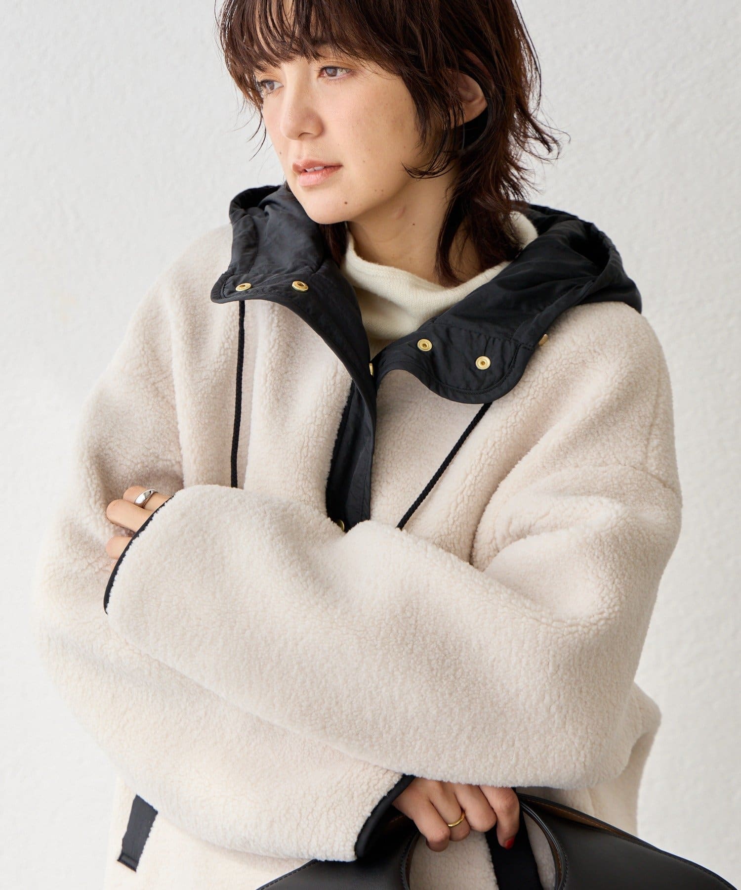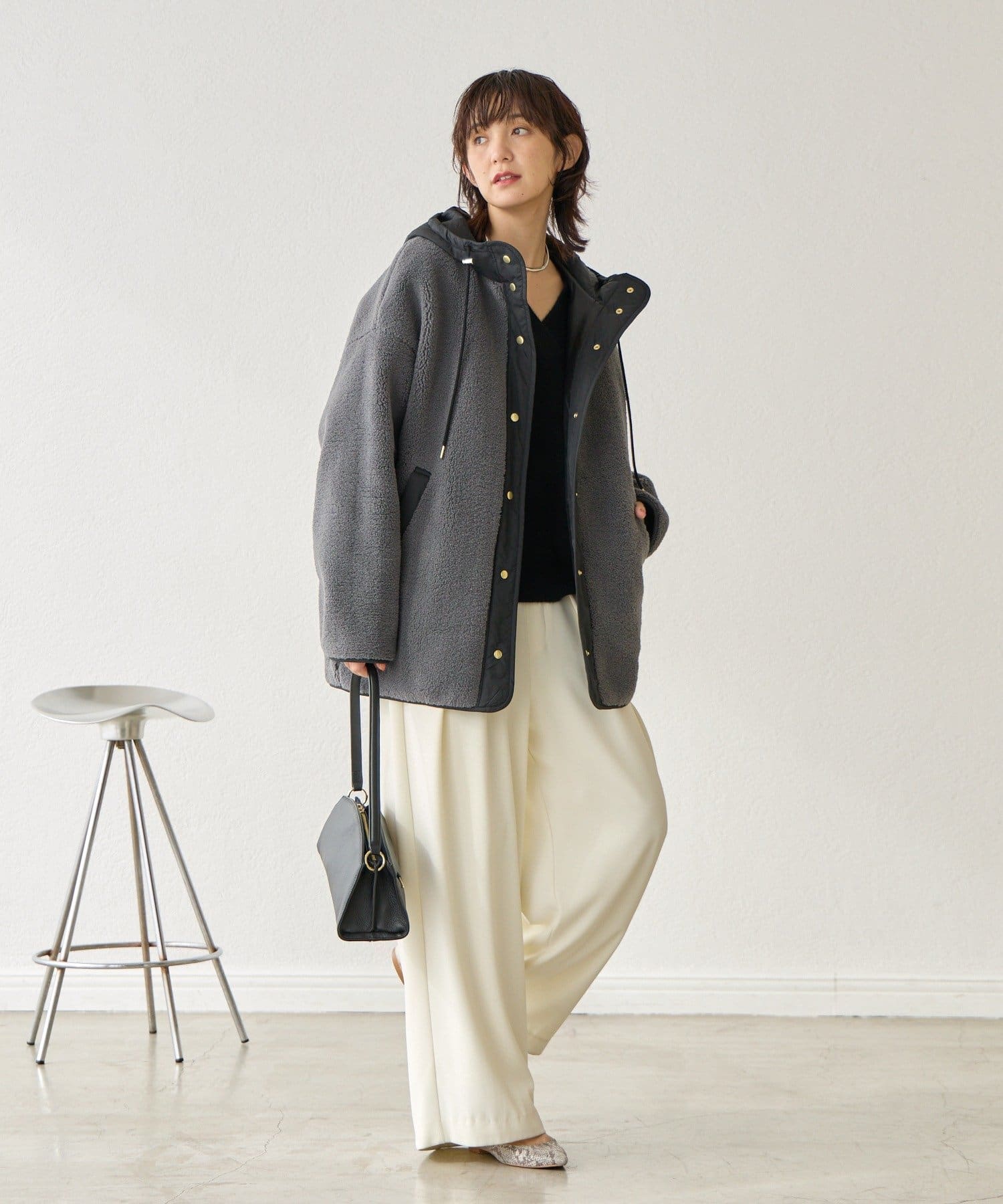 ・丸みのあるフォルムで羽織るだけで様になるボアコート。