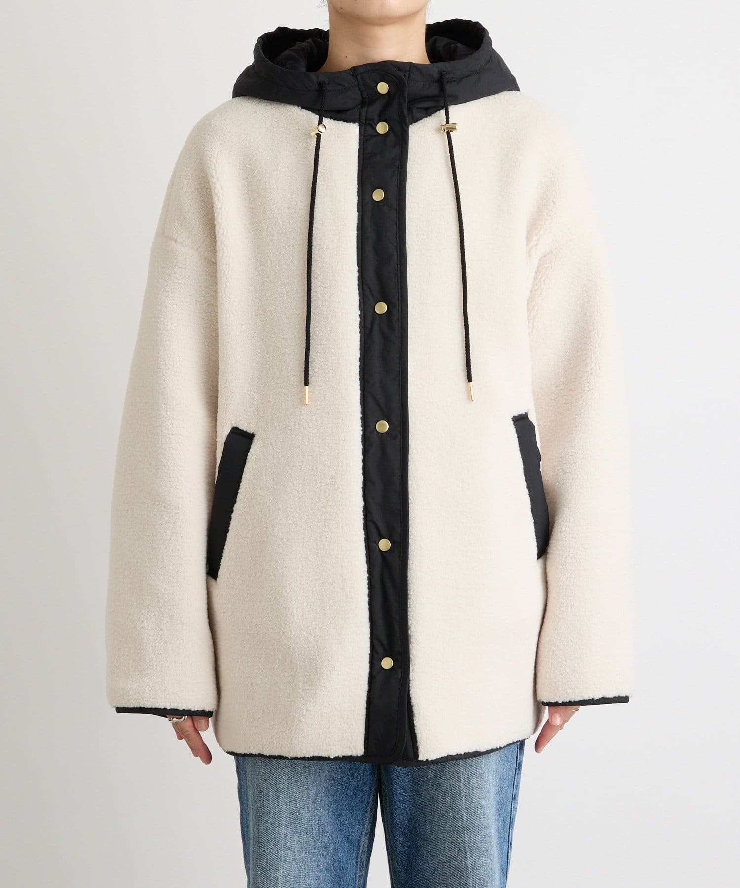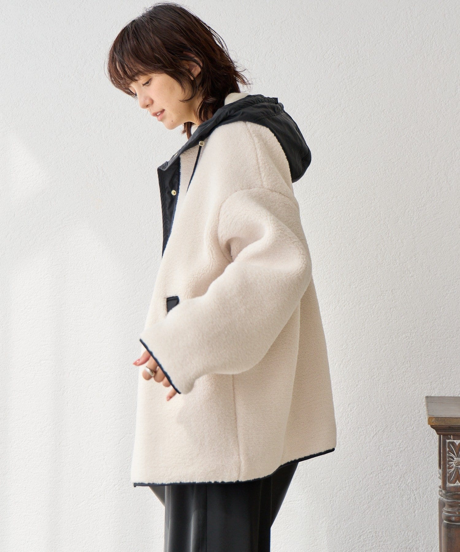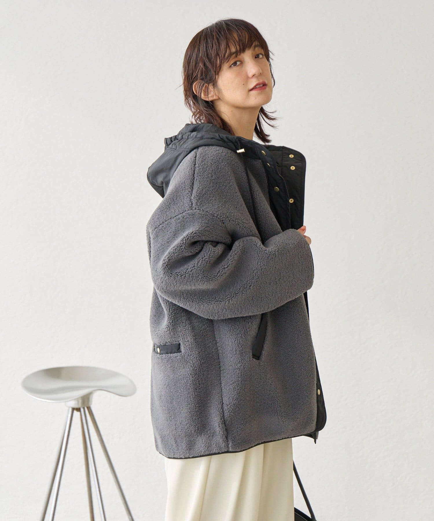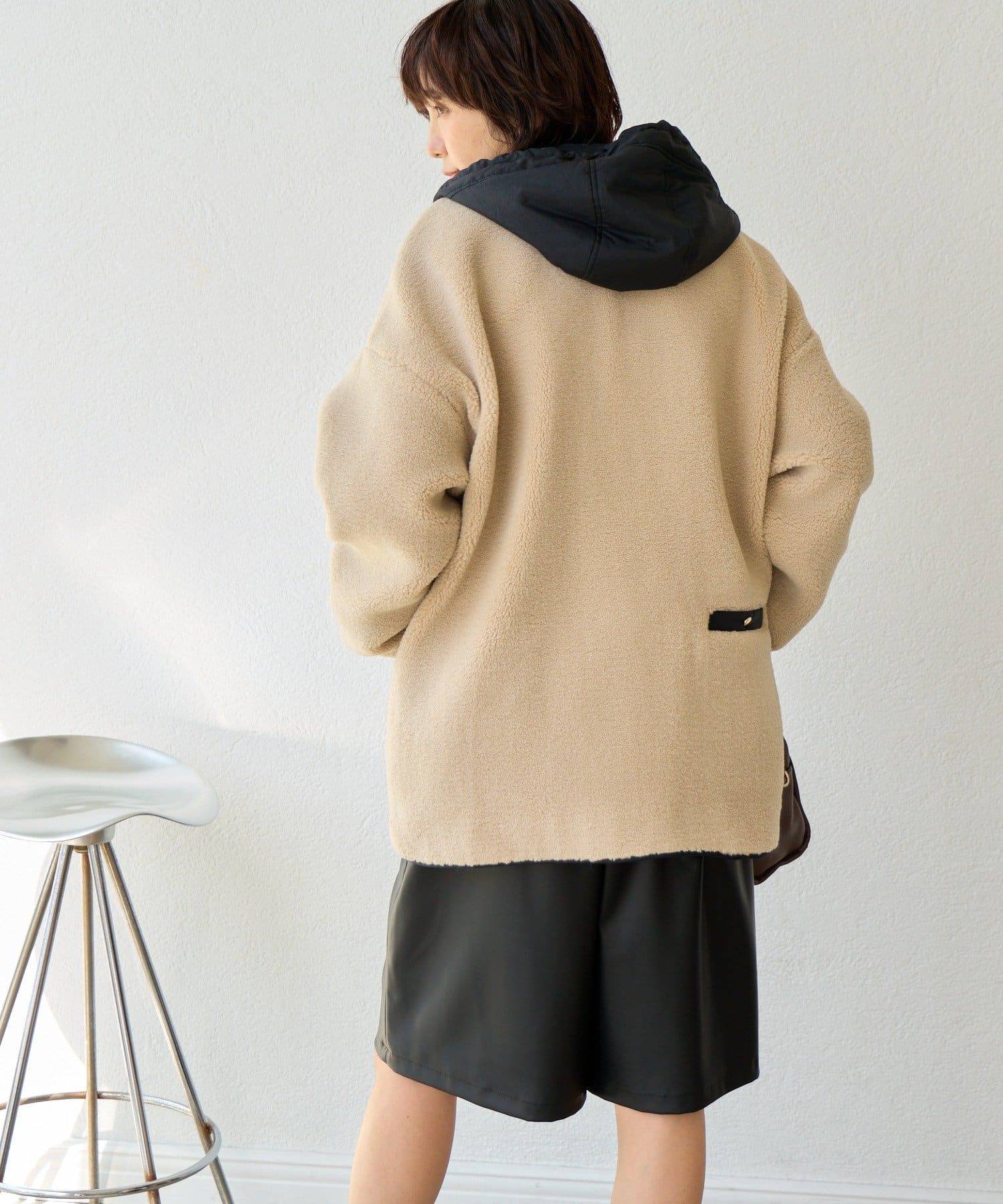 ・丸みのあるフォルムで羽織るだけで様になるボアコート。