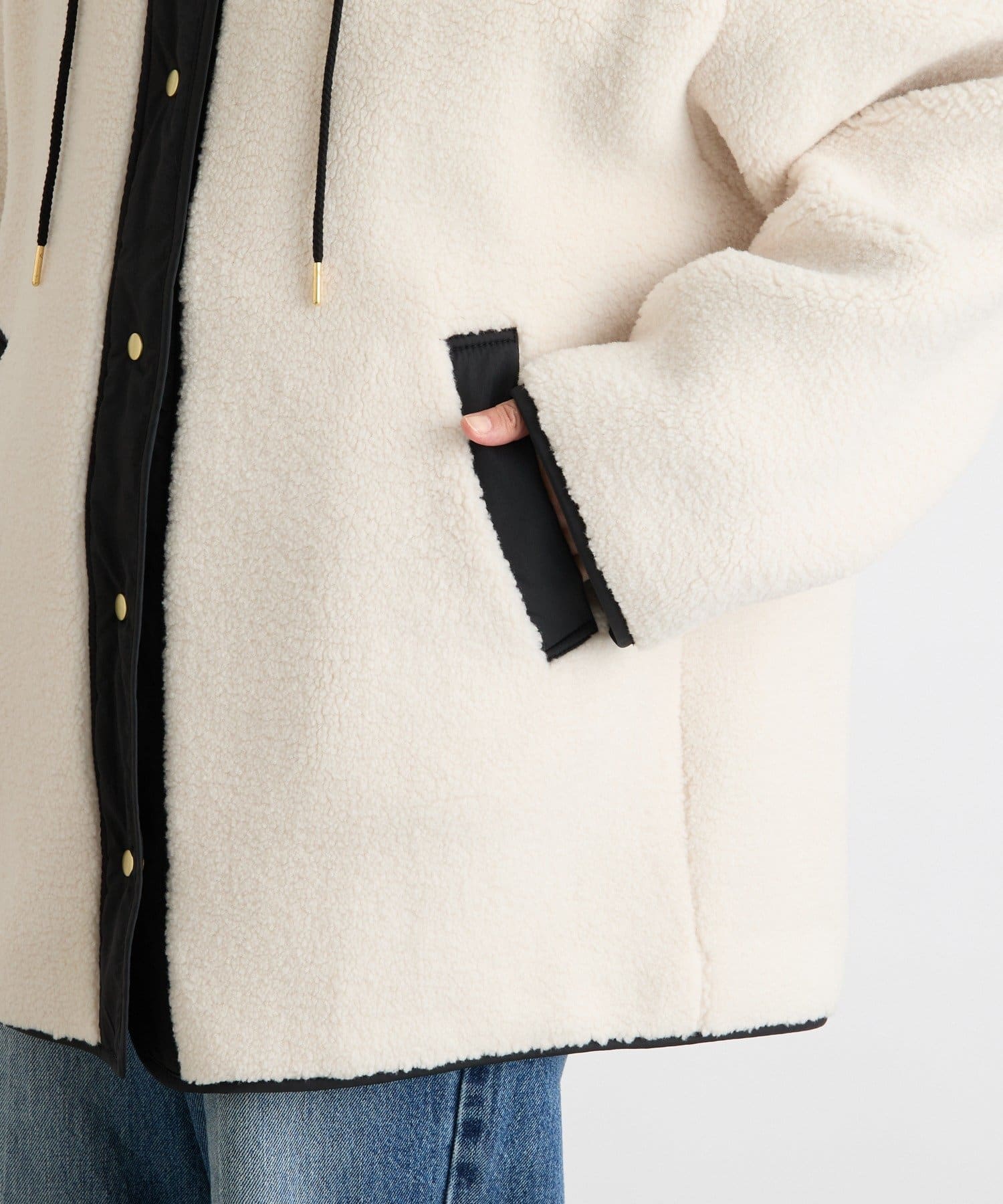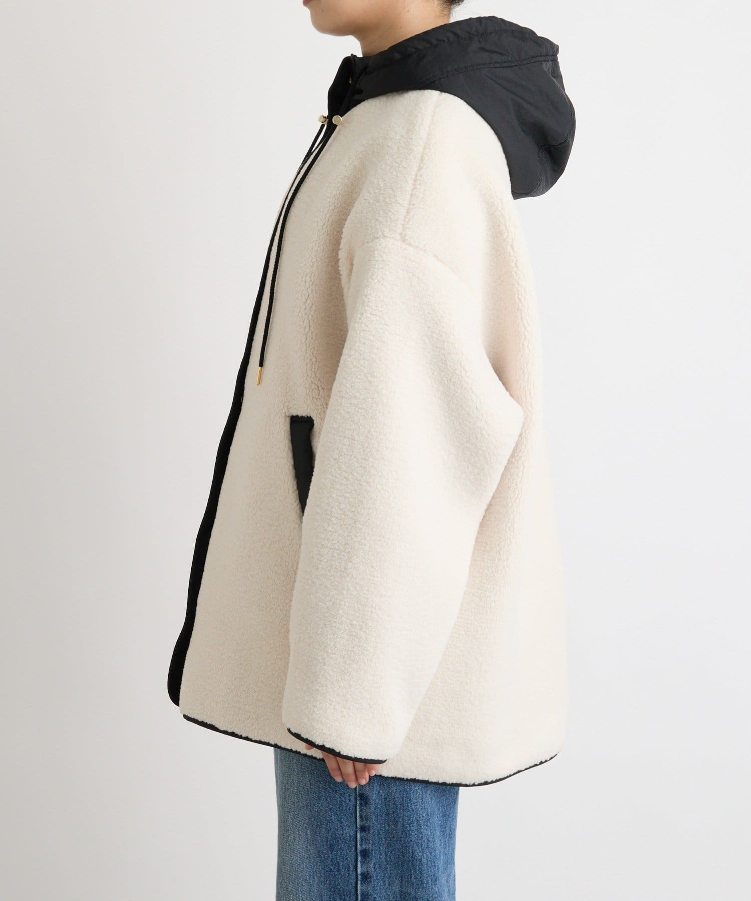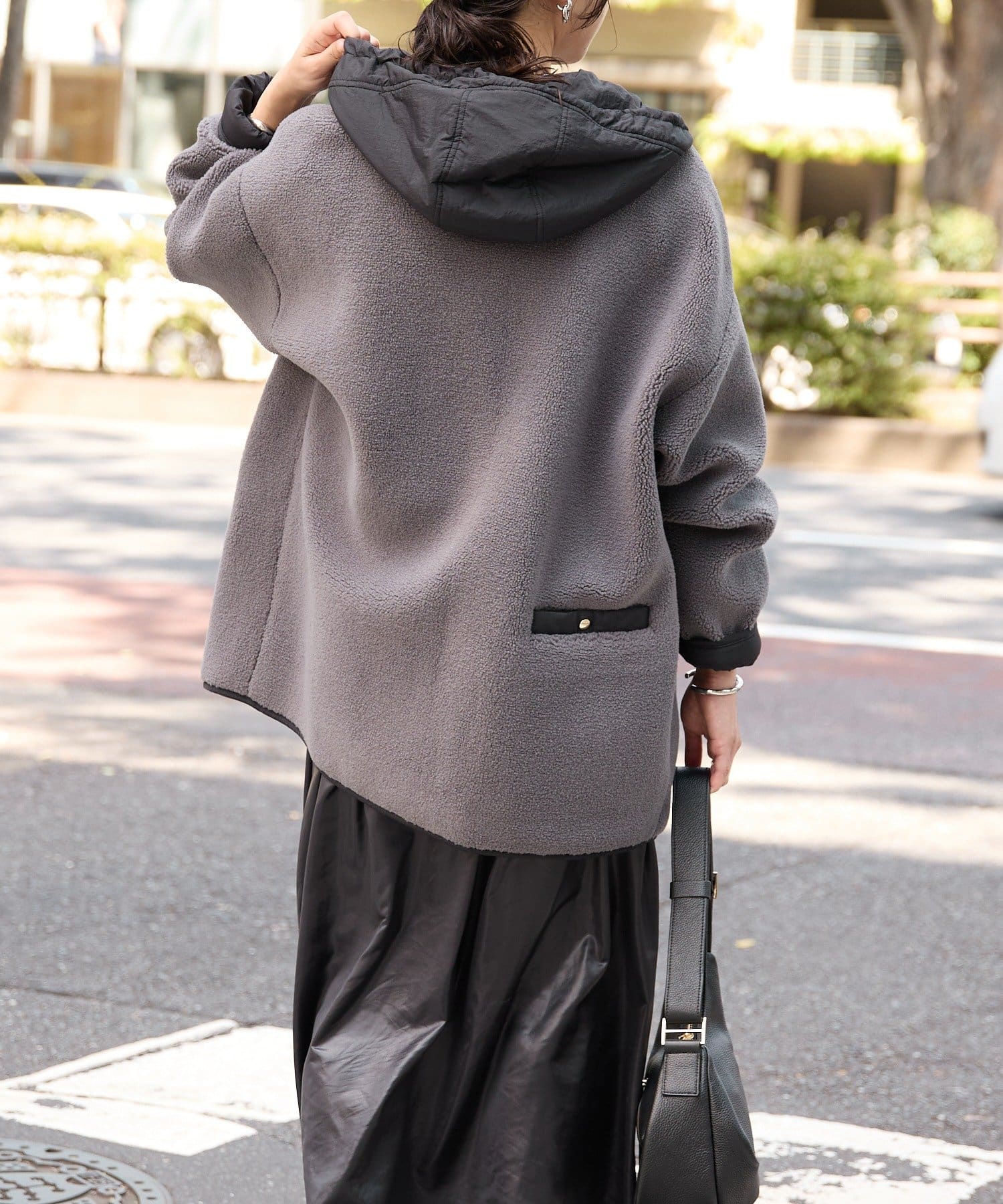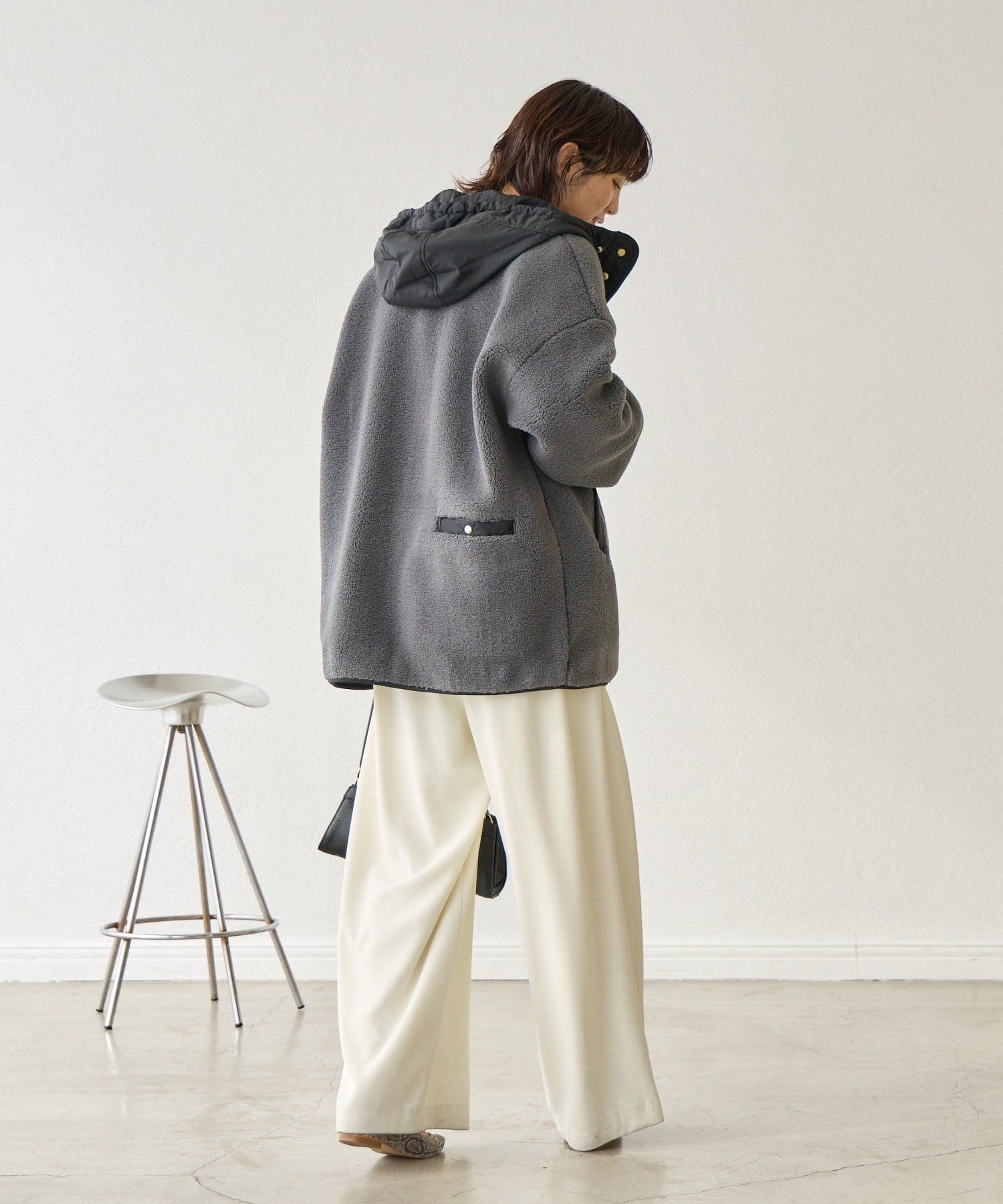 ・丸みのあるフォルムで羽織るだけで様になるボアコート。