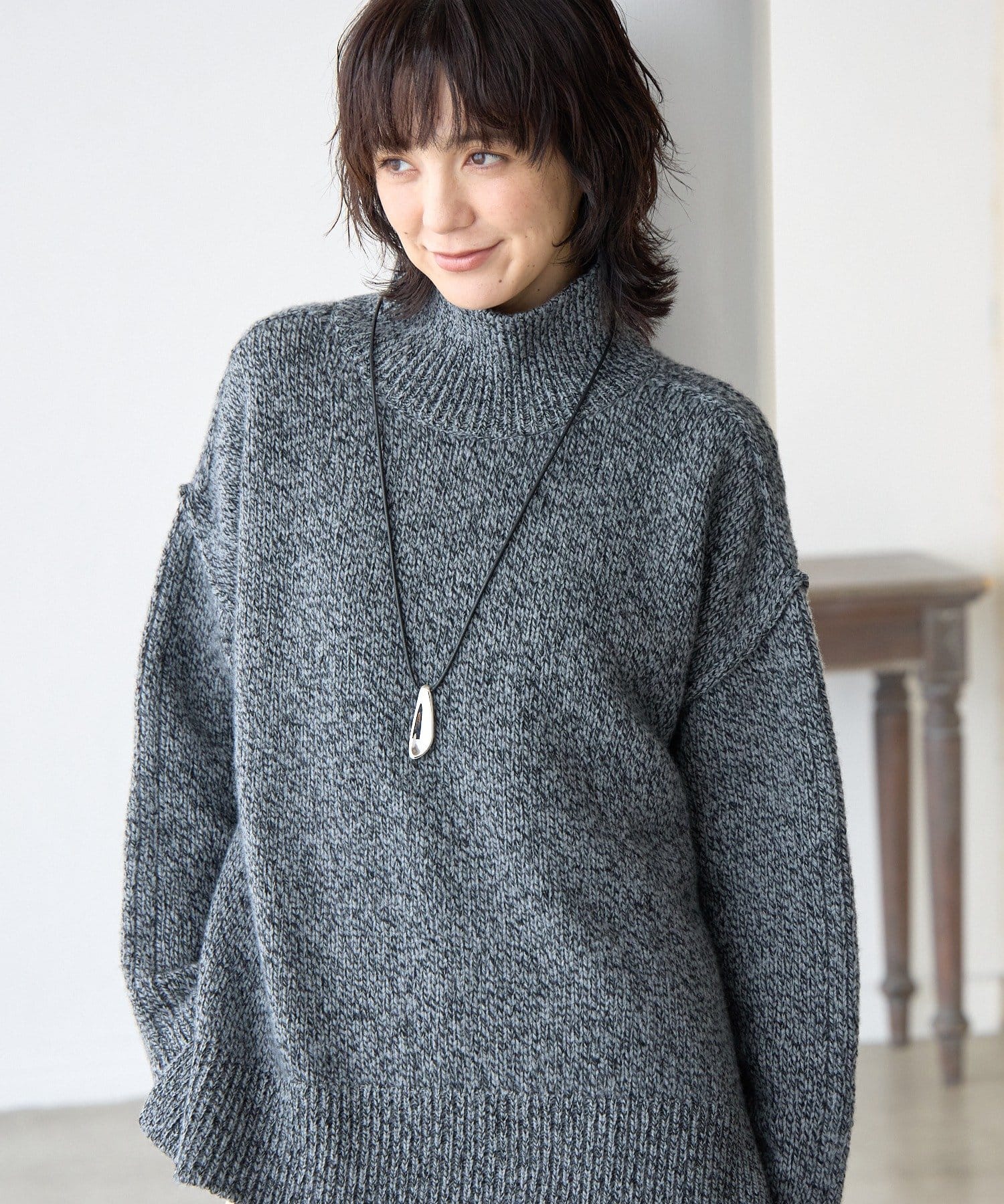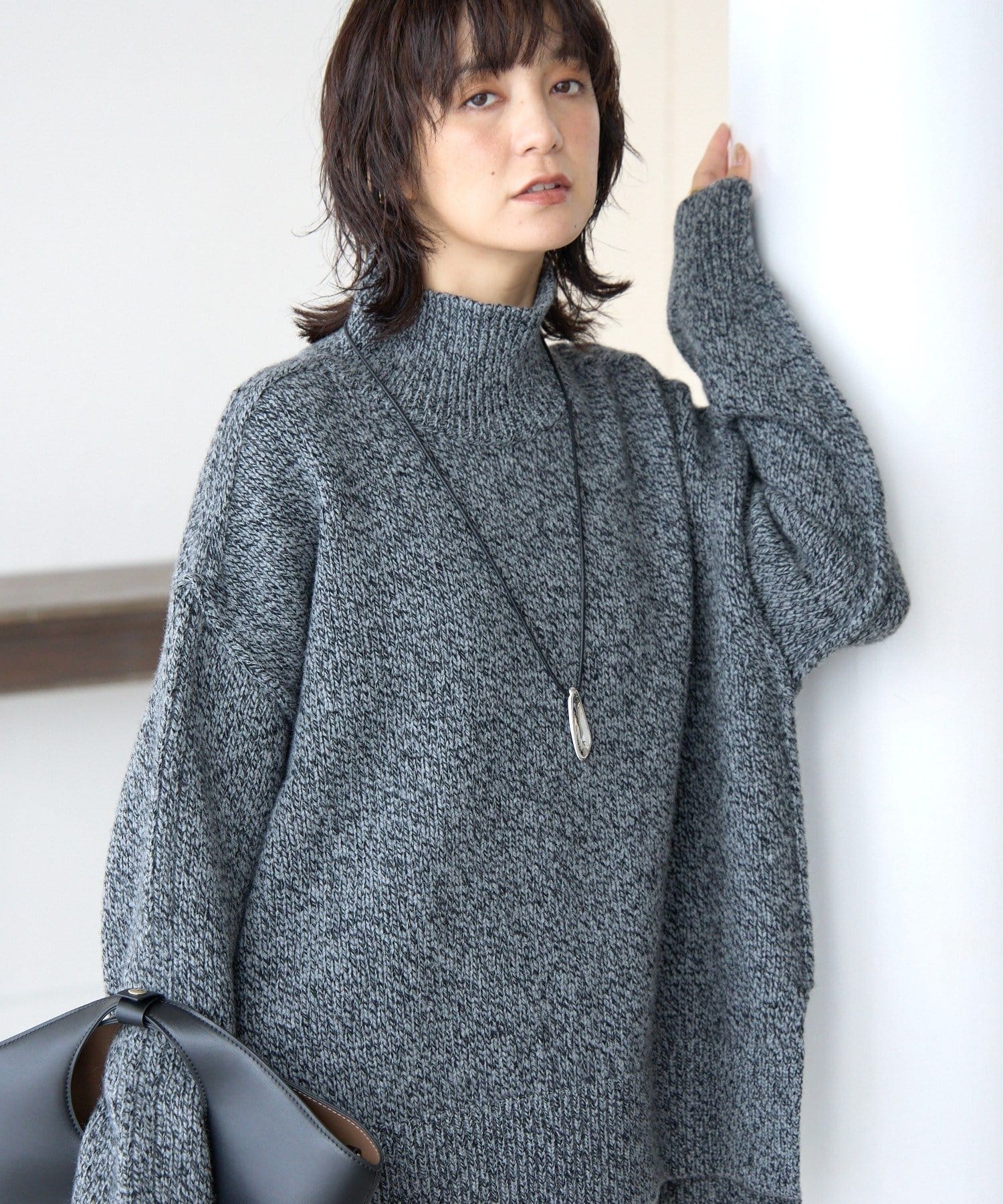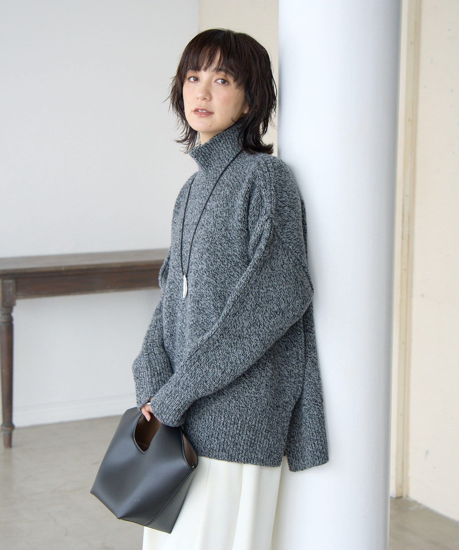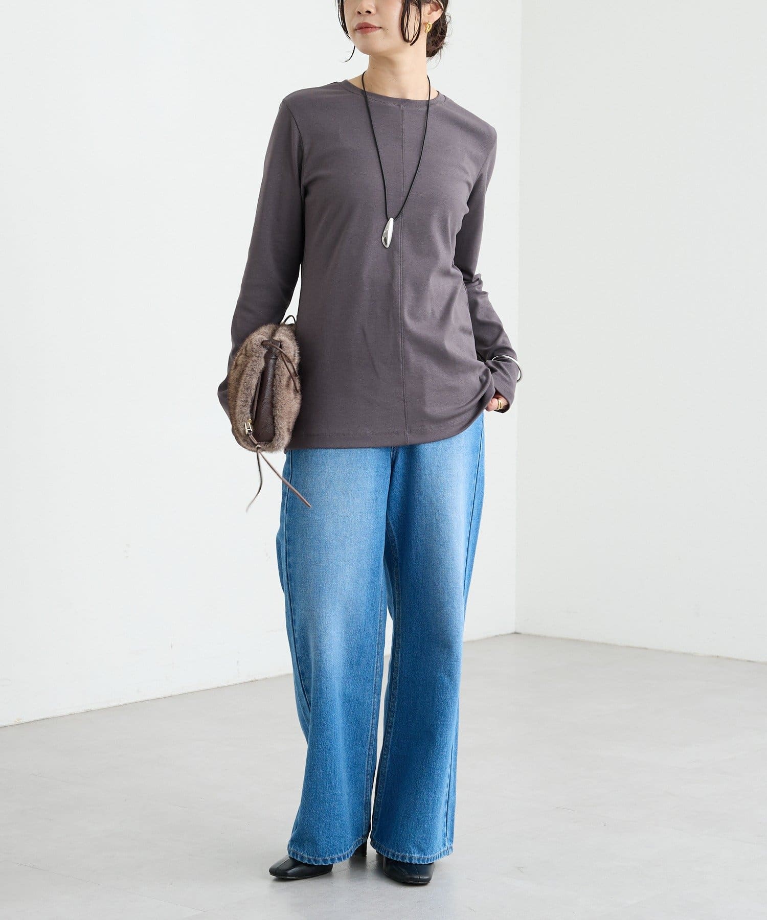 ・縦長フォルムのモチーフがコーディネートをすっきりした印象に