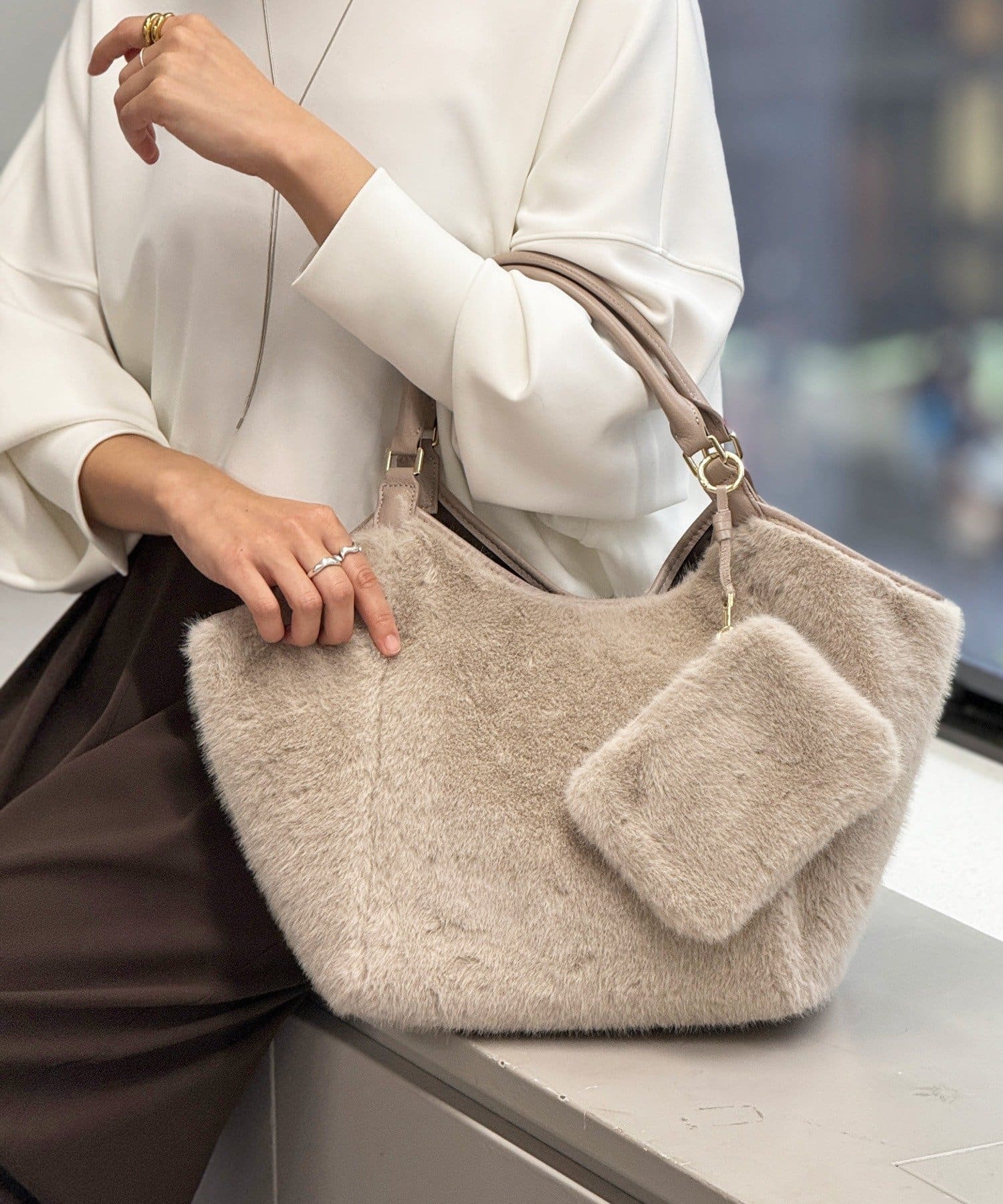秋冬の装いをワンランクアップさせる。主役級フェイクファーバッグ。