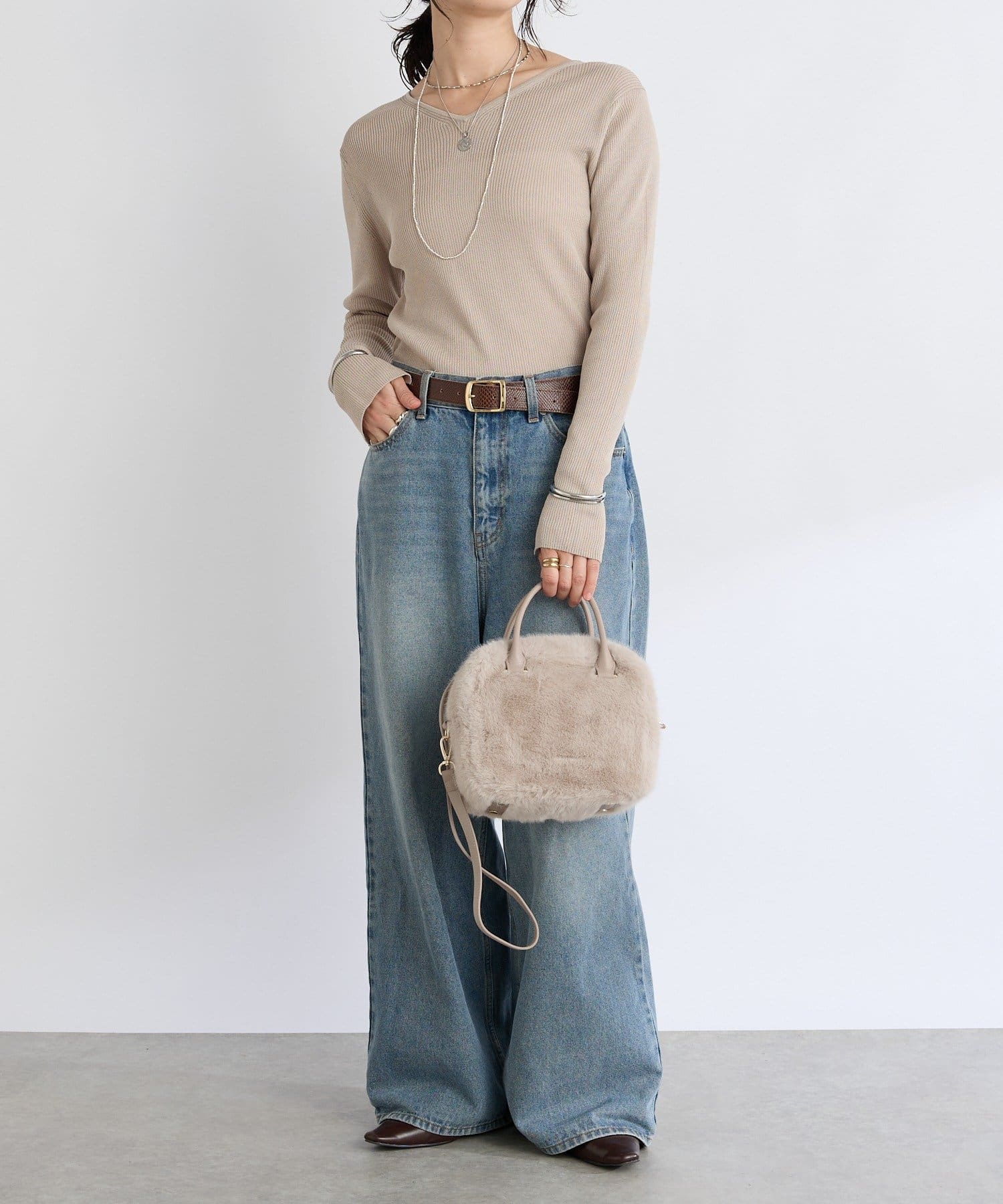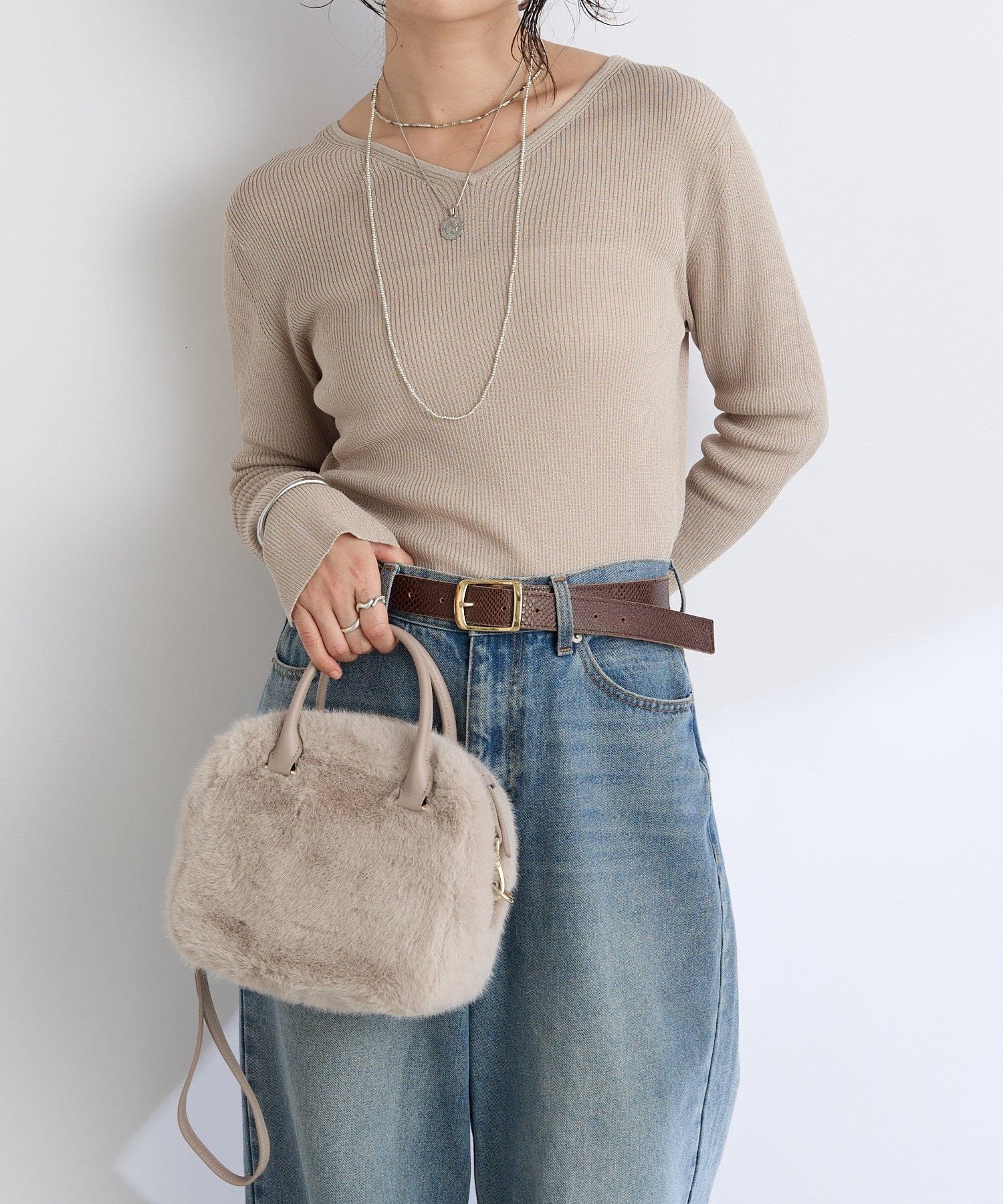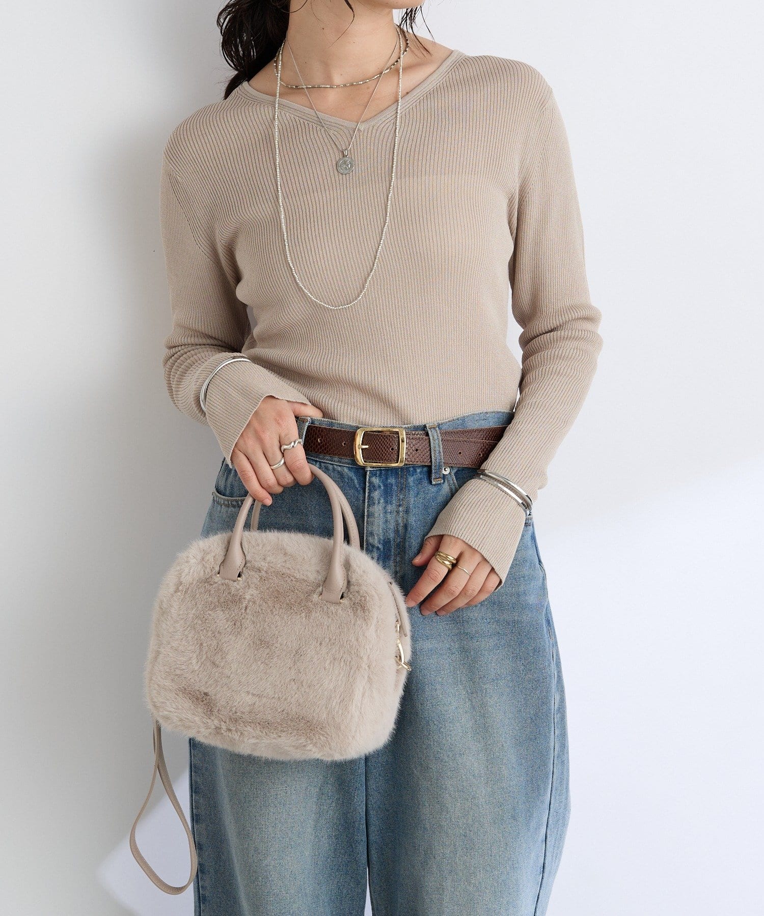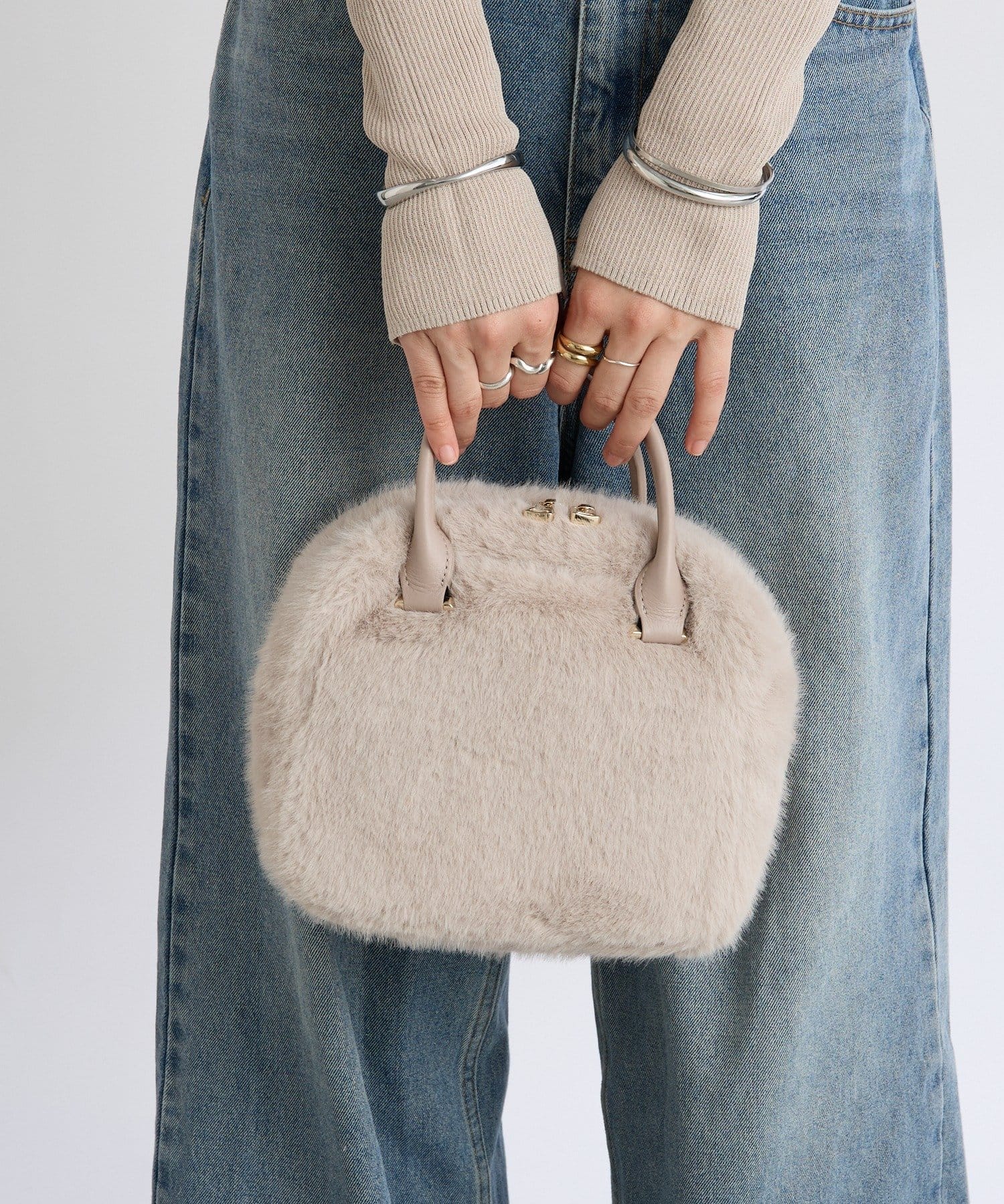 ・適度にボリューム感があるフェイクファーが目をひくボストン型バッグ