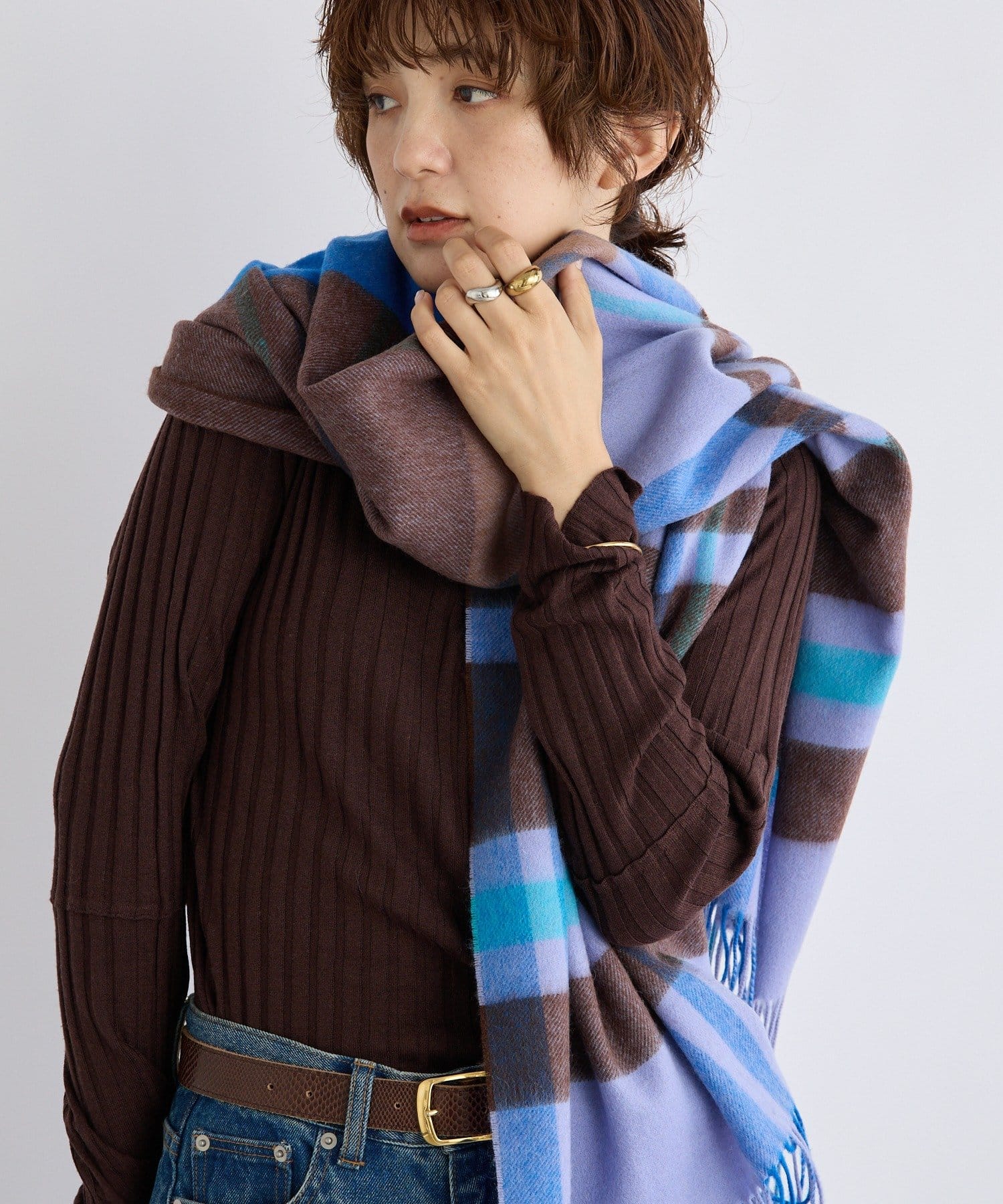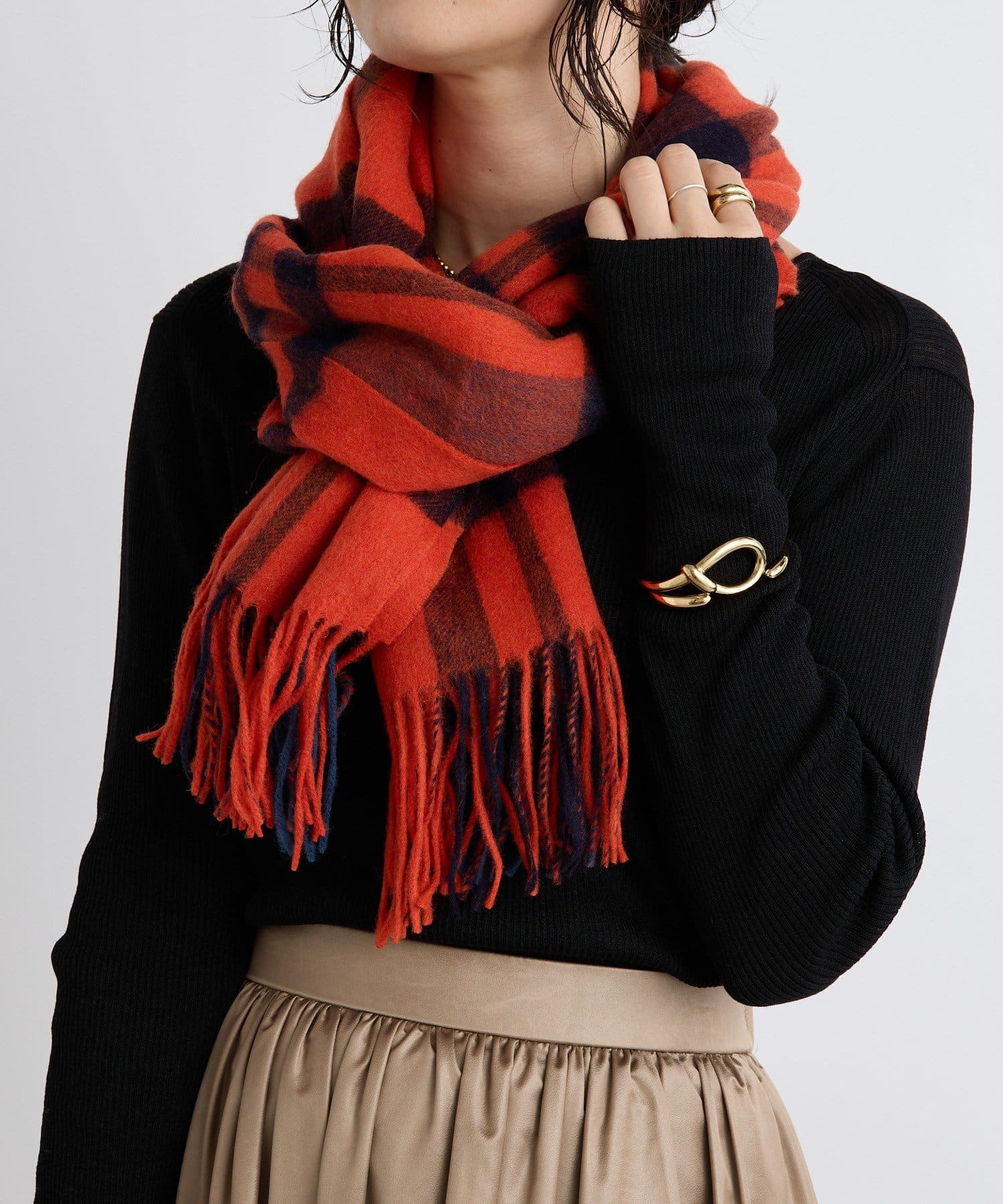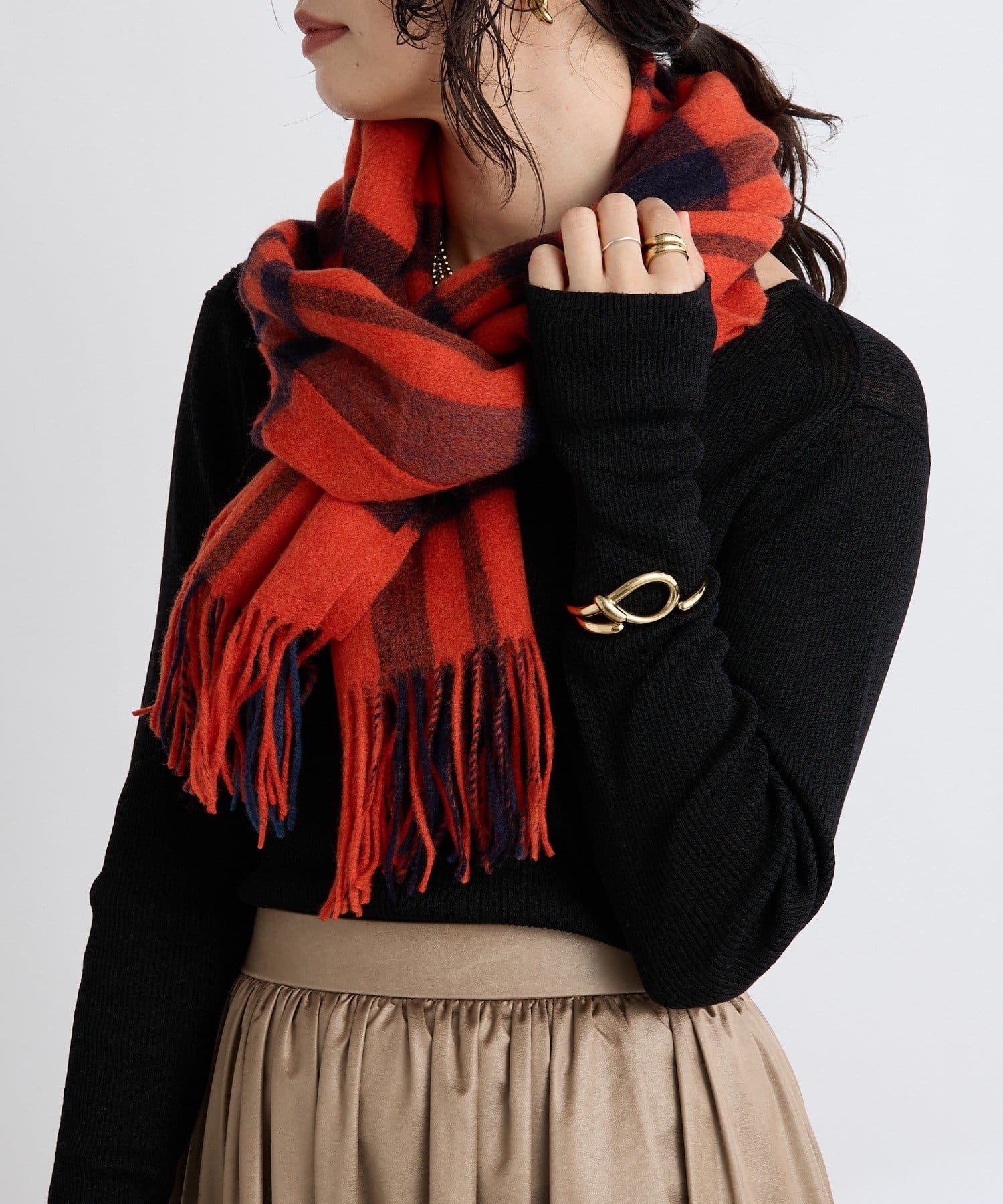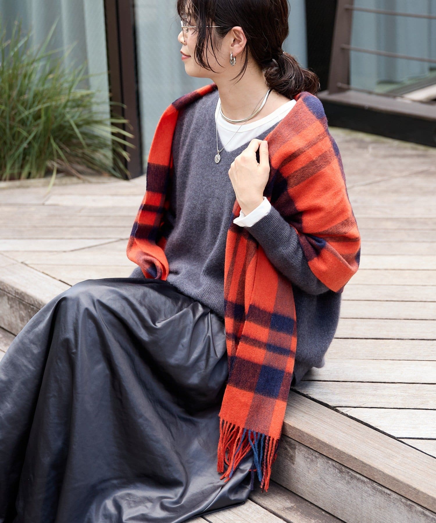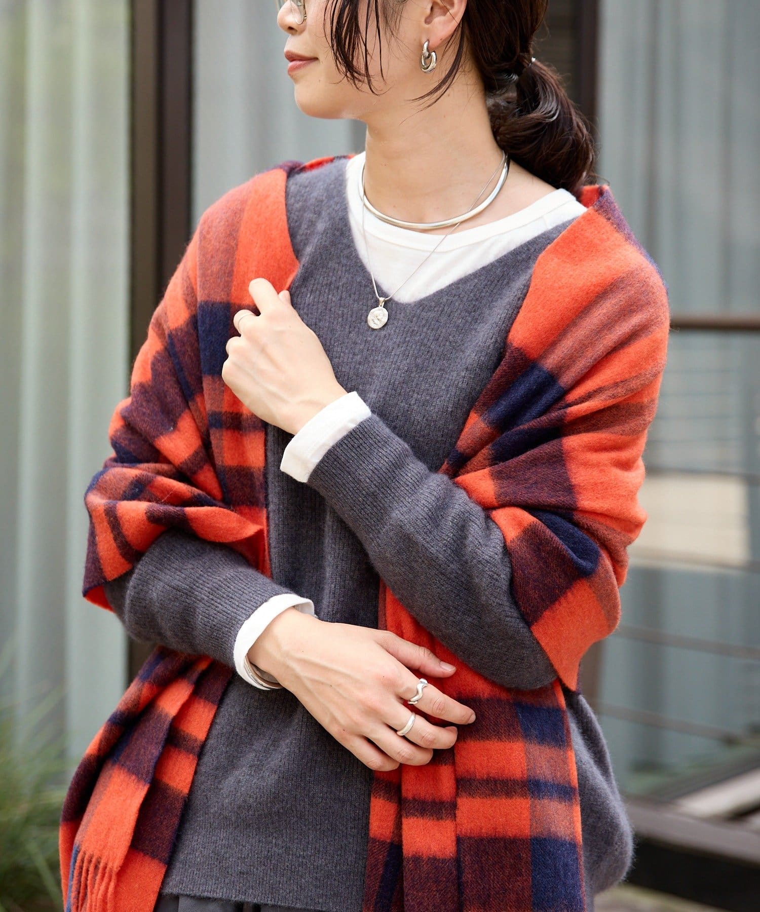 シンプルになりがちな秋冬コーデに首元でアクセントを