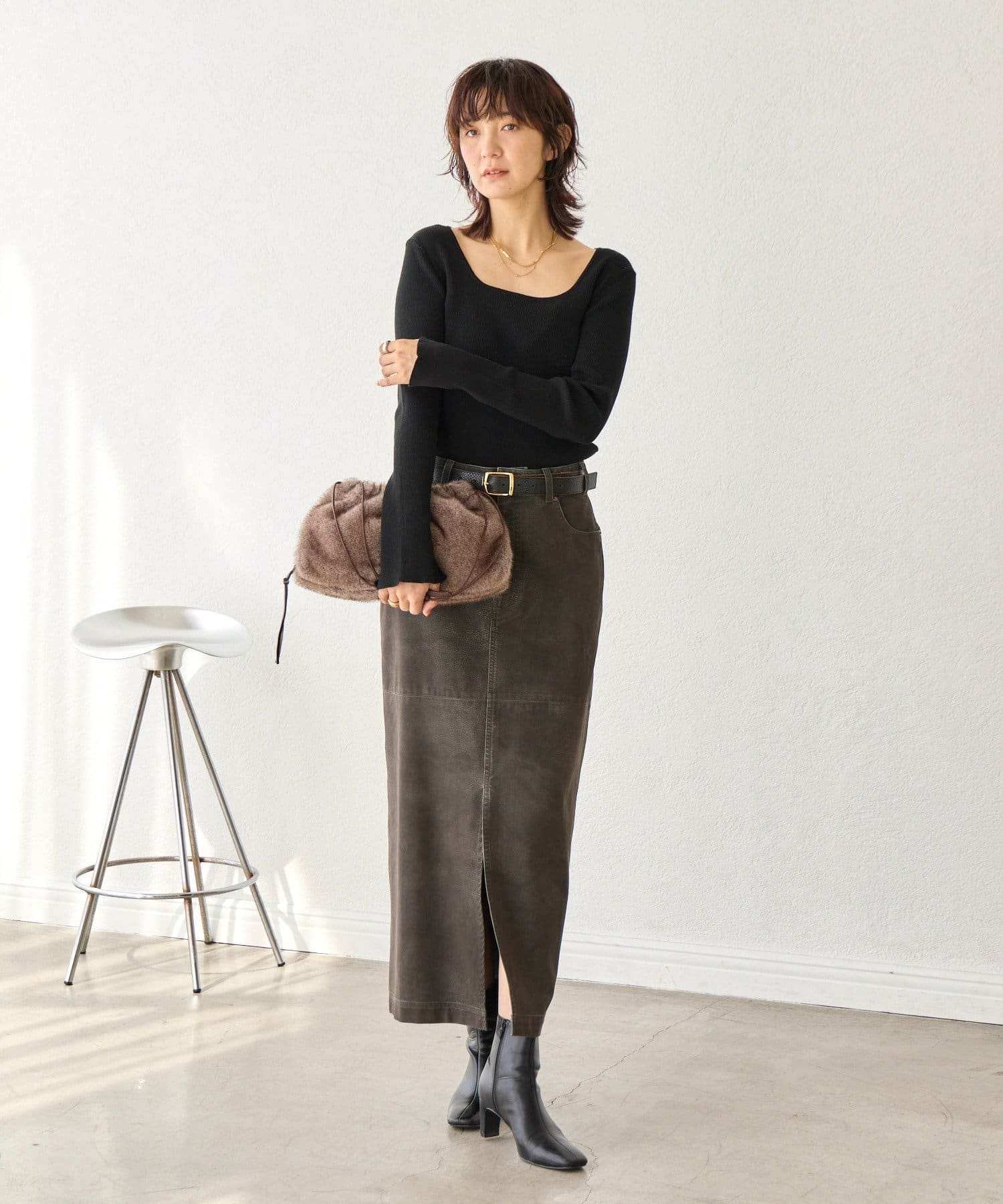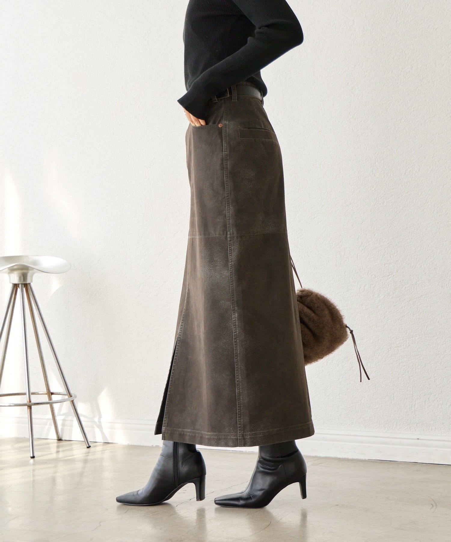 ヴィンテージムード感じる風合いのあるタイトスカート