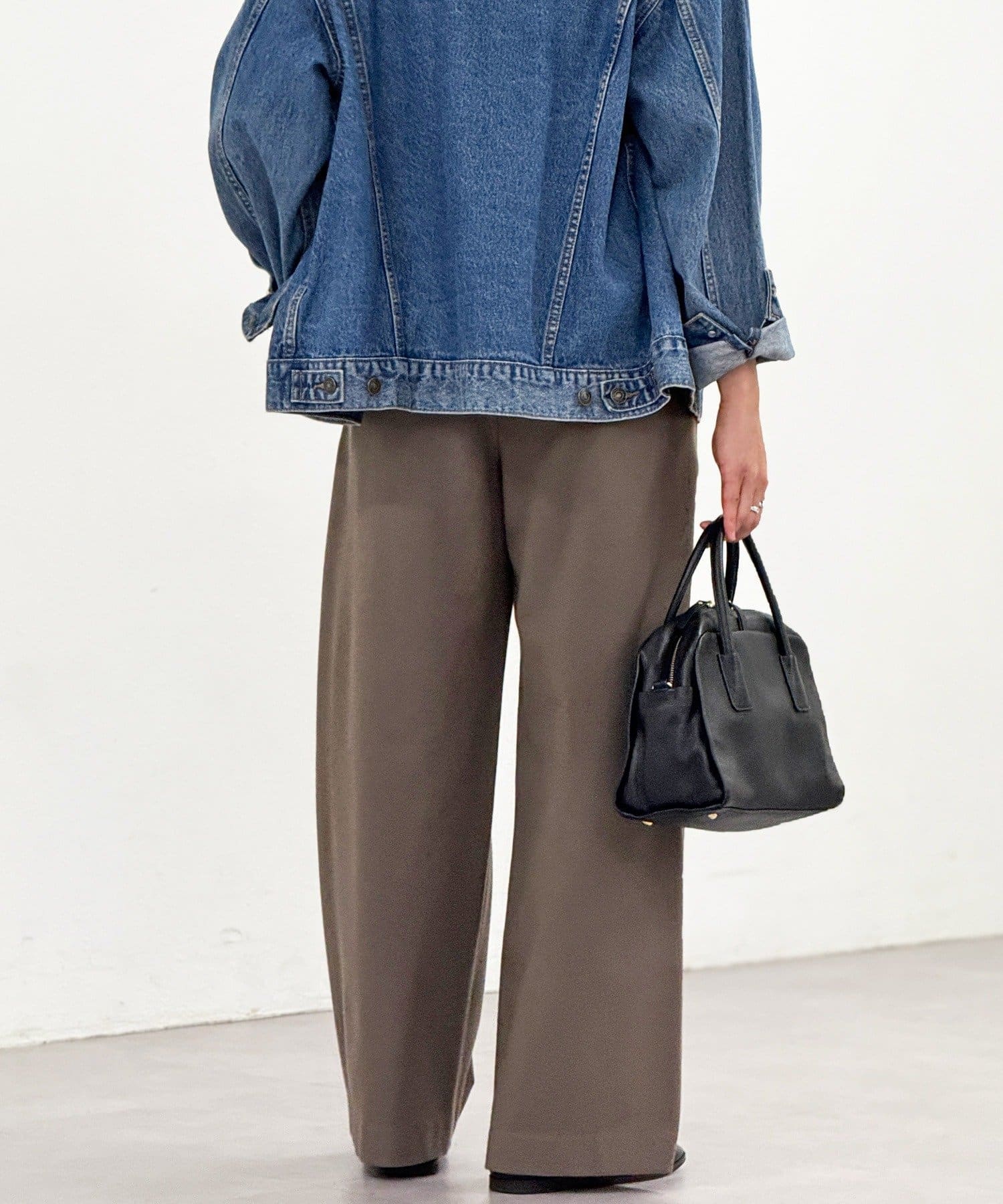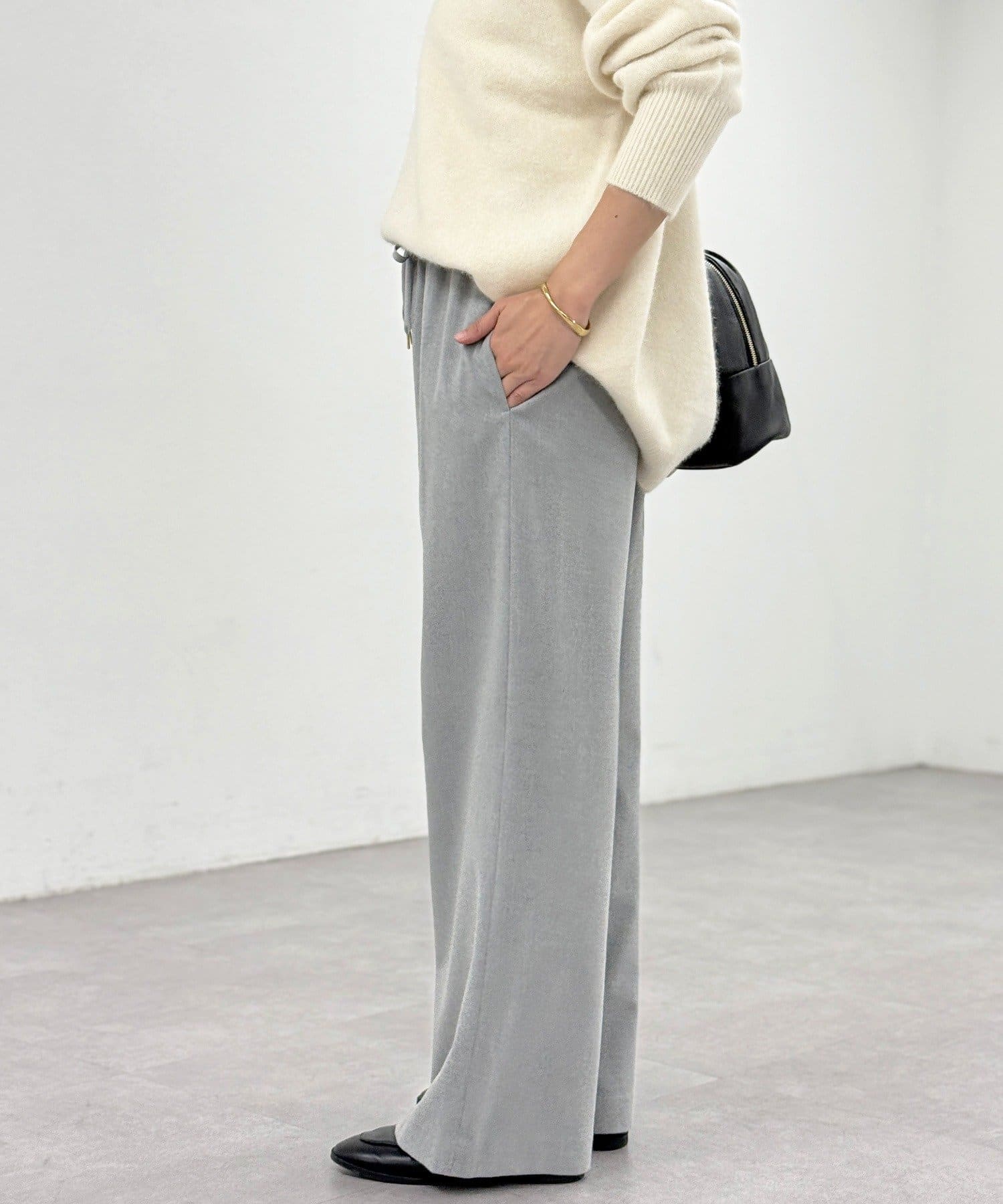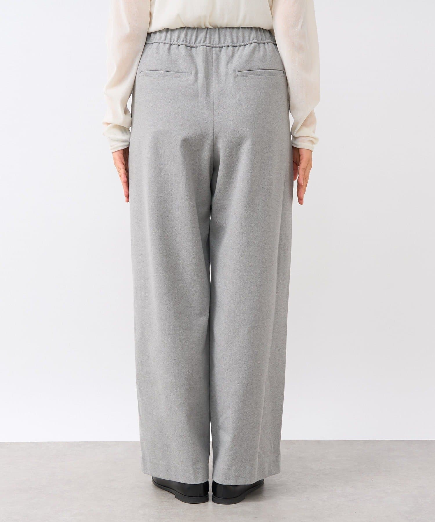 ・両面起毛素材で暖かく、真冬まで楽しめるストレートワイドパンツ。