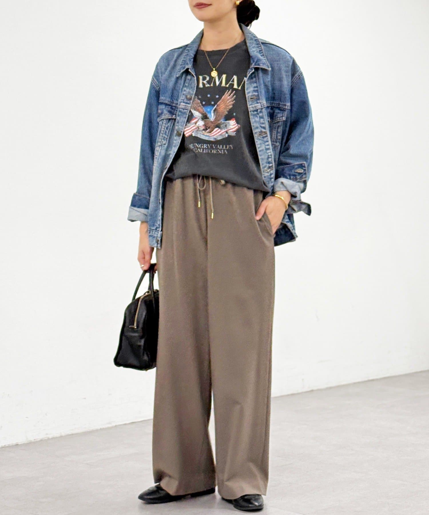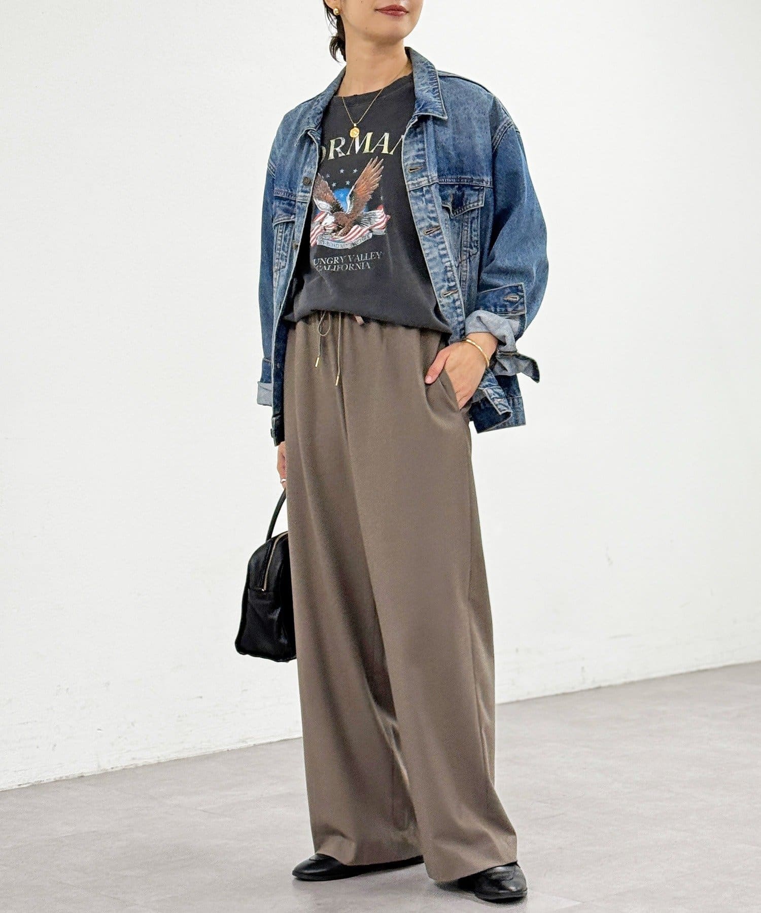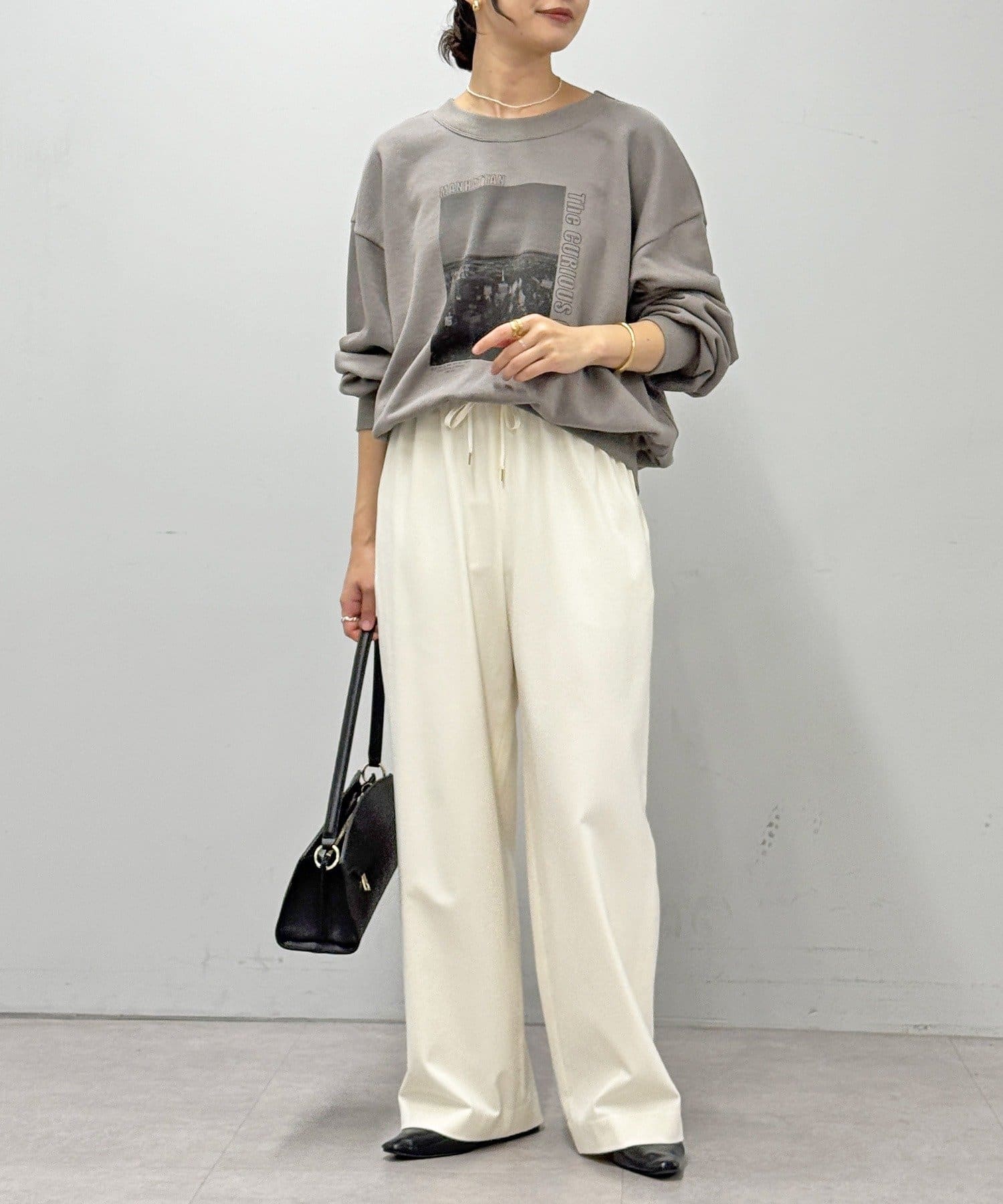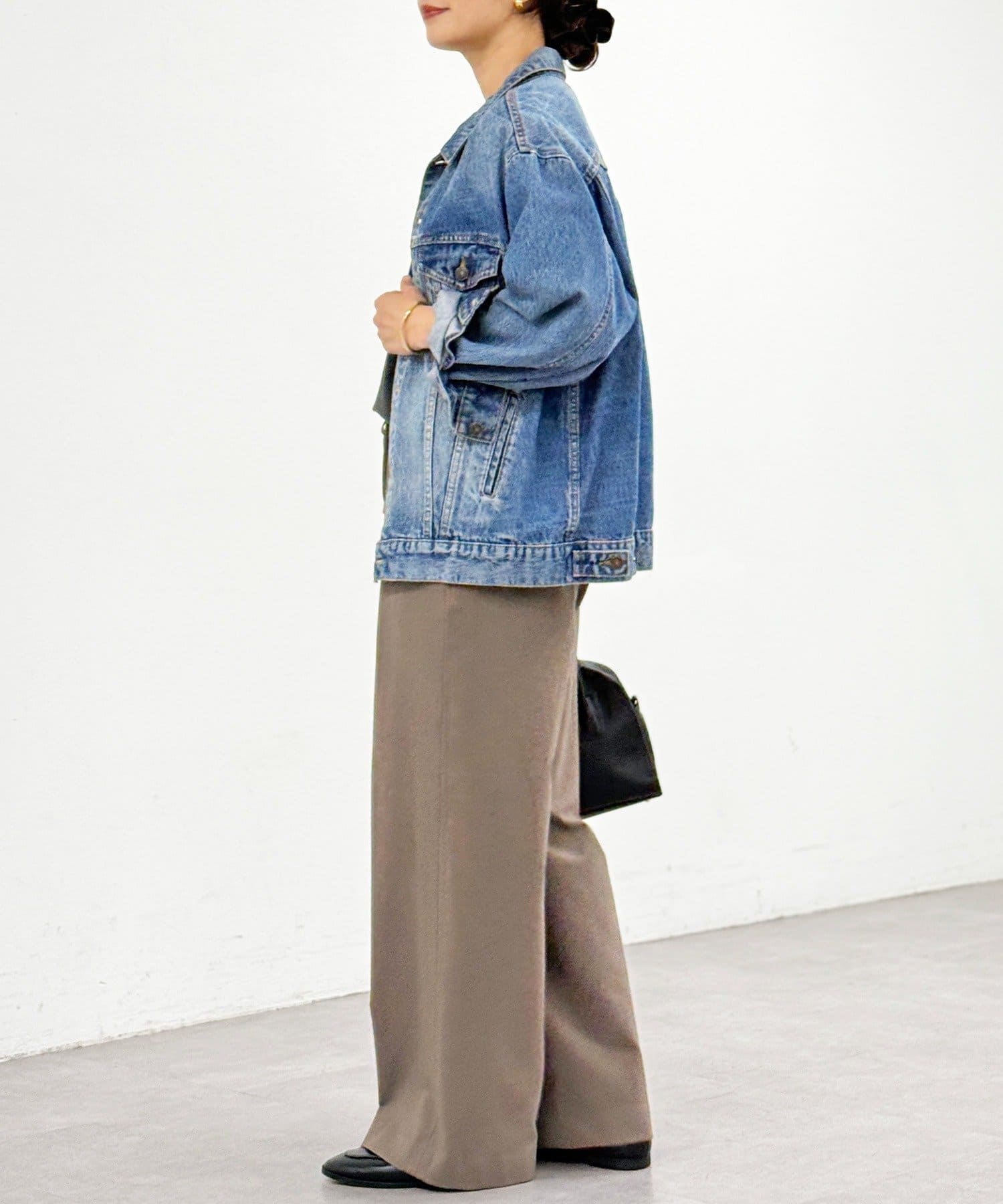 ・両面起毛素材で暖かく、真冬まで楽しめるストレートワイドパンツ。