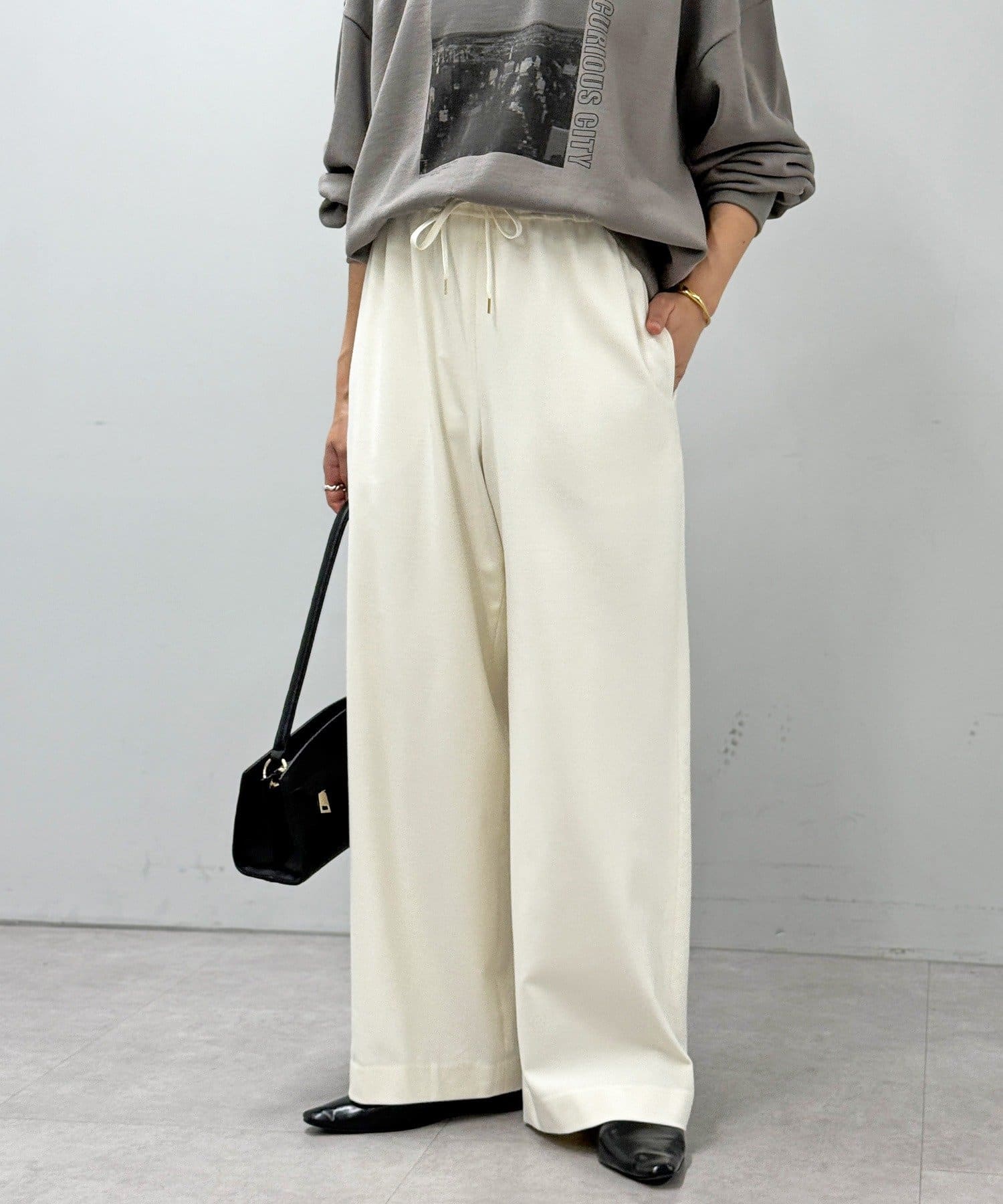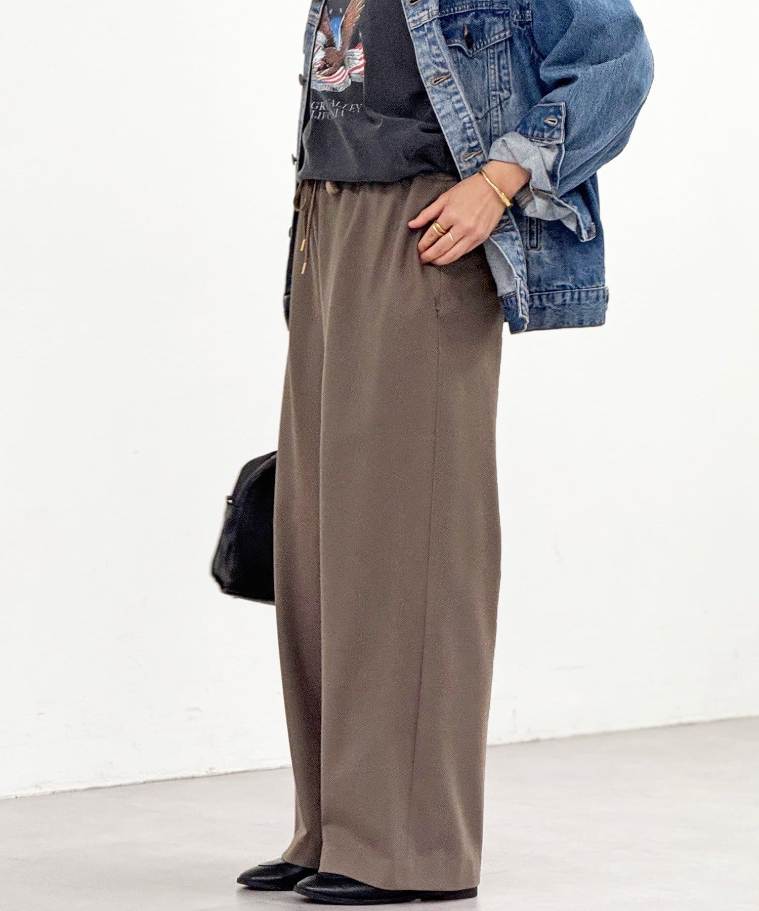 ・ぐるりゴム+ドロスト仕様のウエストでイージーな履き心地に。