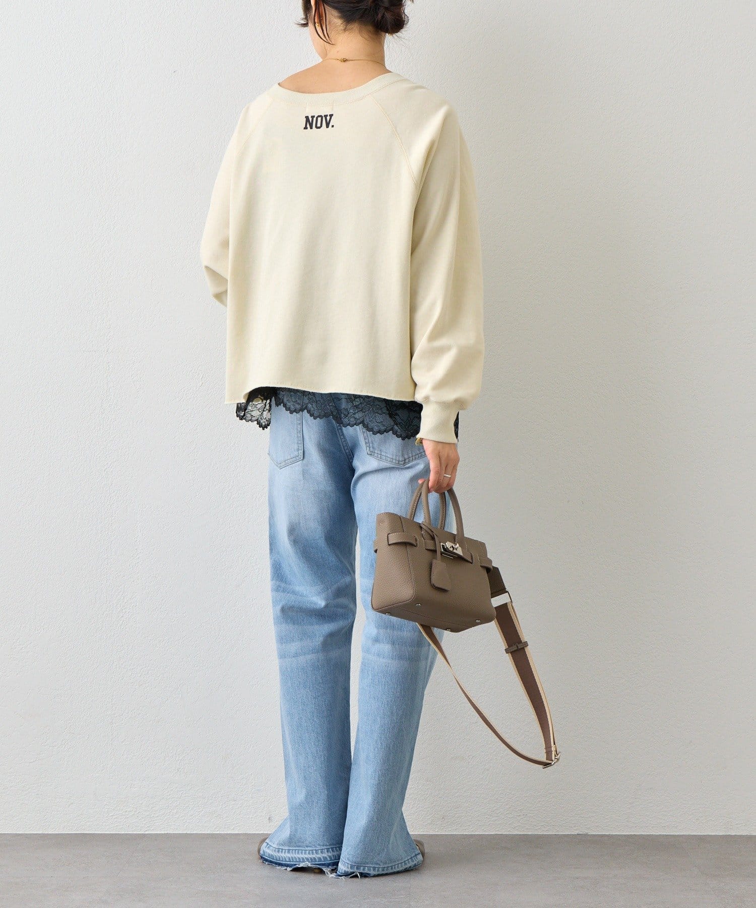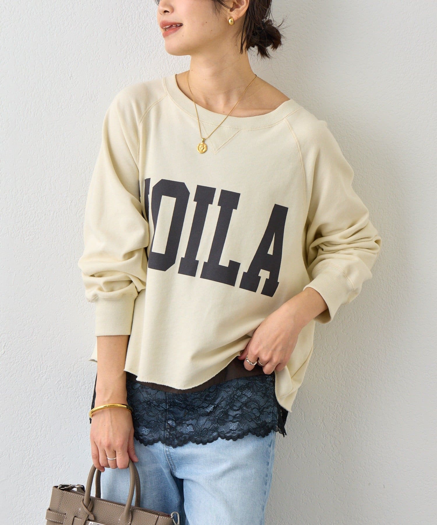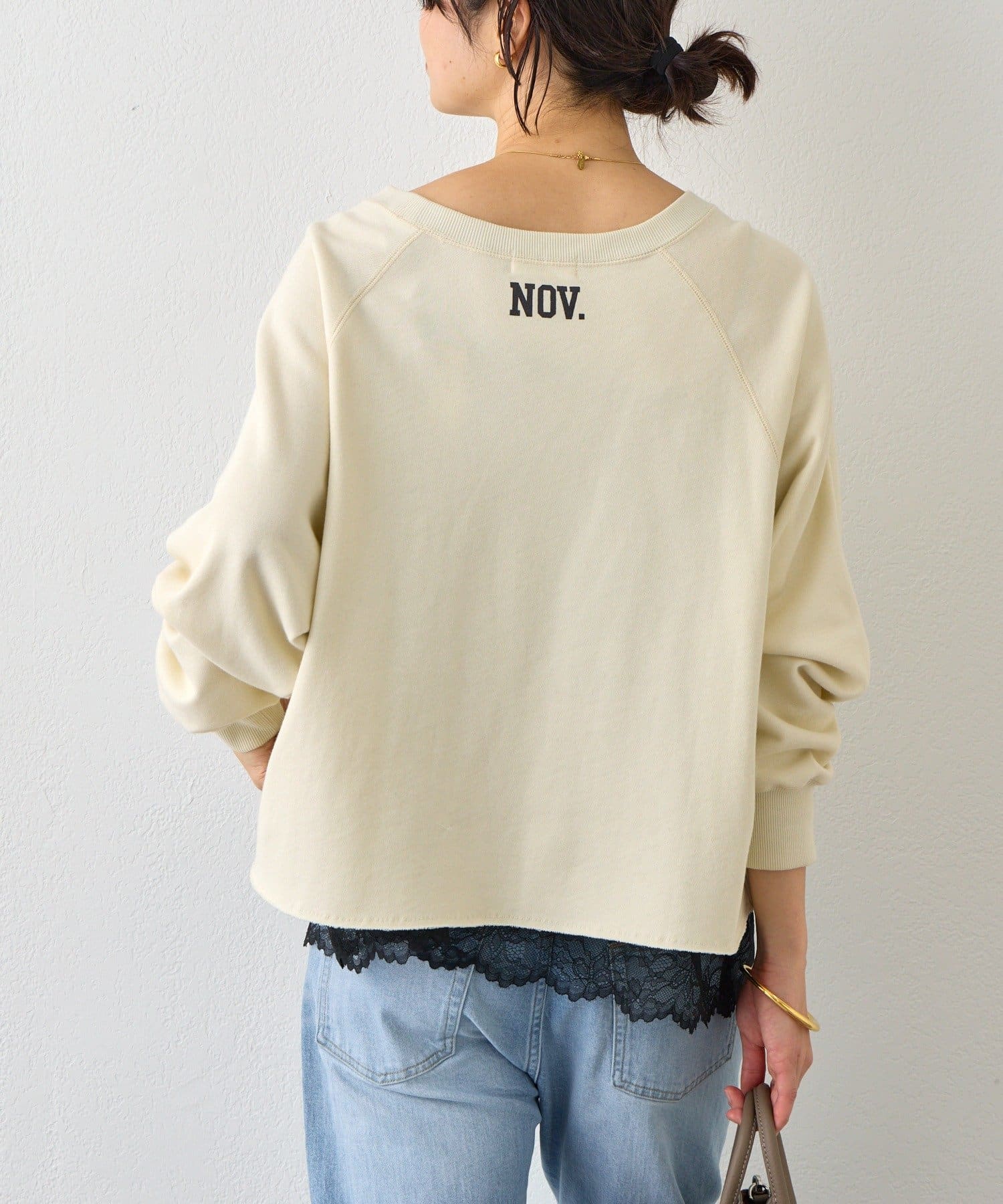 ・レースをトップスの裾からさりげなくのぞかせるだけで、鮮度のあるスタイルになります