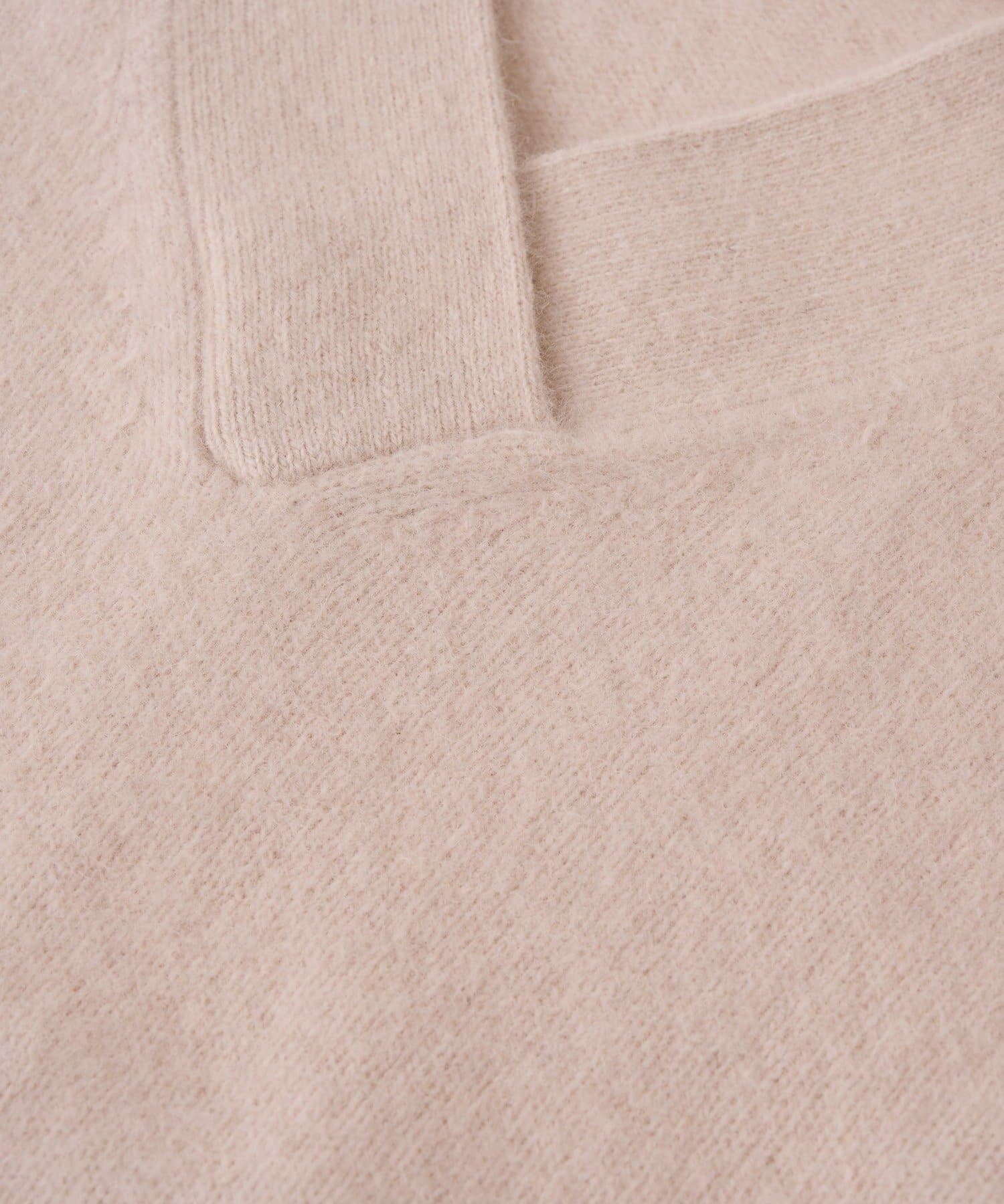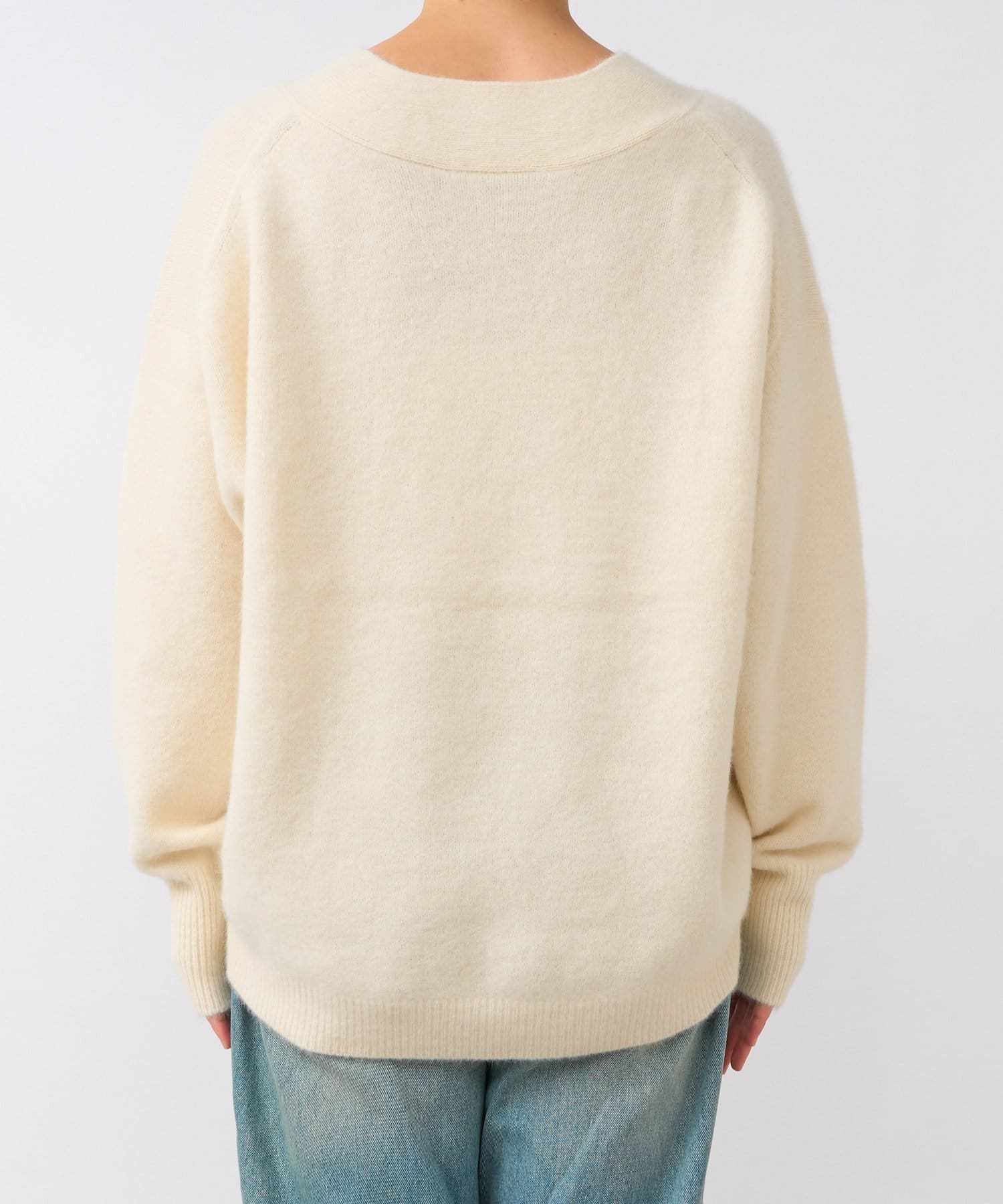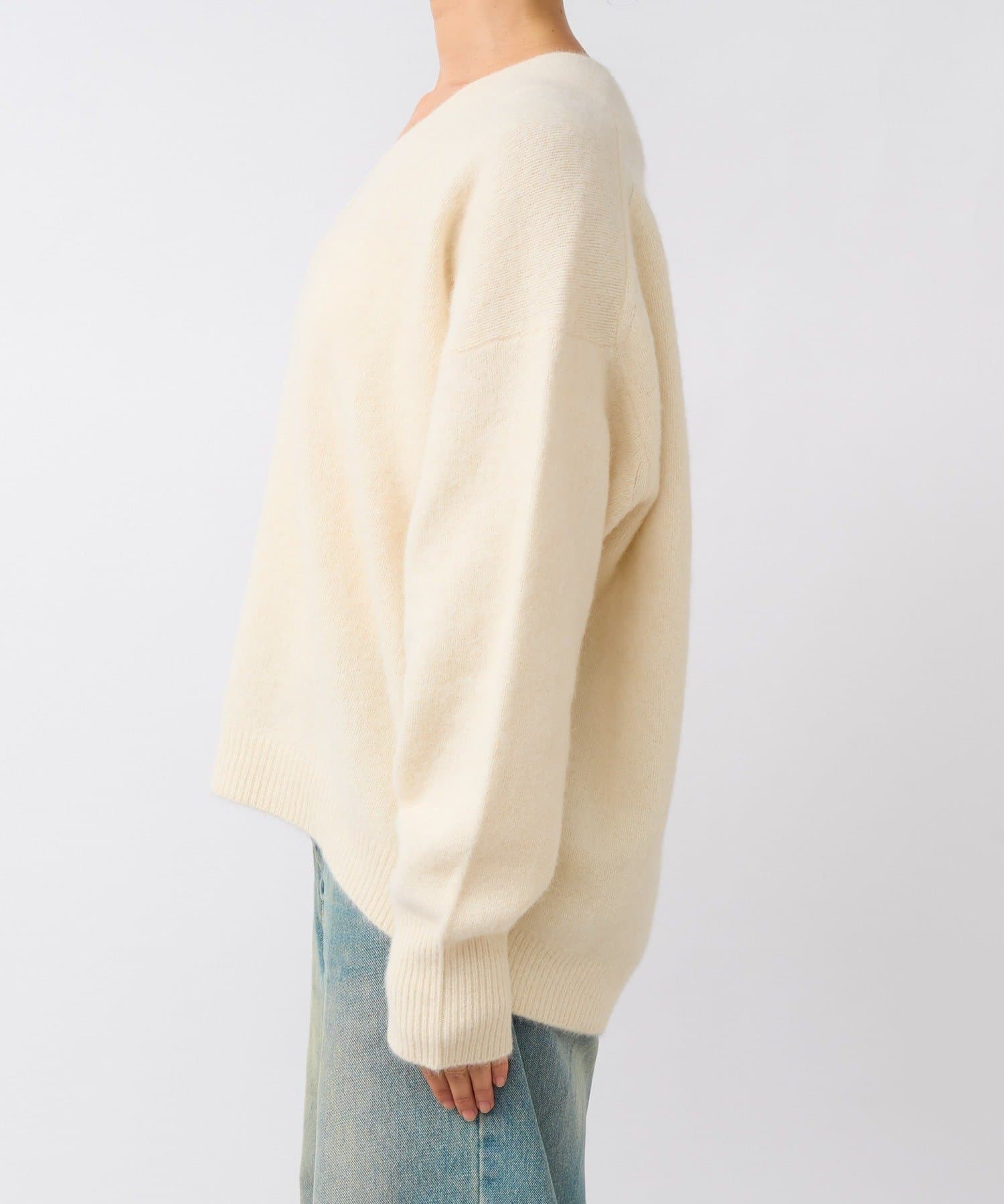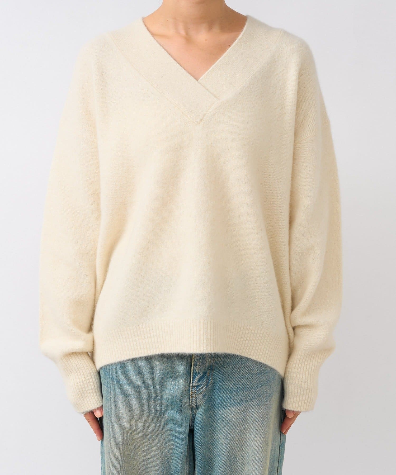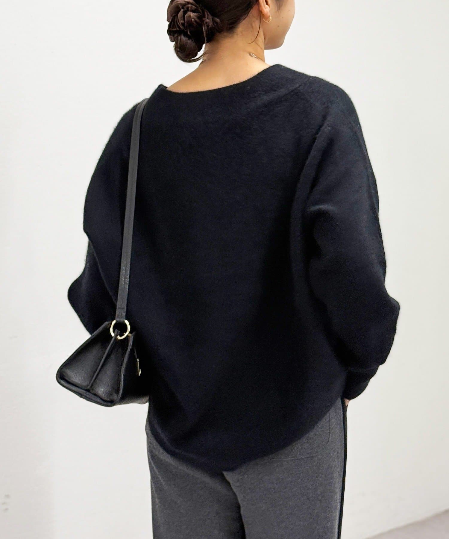 【華やかな印象に】ヘアリーヤーン深Vネックニット
