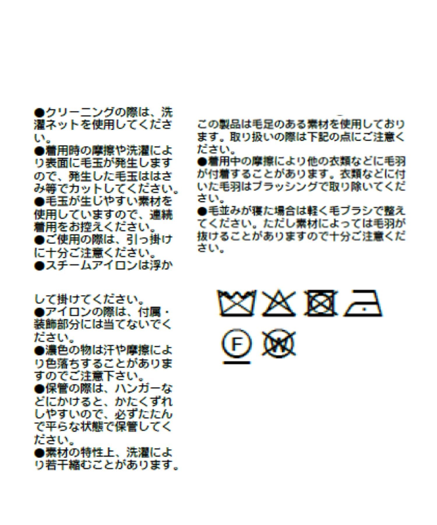 袖口部分:毛 94% ナイロン 5% ポリウレタン 1%原産国 中国 サイズ F カテゴリ トップス > ニット/セーター タイプ レディース ギフト ラッピング 可 取り扱い 本体:ドライクリーニング アイテムサイズ