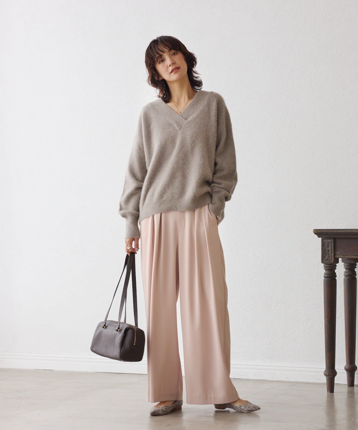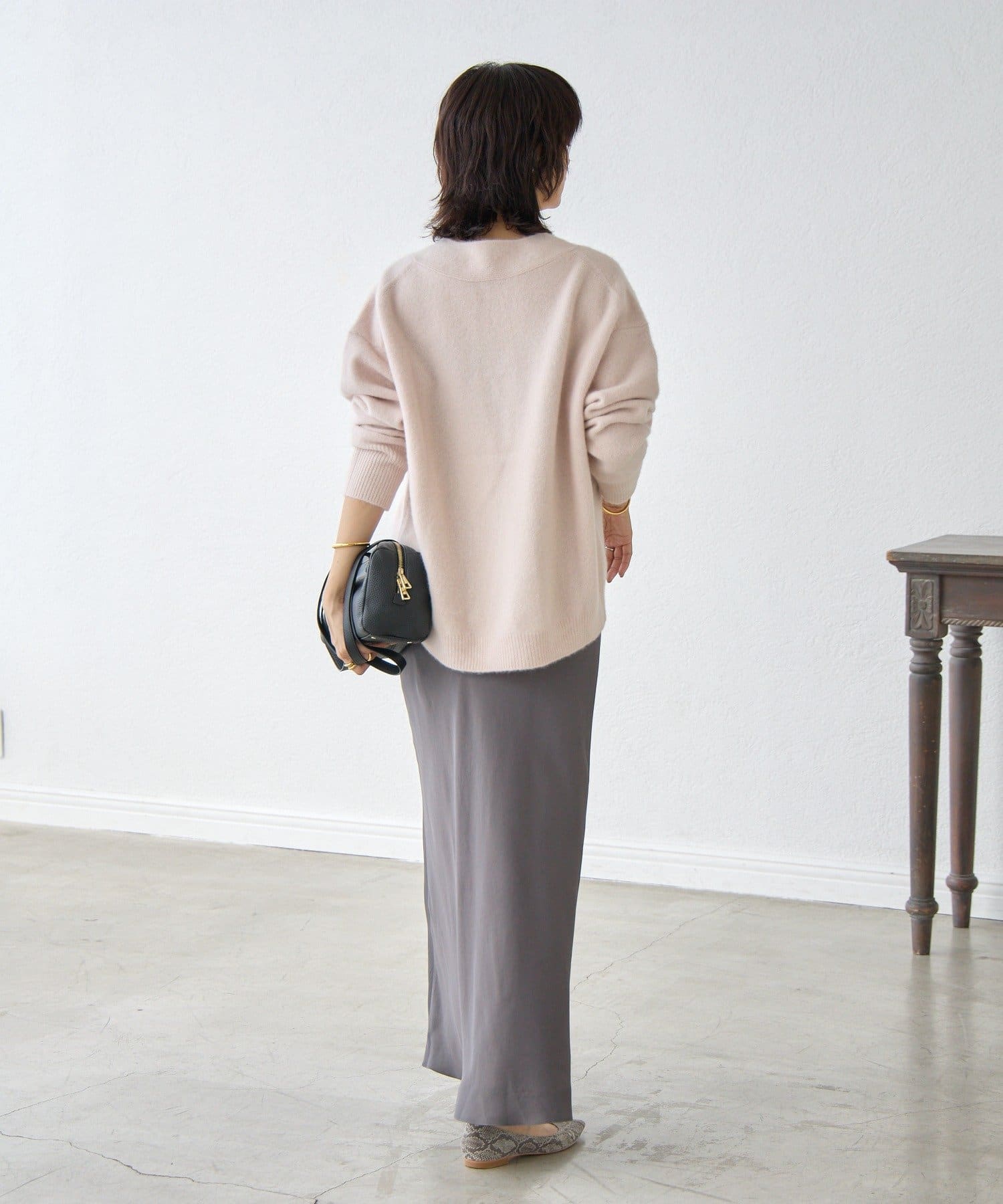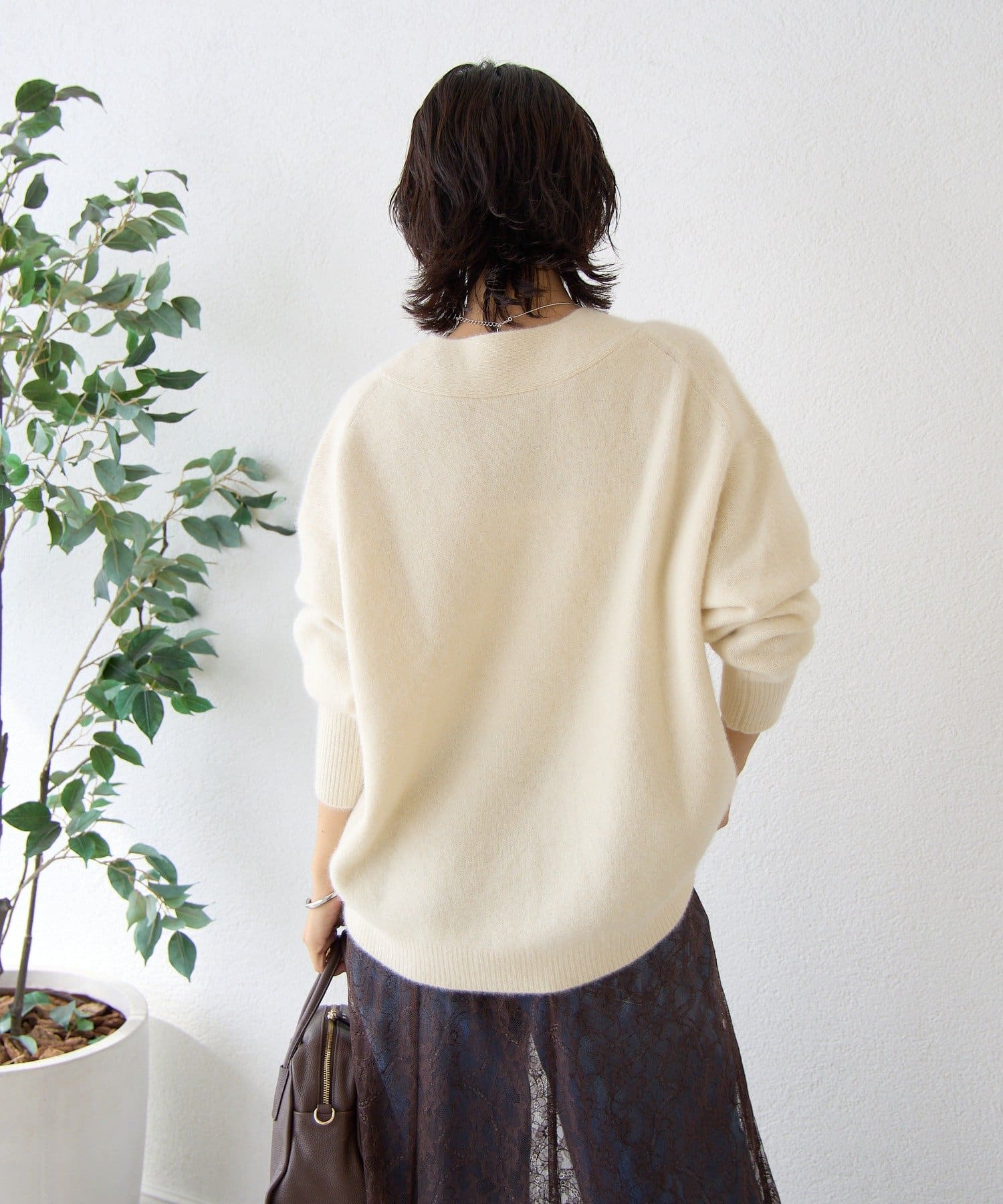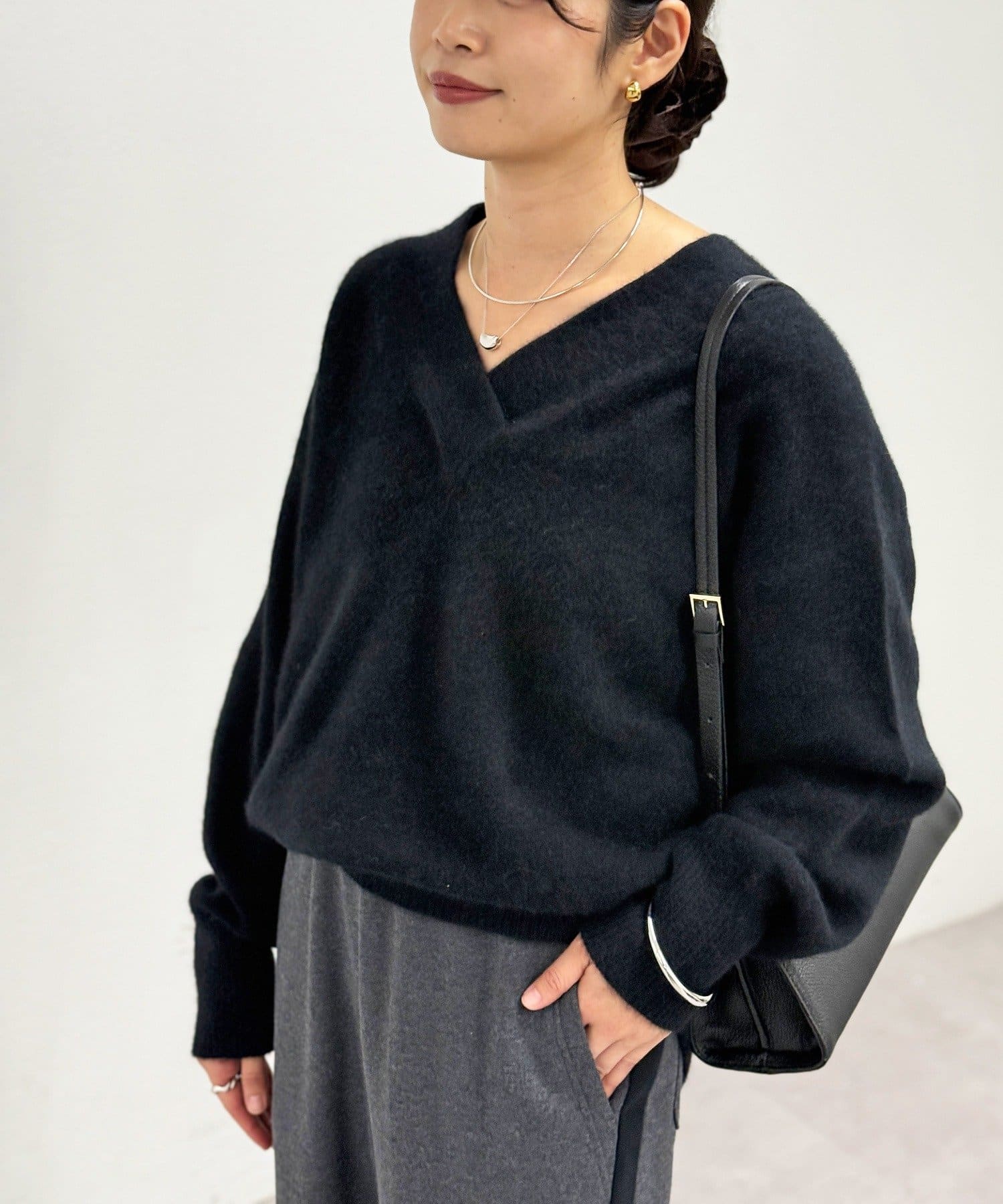 ・深めのVネックで抜け感があり、自然に女性らしい着こなしが叶います。