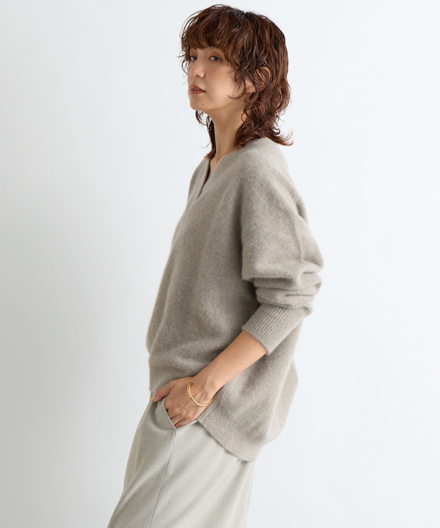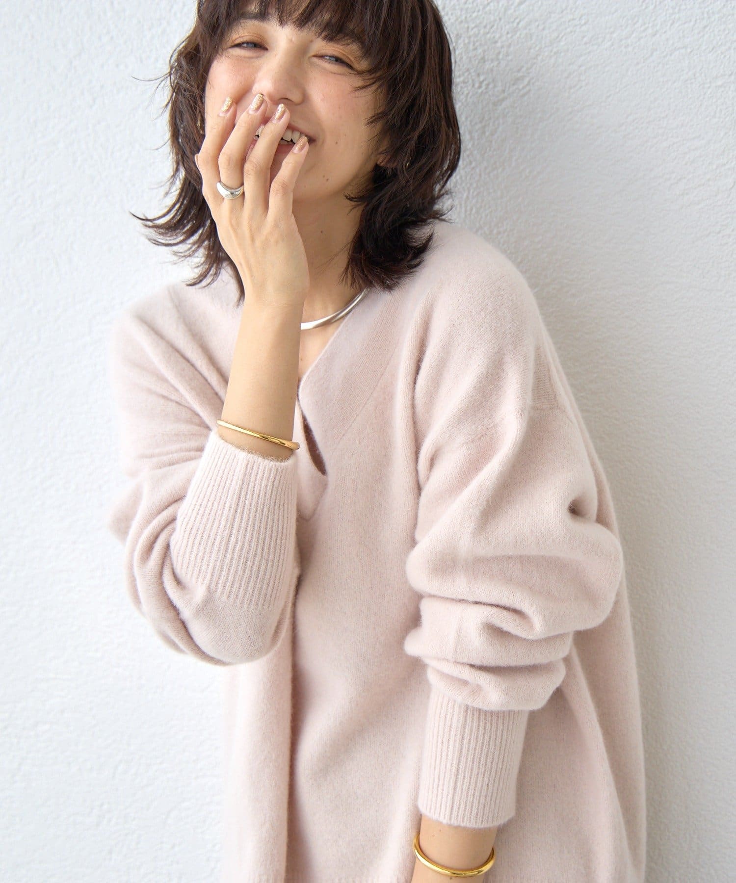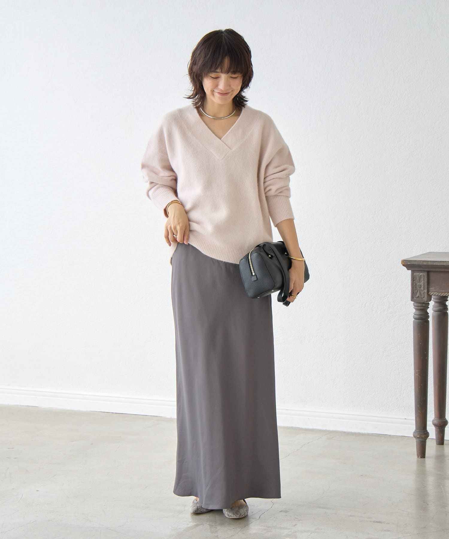 ・深めのVネックで抜け感があり、自然に女性らしい着こなしが叶います。