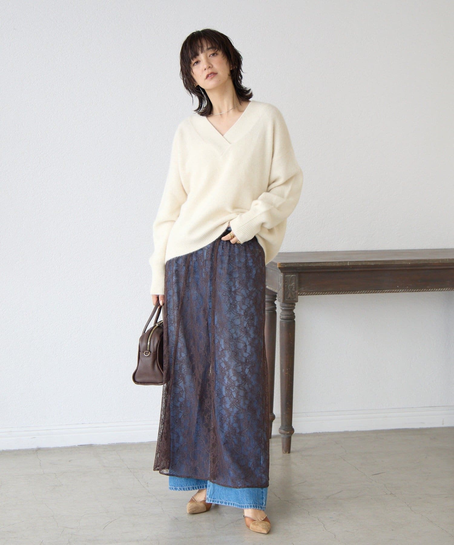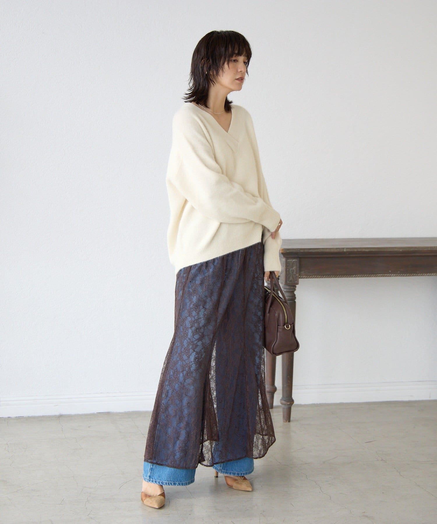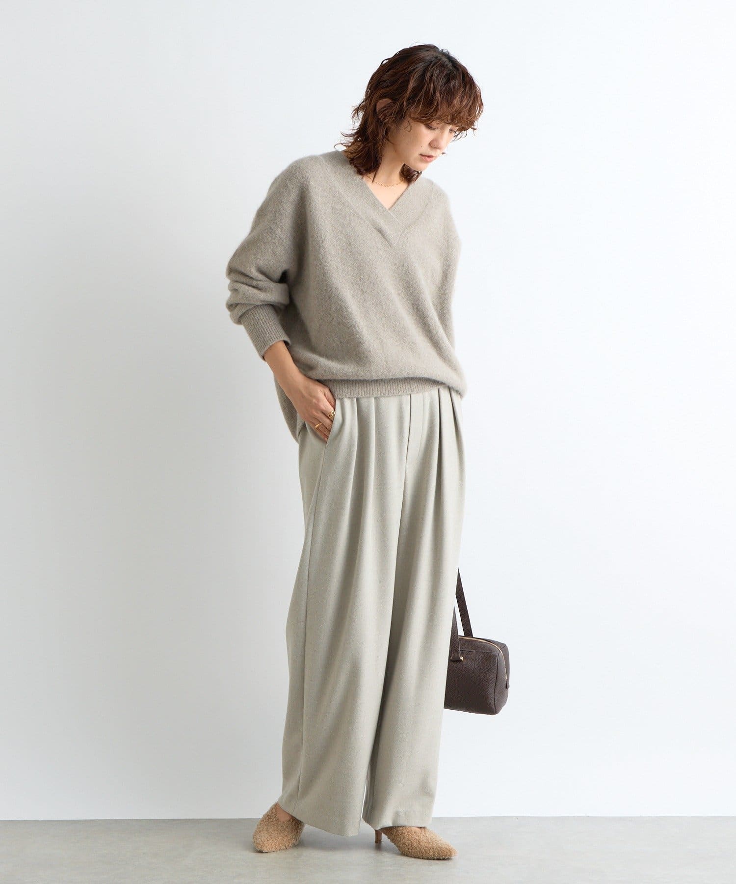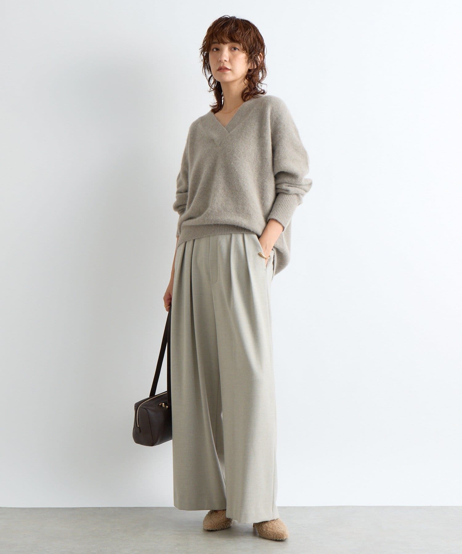 ・深めのVネックで抜け感があり、自然に女性らしい着こなしが叶います。