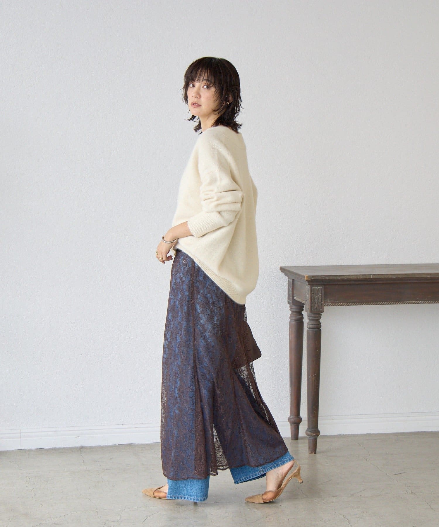 ・へアリーな糸を使用し、女性らしさにこだわった華やかな印象のプルオーバー。