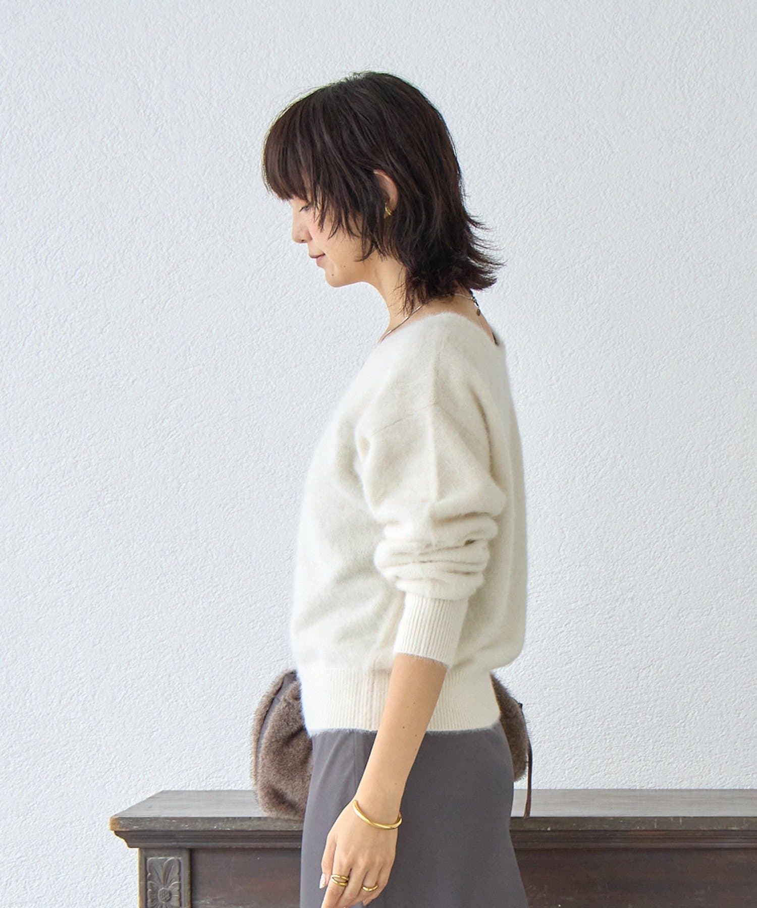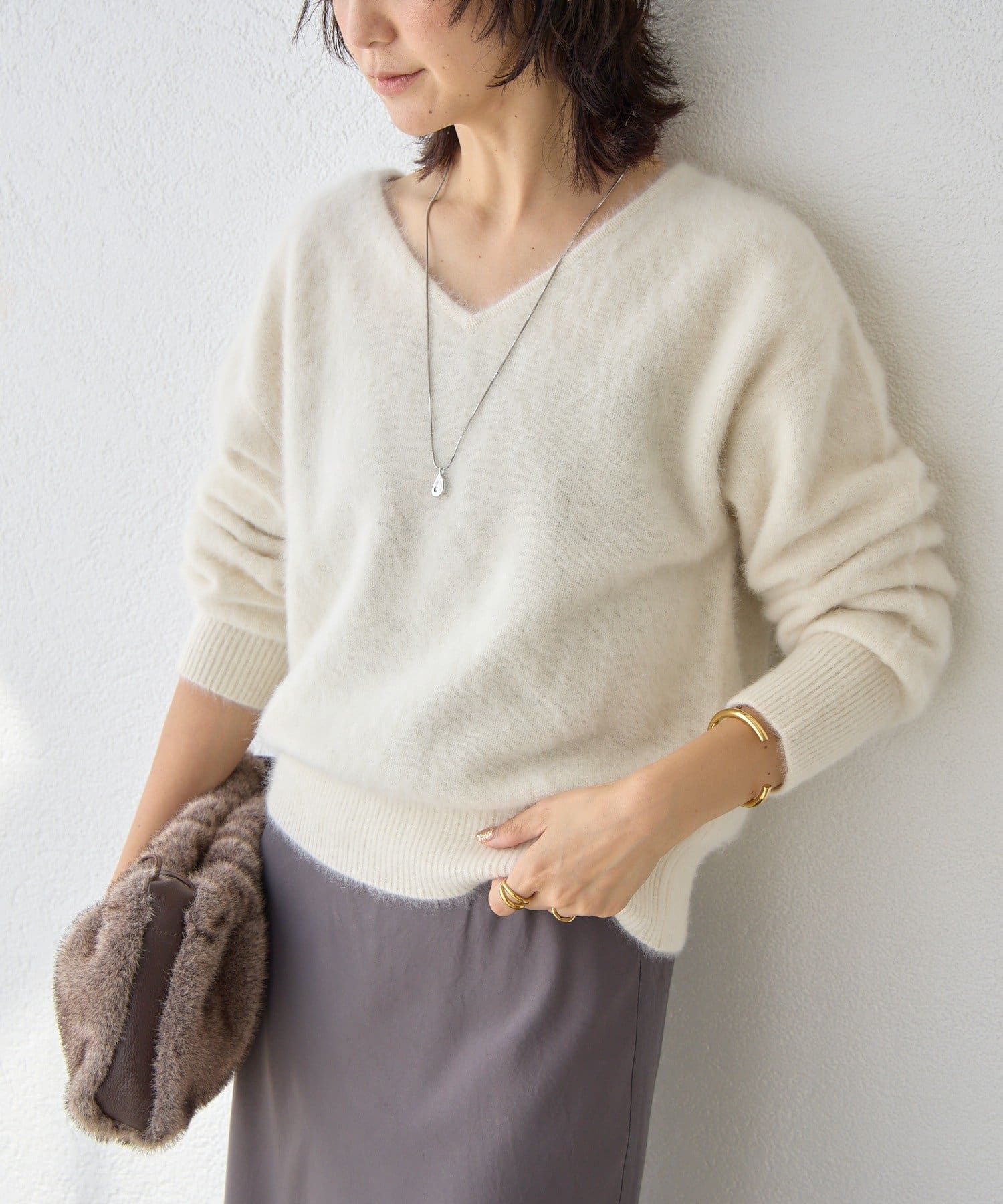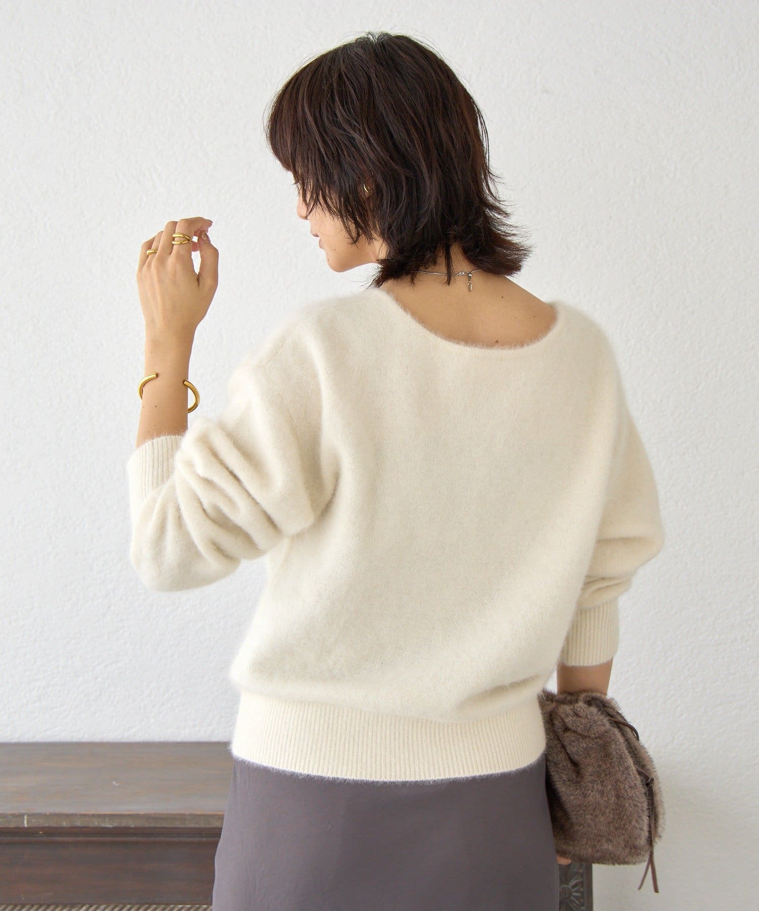 ・フワフワの毛足とカシミヤ混のならではの軽くソフトな風合いの素材を使用