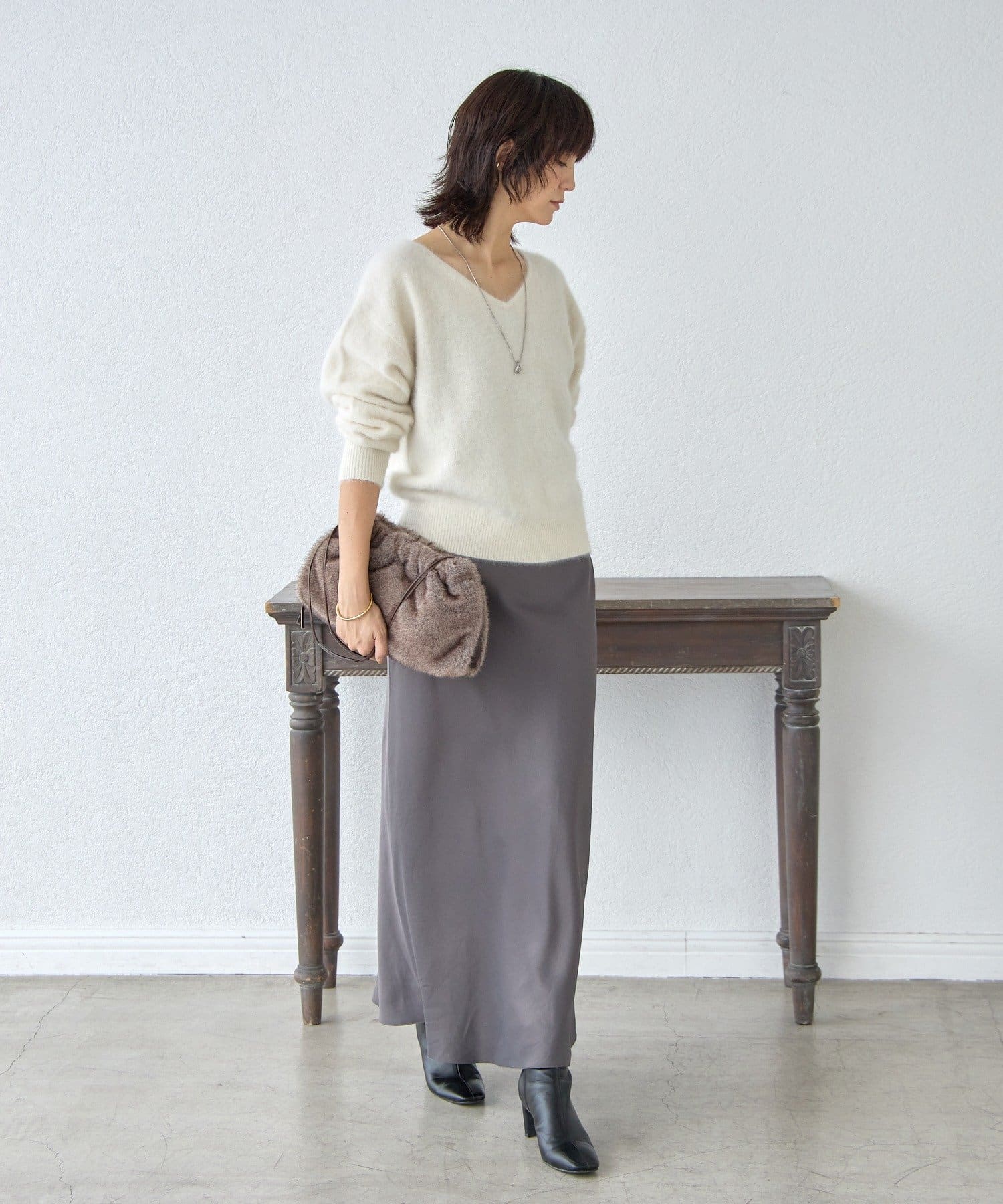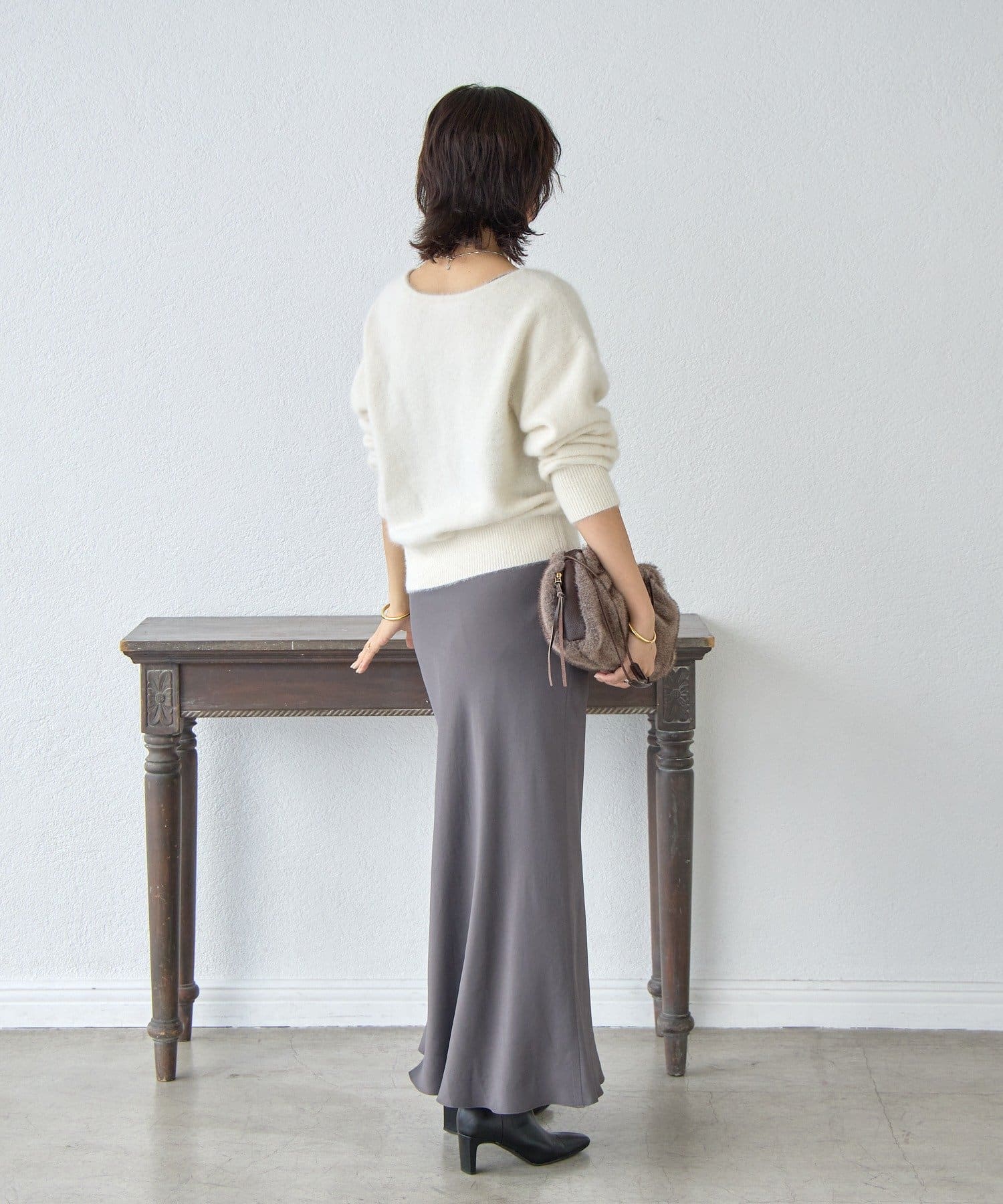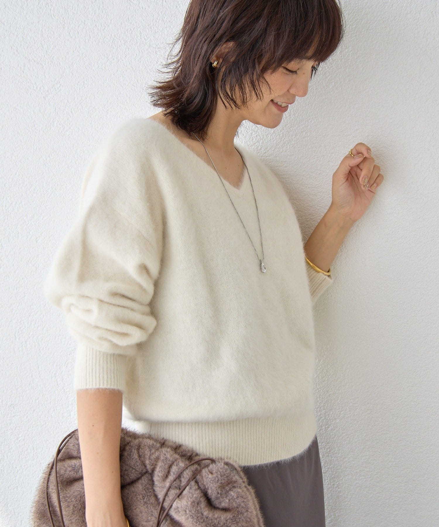 ・フワフワの毛足とカシミヤ混のならではの軽くソフトな風合いの素材を使用